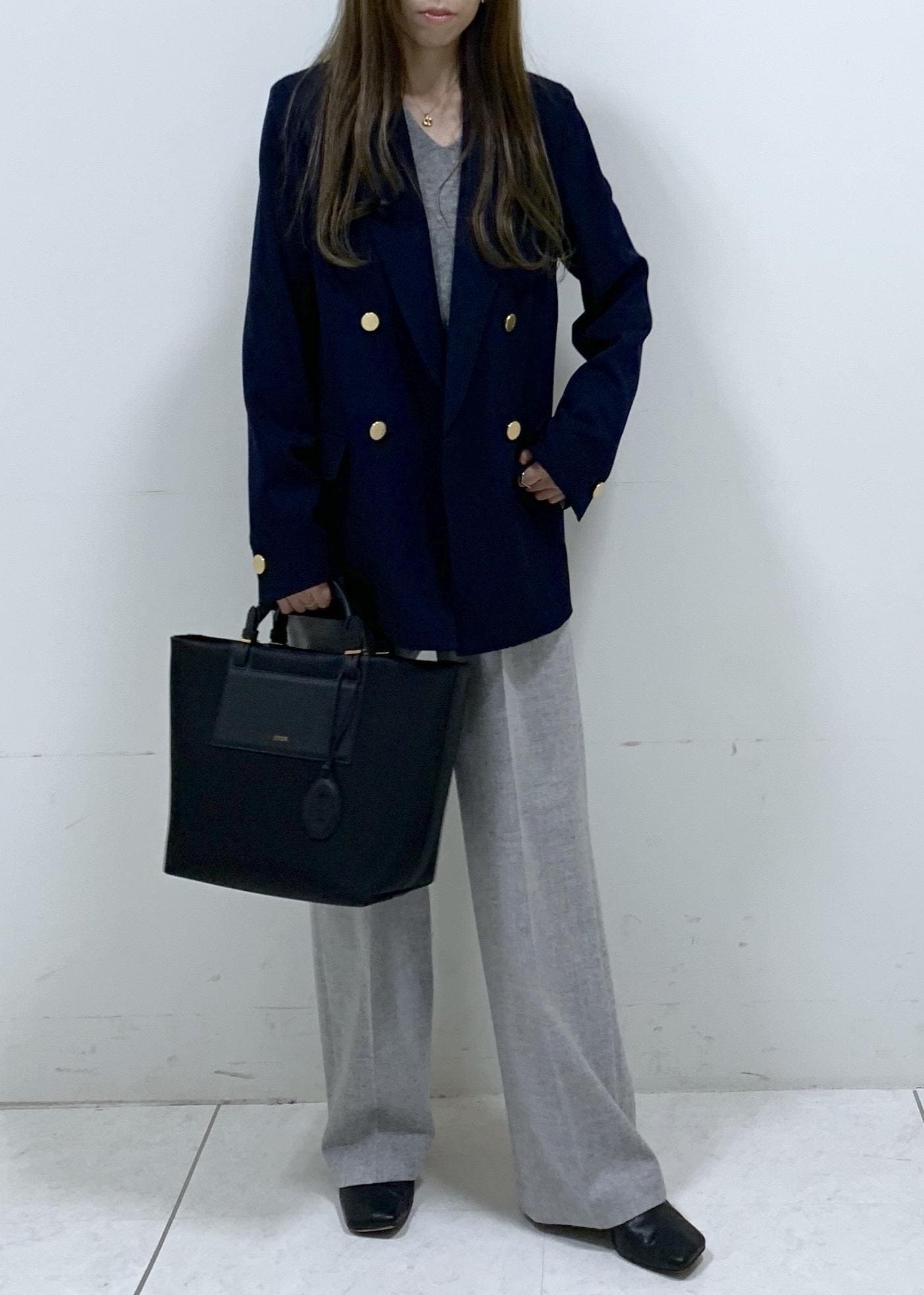 ROPÉストレッチ金ボタンブレザージャケットネイビー / 36¥52,800レビュー152cmで36サイズ着用。