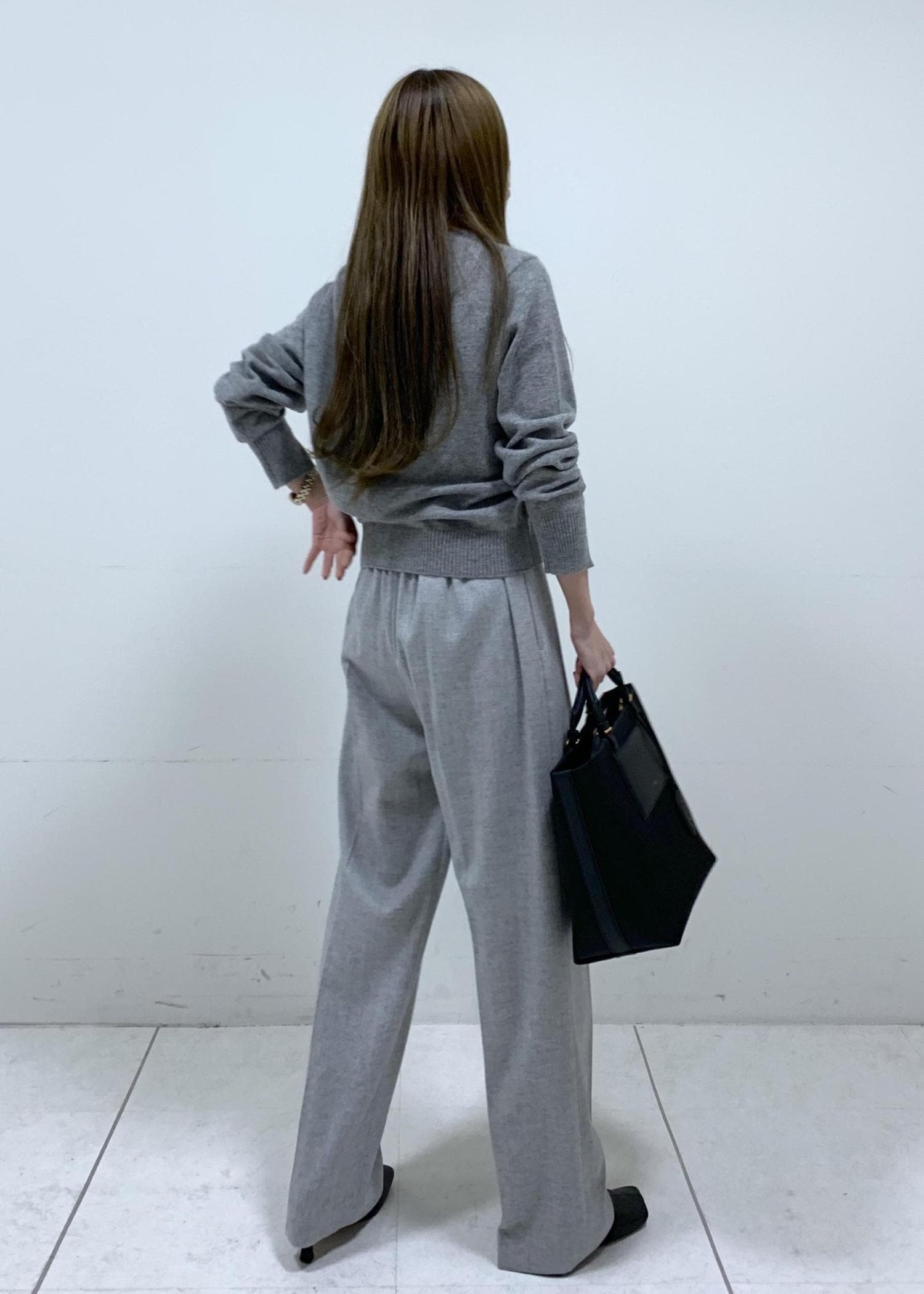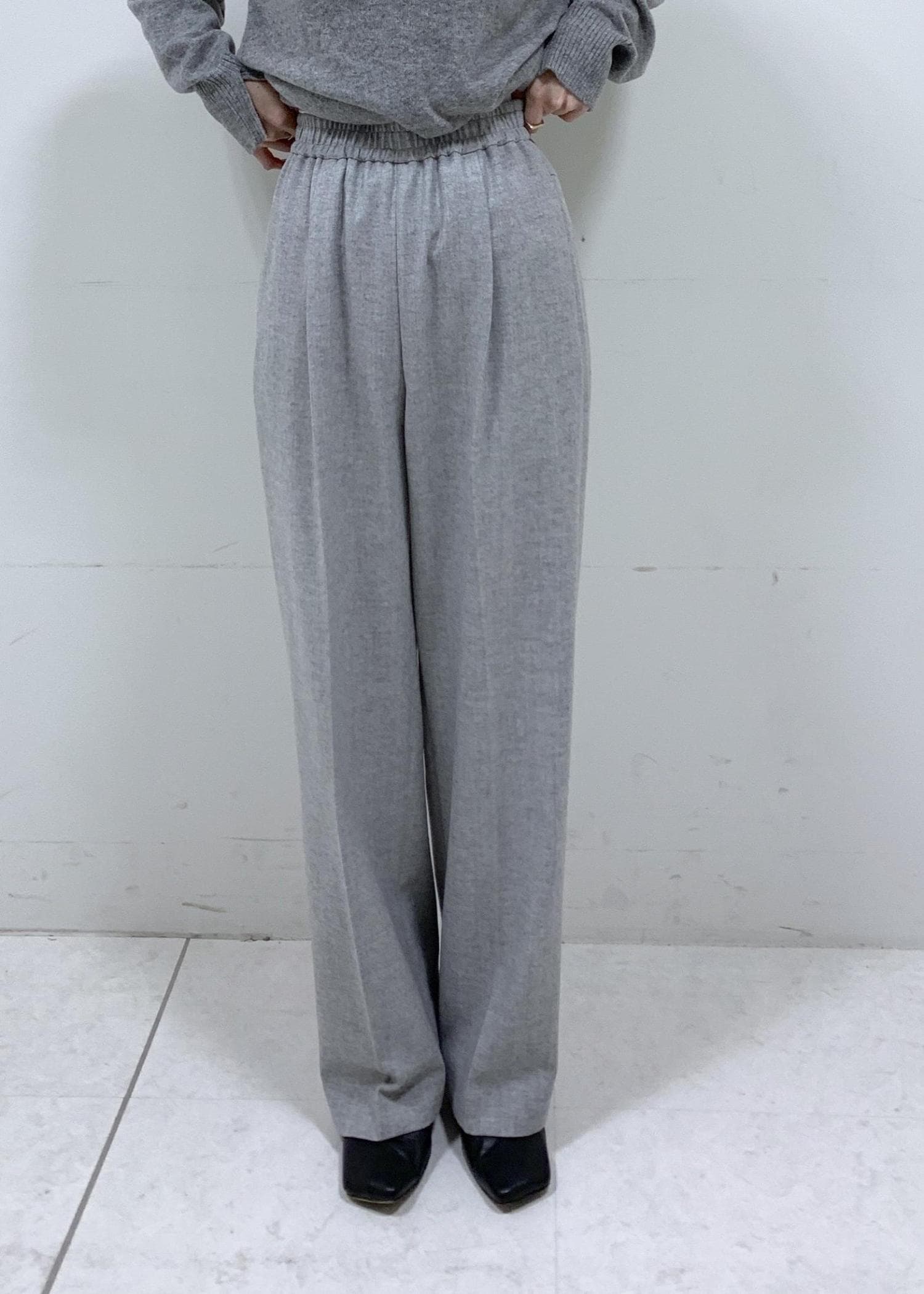 ROPÉウールフランネルタックイージーパンツ/イージーケア・セットアップ対応ライトグレー / 36¥25,300レビュー152cmで36サイズ着用。ウエストゴムでゆったりしたサイズ感のストレートパンツです。