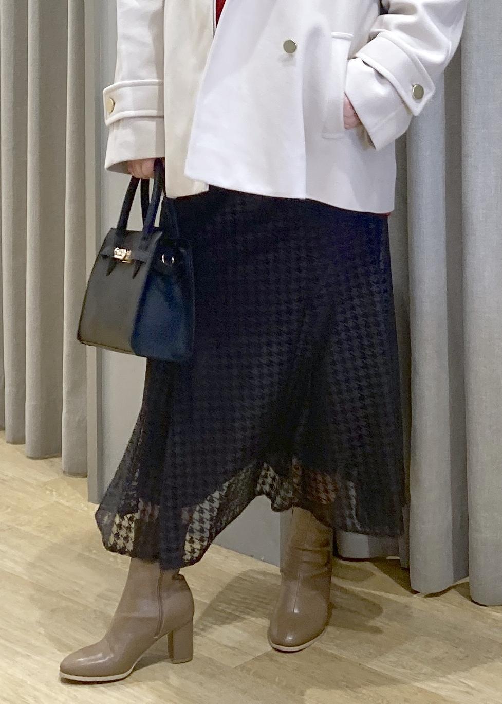 マーメイドラインの透かしで千鳥柄が施されたレースが、異素材との組み合わせにぴったりです。