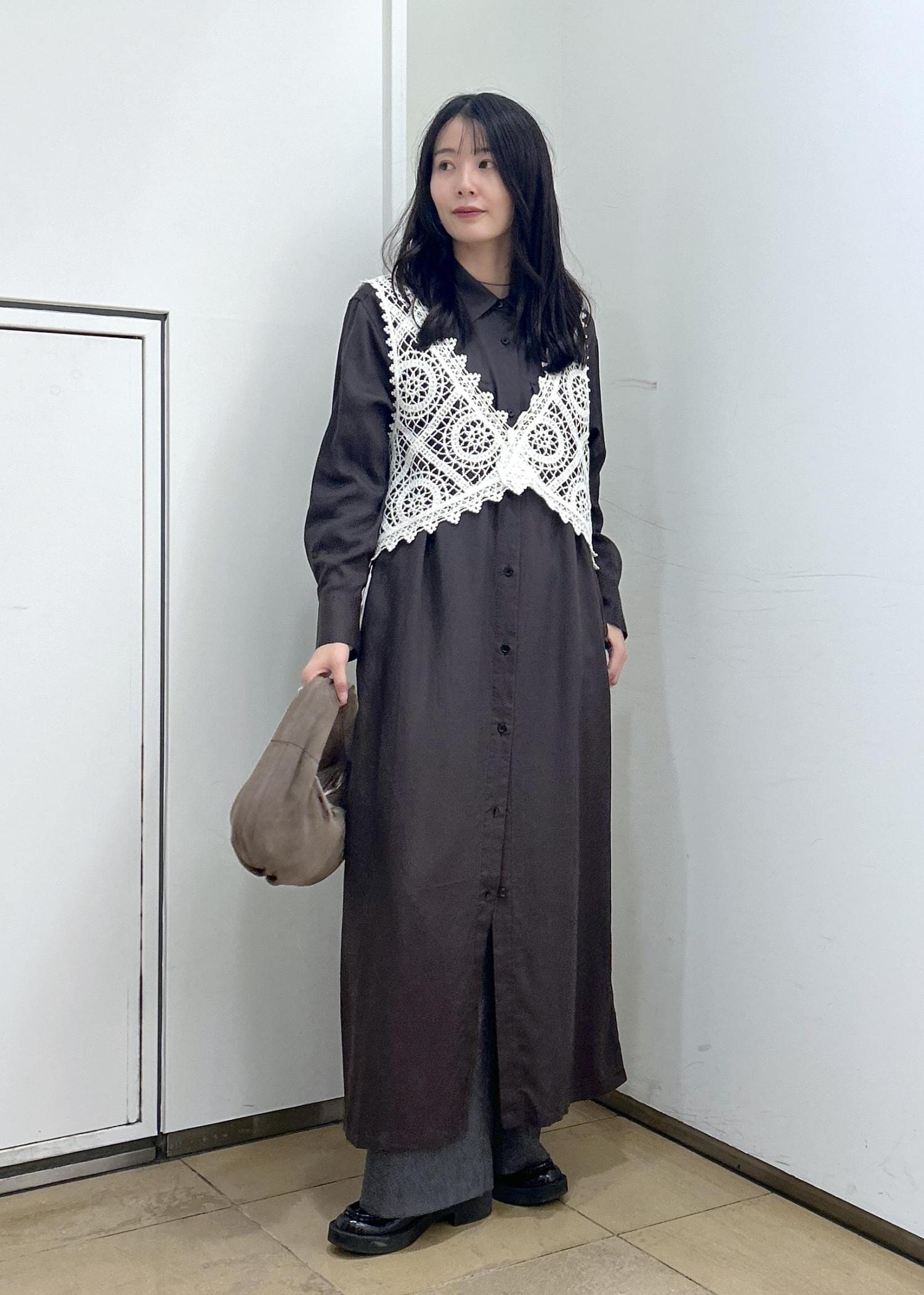 SALON adam et ropéセルロースウォッシャブルシャツワンピースチャコール / F¥29,700レビュー【サイズ感】