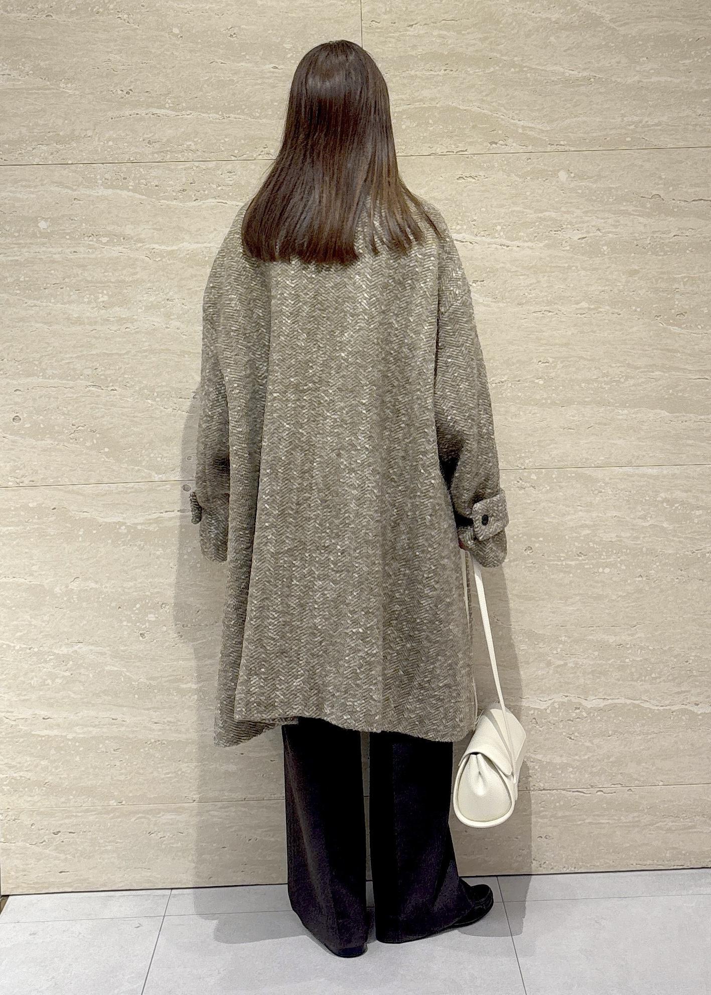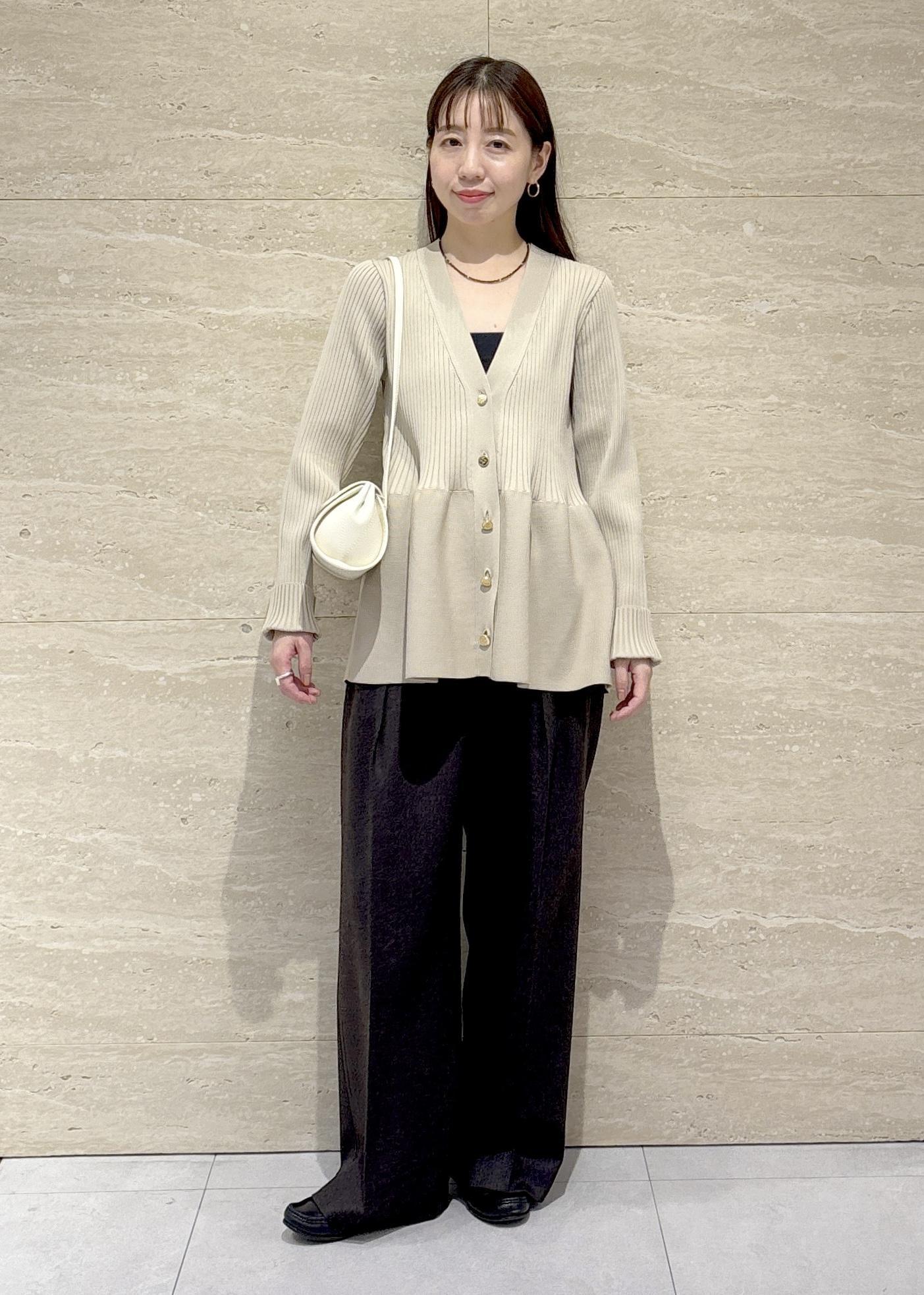 インナーはコートインでもすっきり着れるmoi salon et ropé別注リブカーディガンを着用しました。店頭で大人気の商品です。