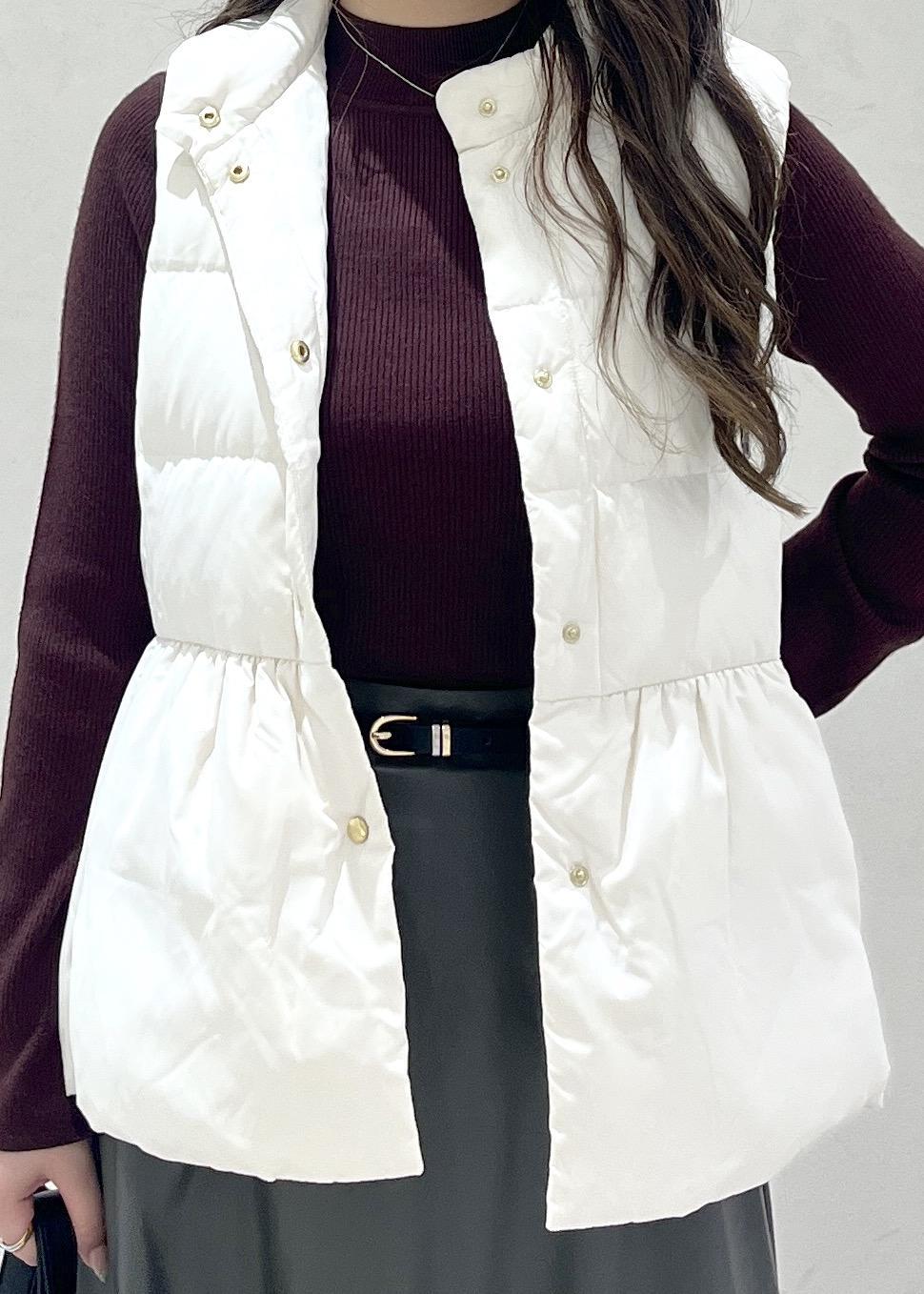 ROPÉ PICNIC【GREEN DOWN/グリーンダウン】ペプラムダウンベストオフホワイト / F¥6,999レビュー撥水加工がついているので、晴雨関係なく着ていただけます✌︎ペプラム型なので、気になるお尻周りもスッキリ見せてくれます☺︎