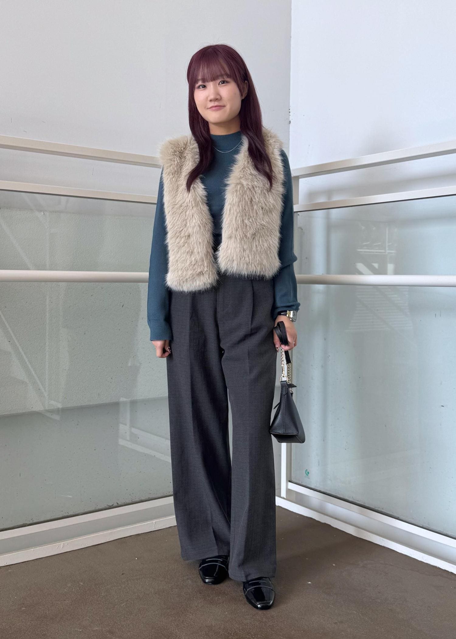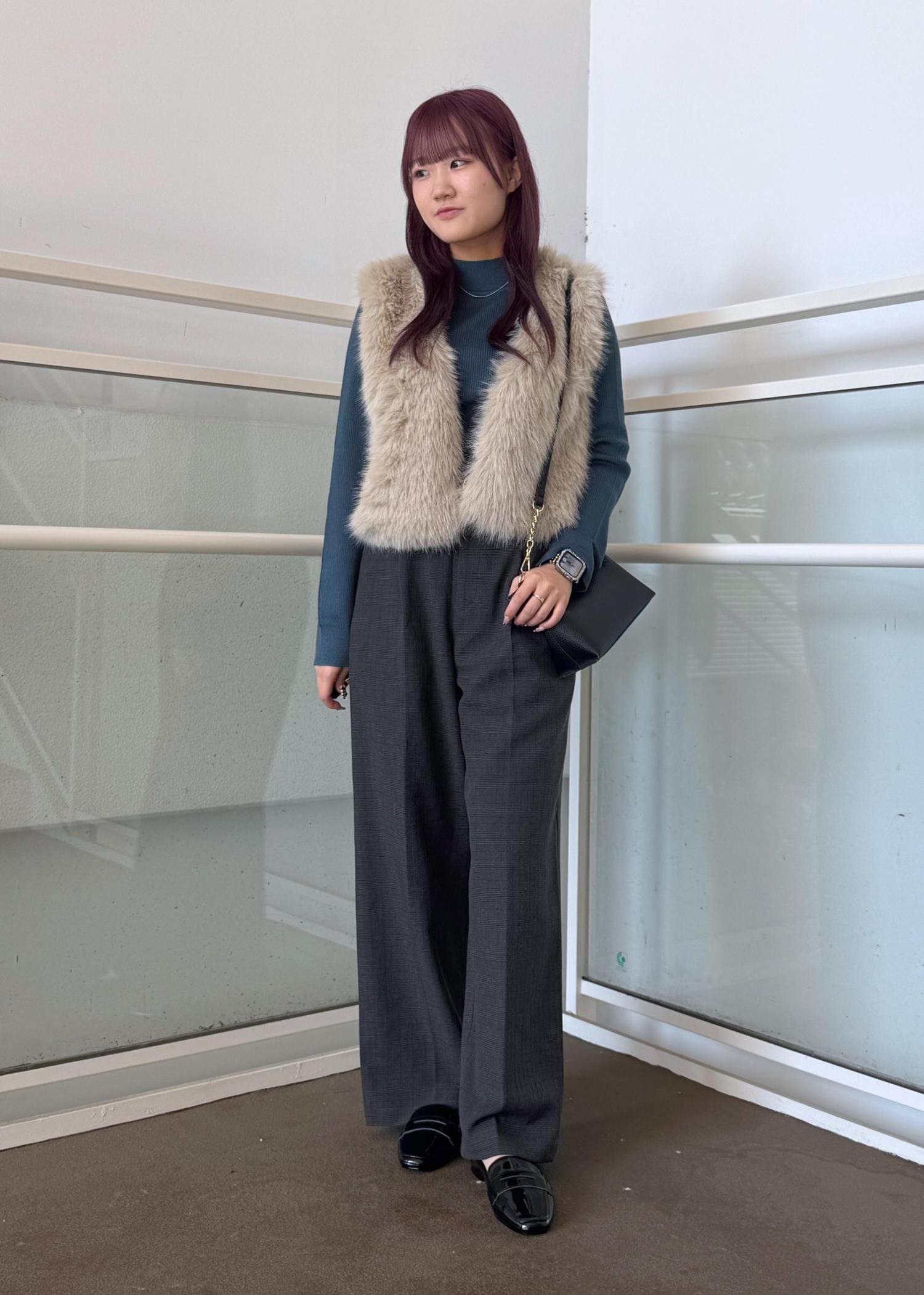 秋冬に取り入れたいファーベストを使って、シンプルかつカジュアルなコーディネートを組みました!