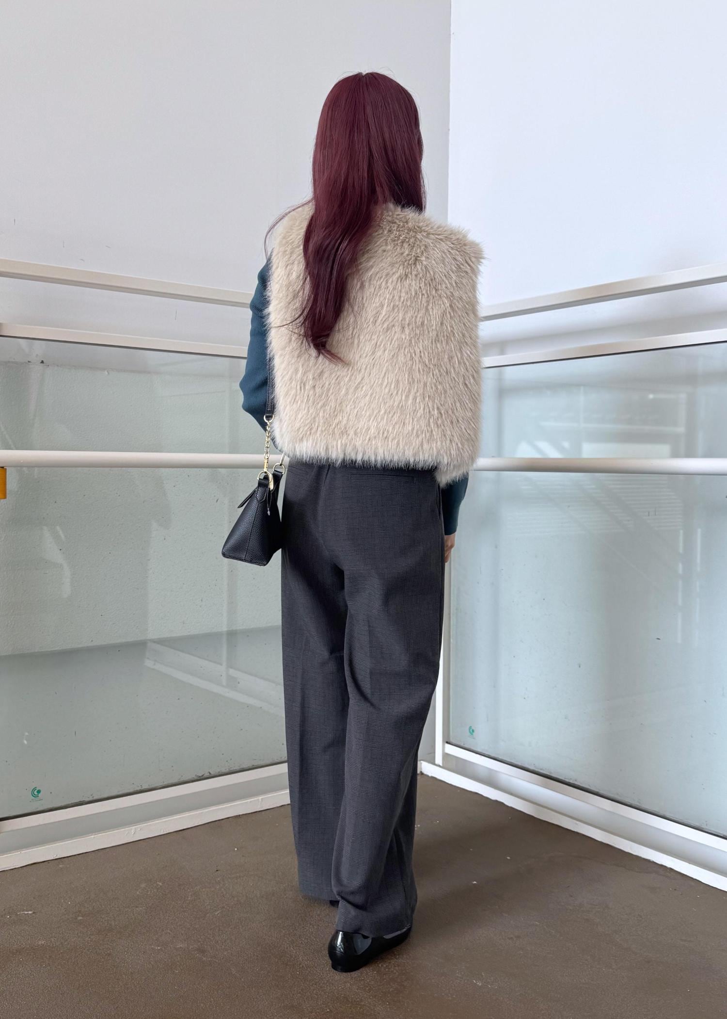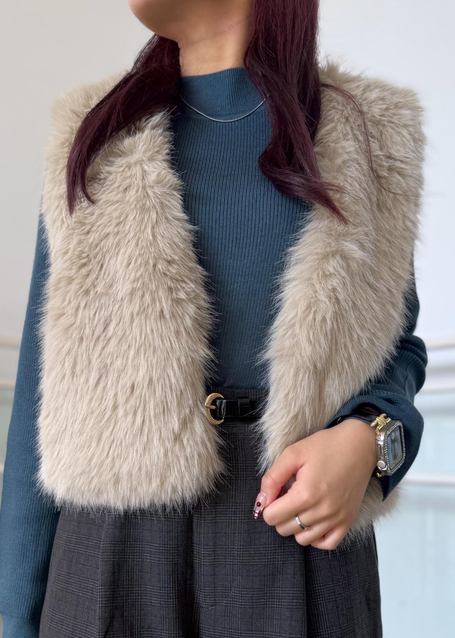ショート丈で、ボトムスとのバランスが取りやすいファーベストです。 -