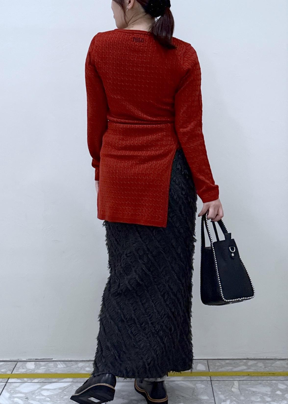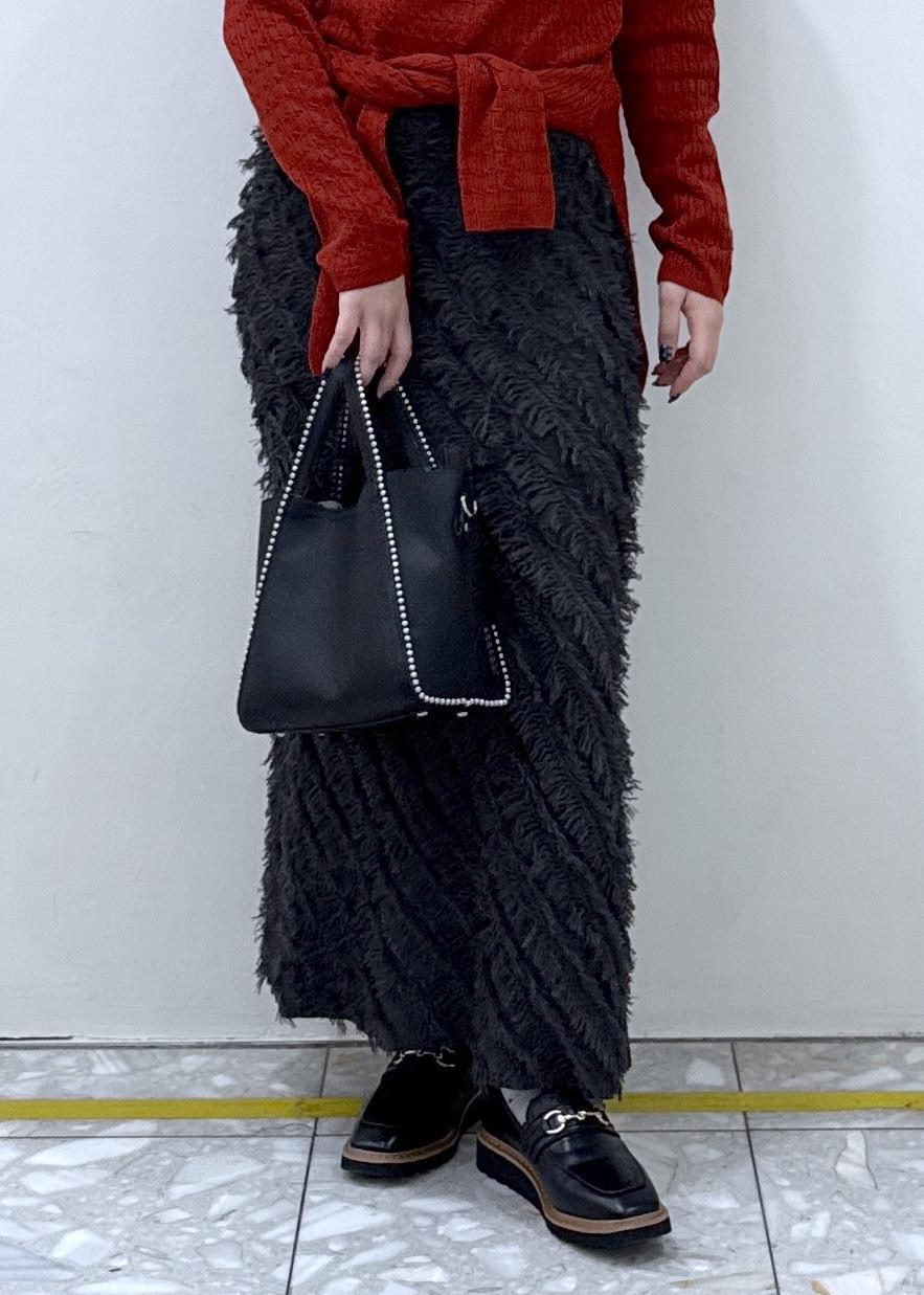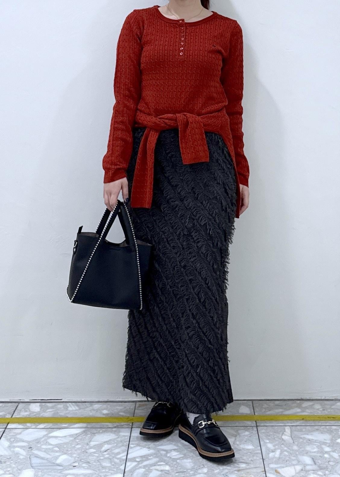 VISフリンジニットナロースカートチャコール / F¥6,589レビューデザインがあるので着映えするスカートです。、サイドスリッドで着丈もしっかりと長さのあるスカートなのでブーツ合わせやローファーなど高さのある靴も合わせられます!