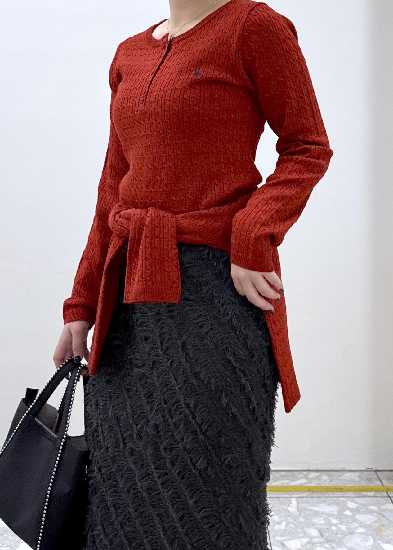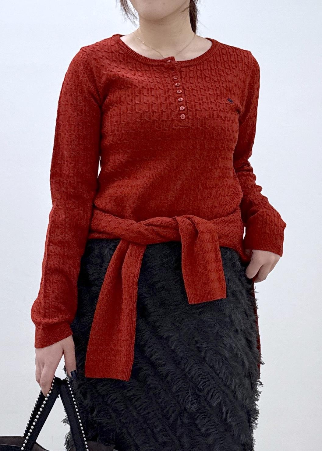 VIS【POLO BCS】VIS別注ヘンリーネックミニケーブルニットトップスレッド系 / F¥6,600レビュー肉感を拾わないプルオーバー。