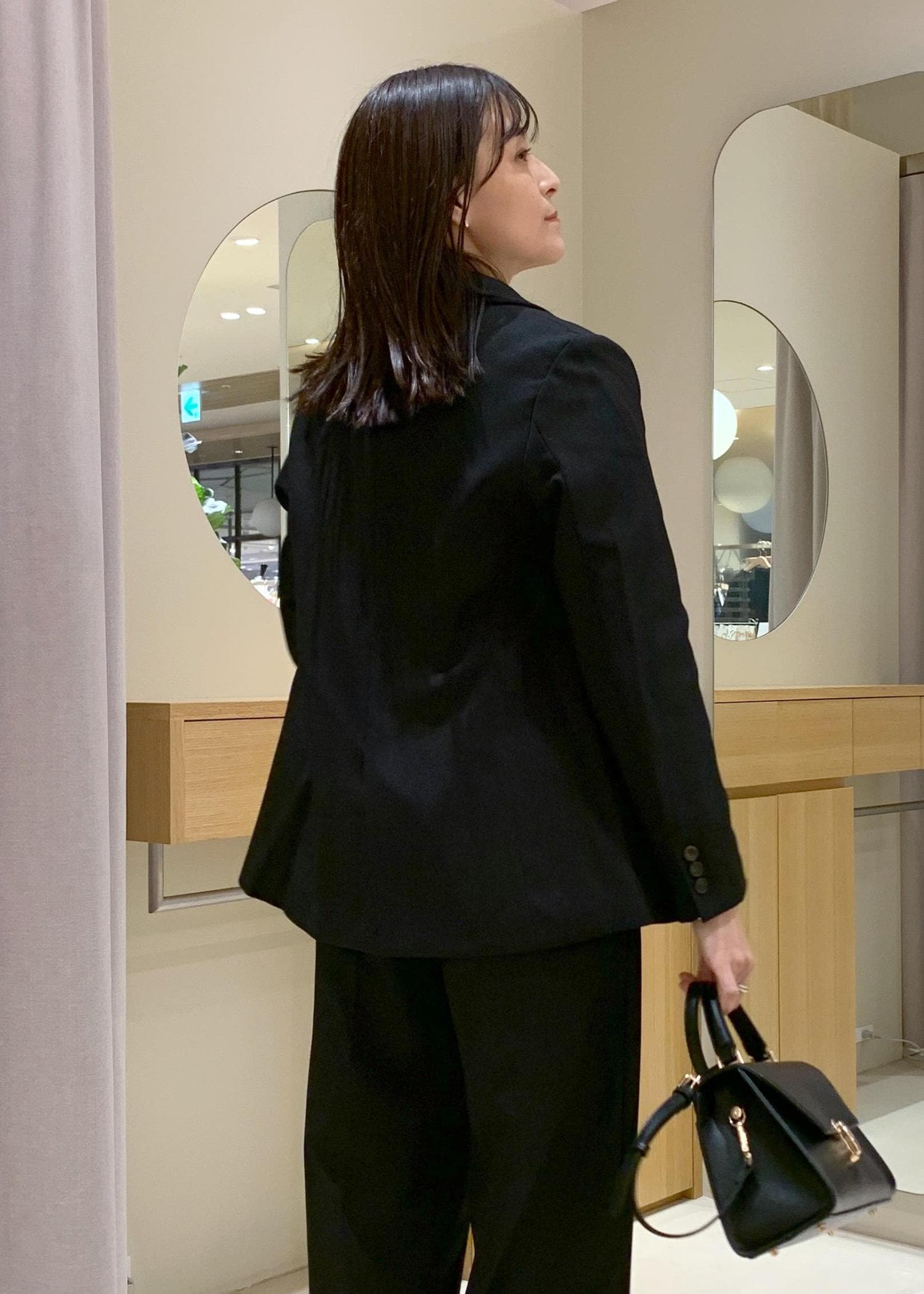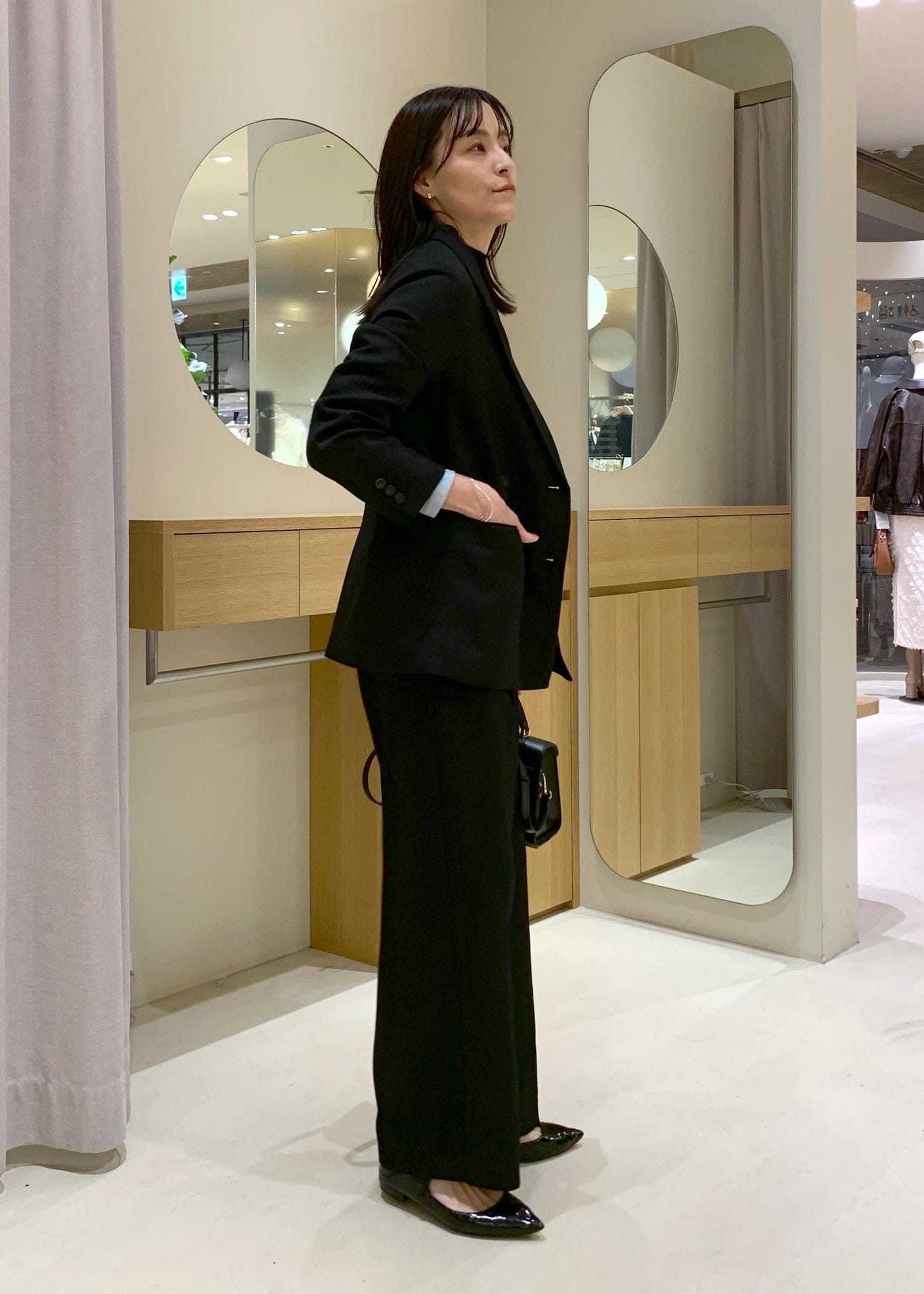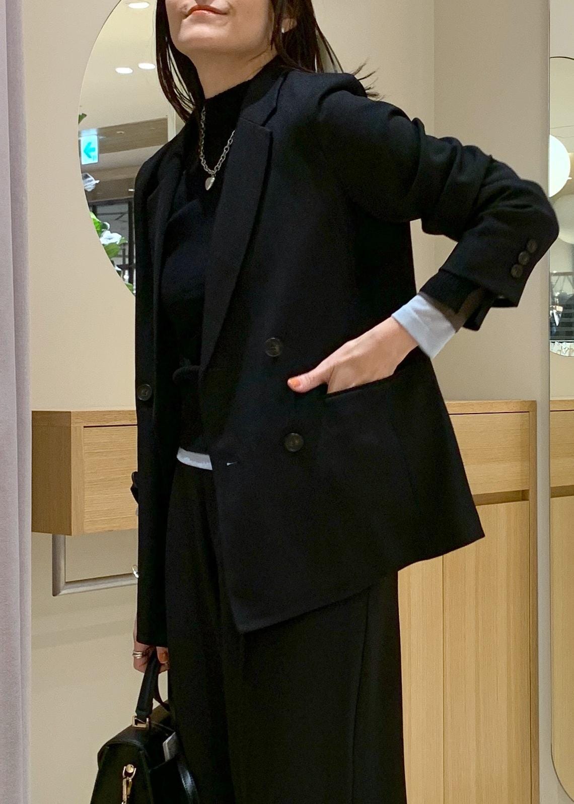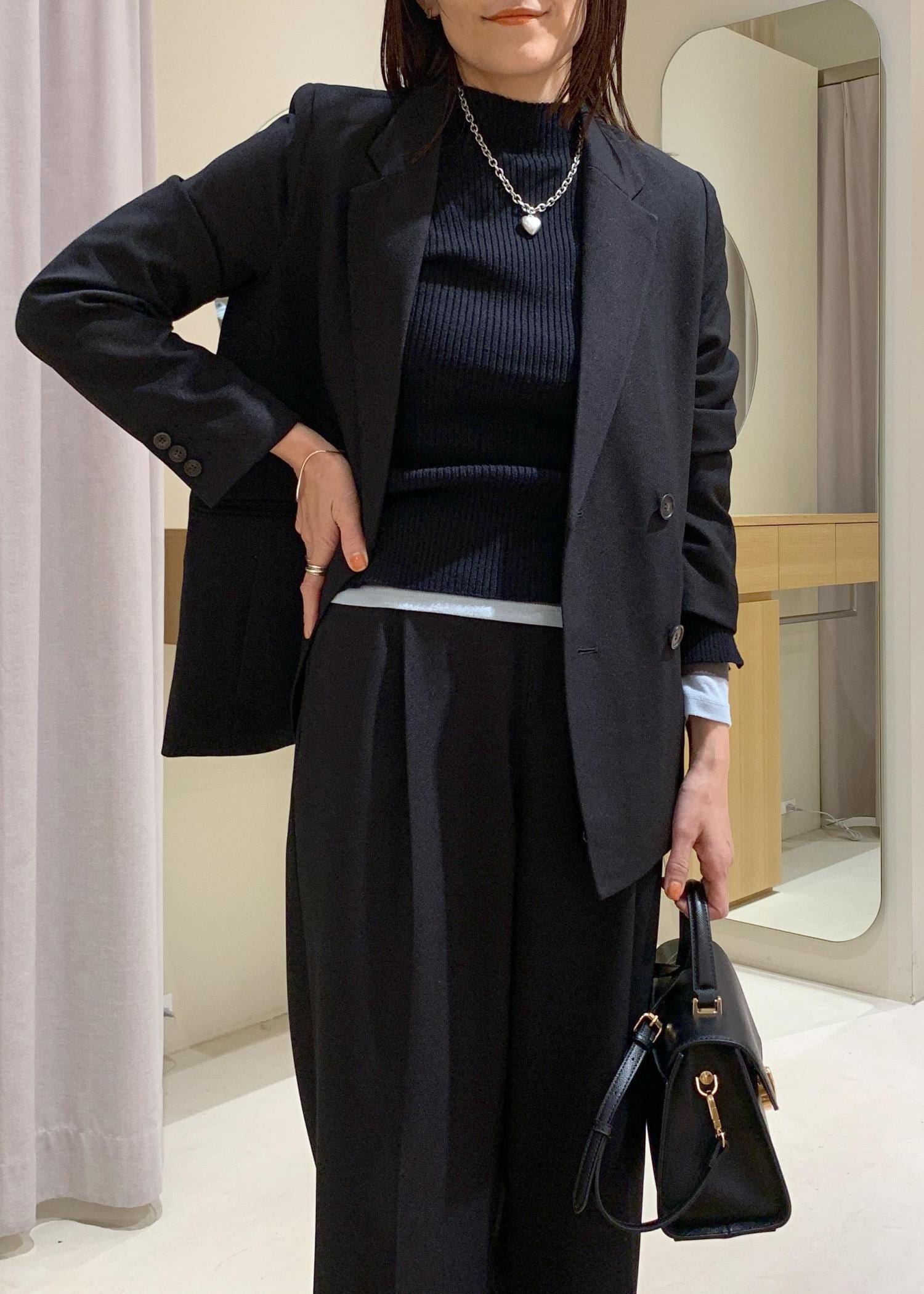 インナーは肉厚すぎるニットだと着膨れしてしまいますが、ハイゲージニットだと収まりがいいです。 -