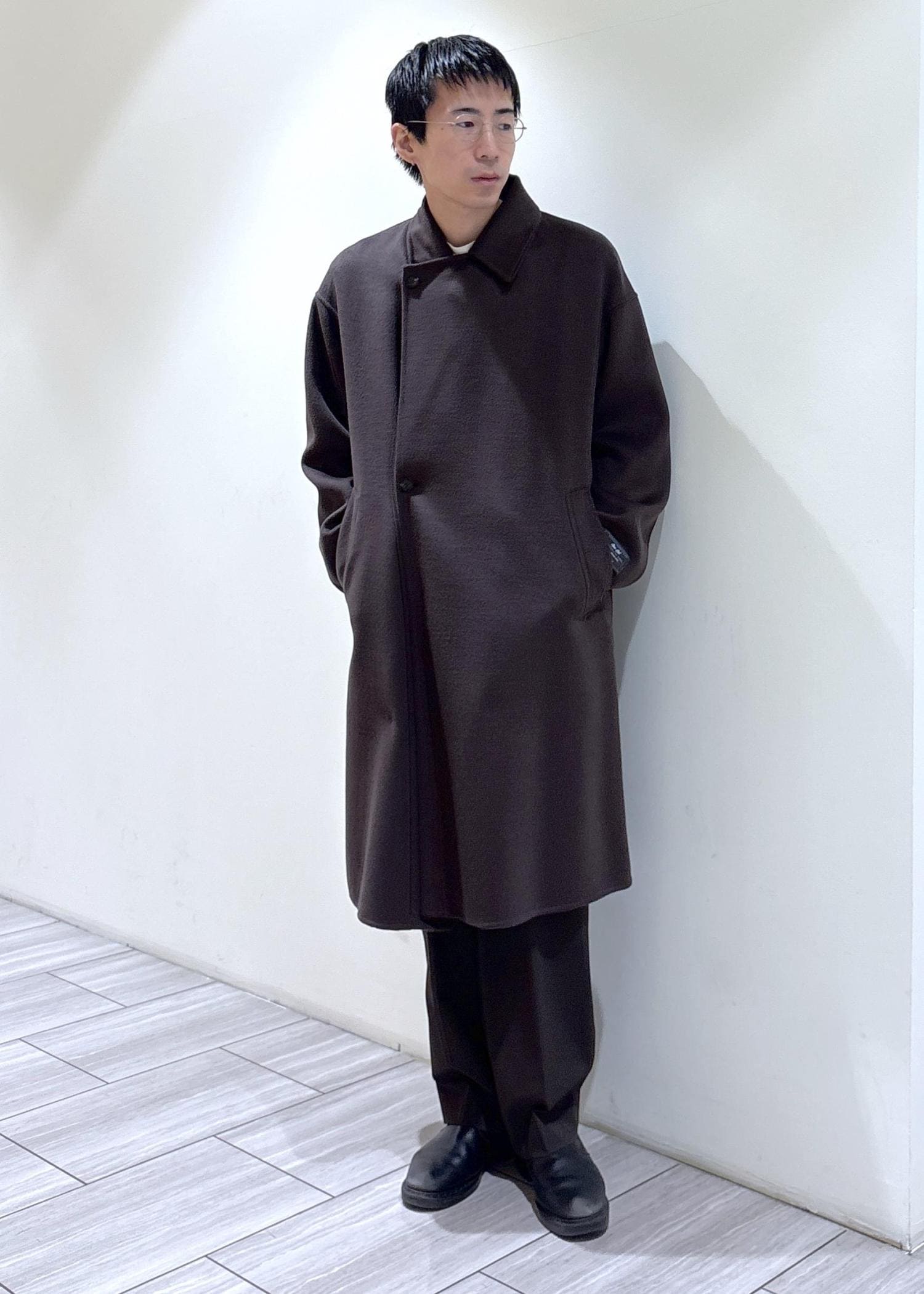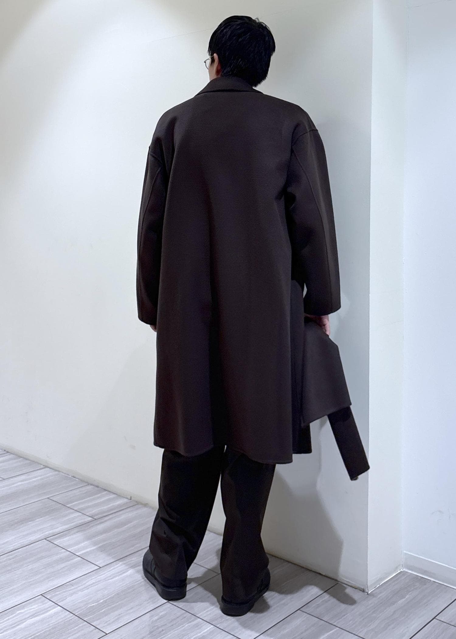 メリノウール素材で柔らかく、1枚仕立てのコートで非常に軽い着用感。 -