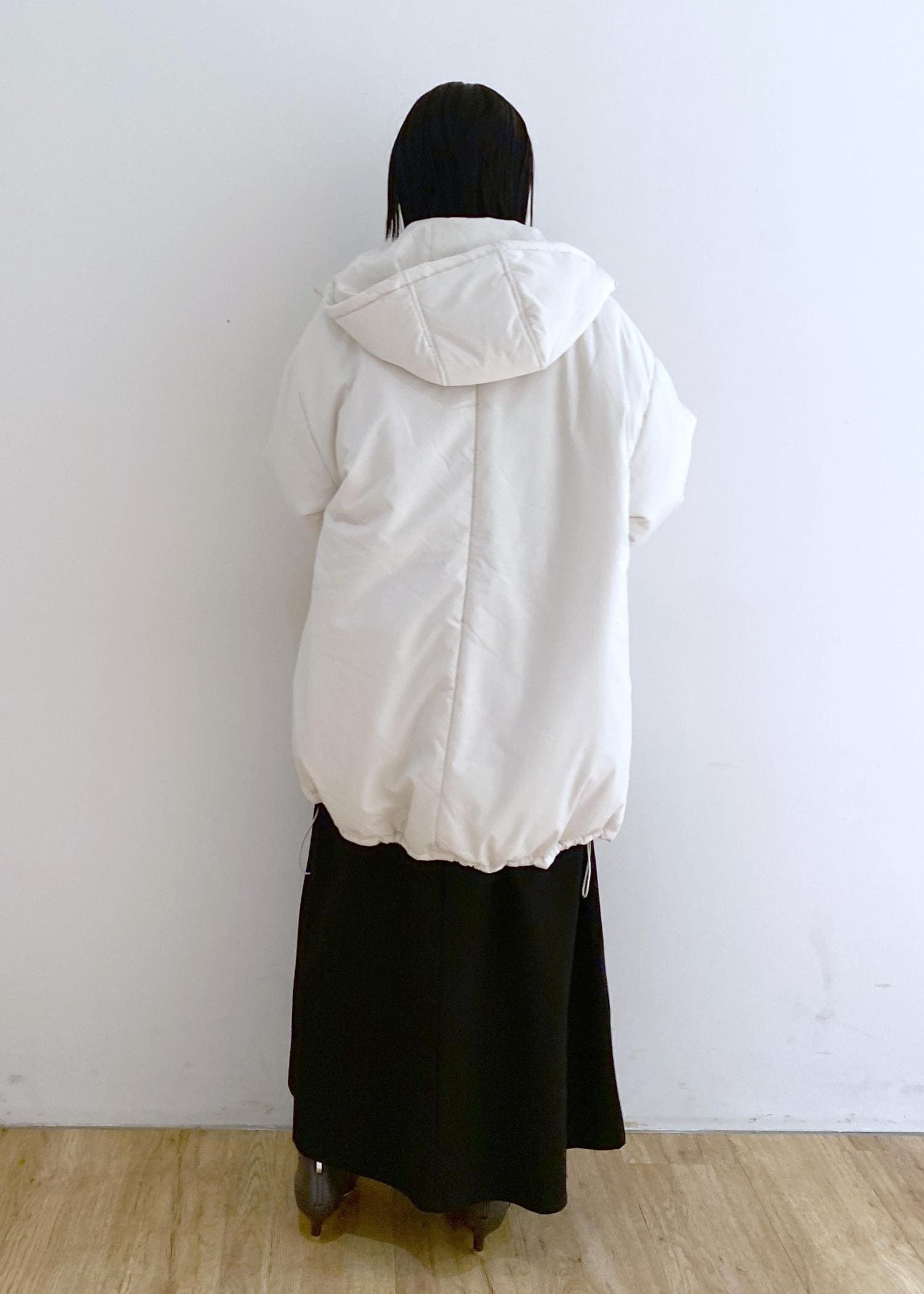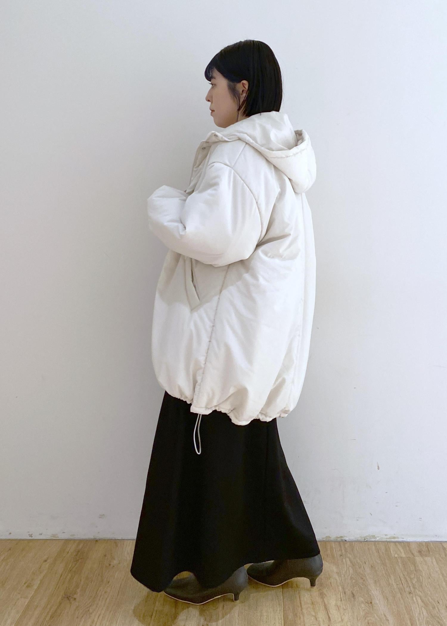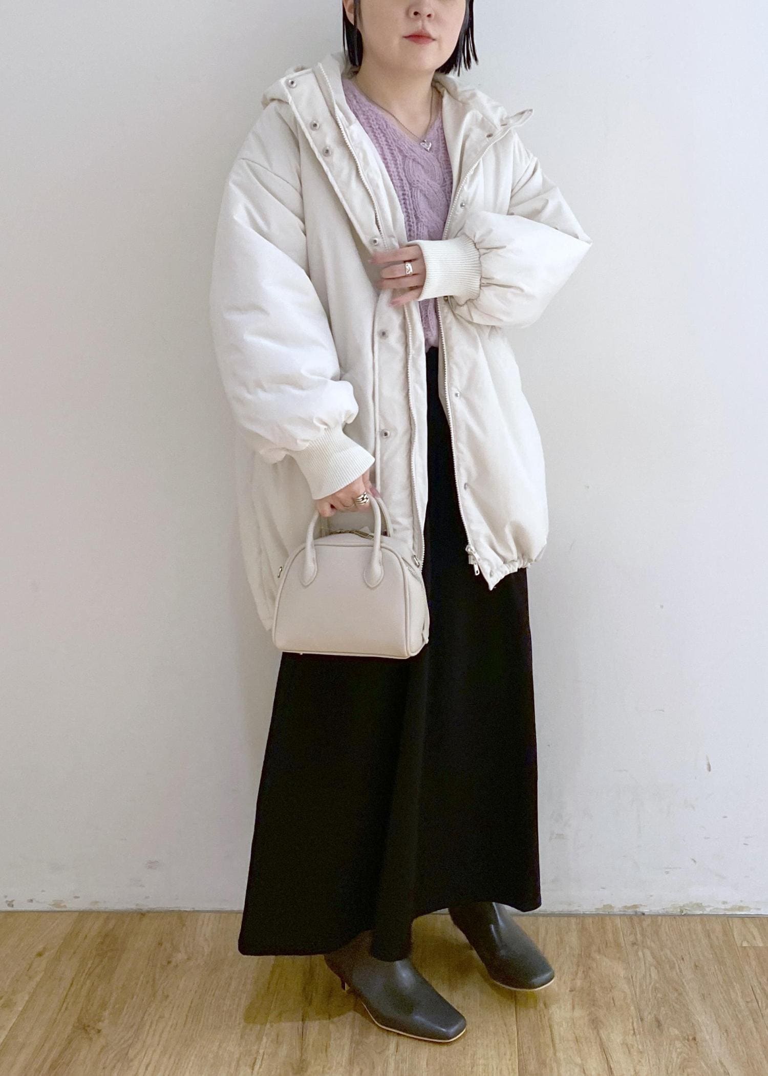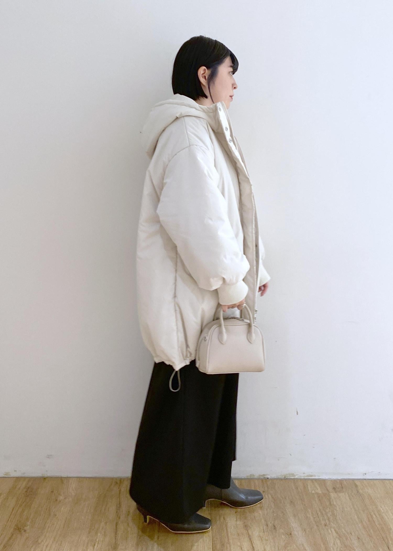 ROPÉ PICNIC中綿モンスターコートキナリ / F¥7,999レビューフード付きの中綿アウターは156cmだとヒップがすっぽり隠れる着丈。裾部分にドローコードがついており絞れます。ファスナーの上からスナップボタンが付いているので防寒性も◎