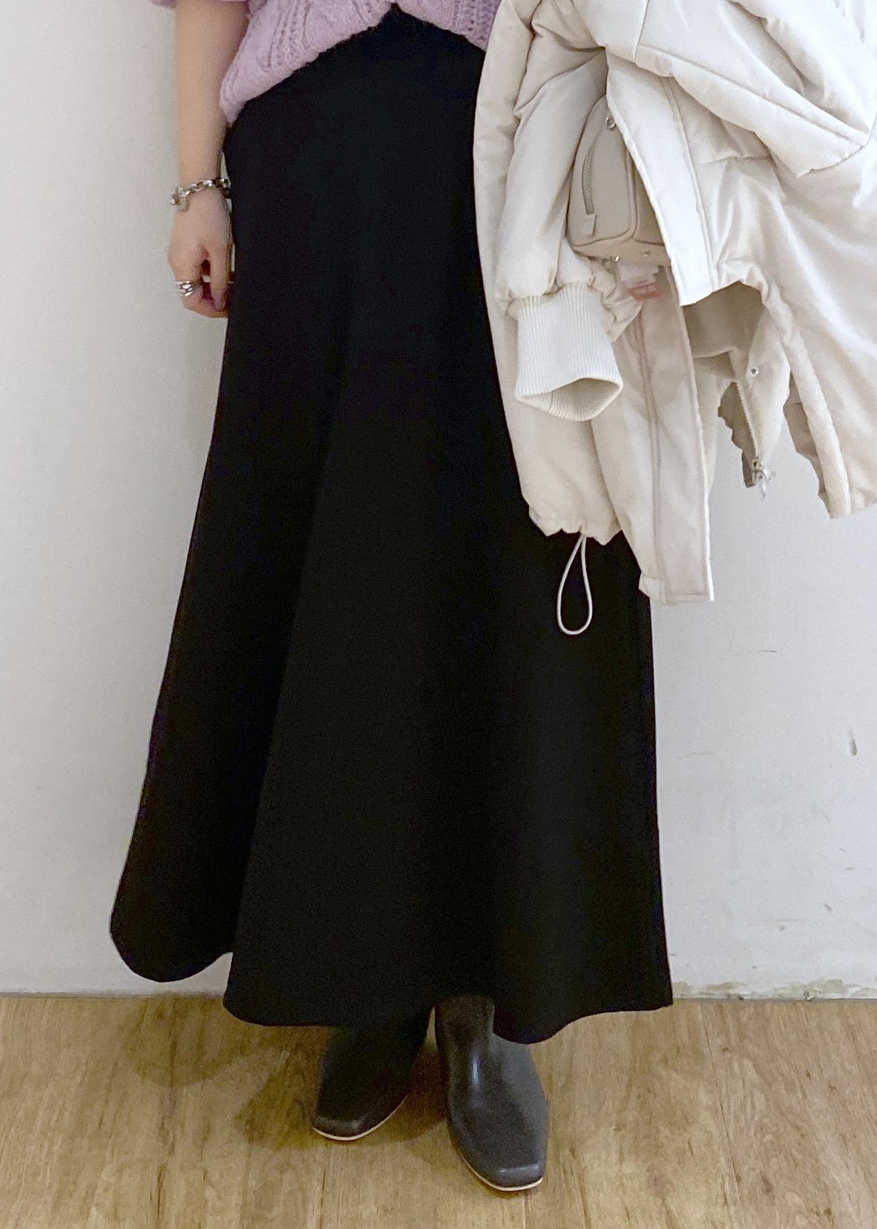 ROPÉ PICNICポンチフレアイージースカート/セットアップ対応ブラック / M¥4,796レビュー156cmでMサイズ着用だと足首までかかる着丈です。ヒップ周りもゆとりがあるのでインナーが透ける事なく着用できました◎ウエストもゴムでかなり履きやすいです。