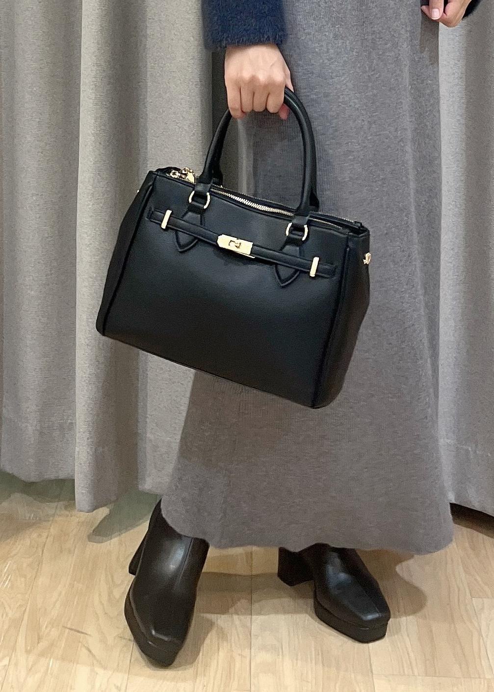 VIS【新色追加】【2WAY】フロント金具3層トートバッグブラック / F¥7,909レビューフロント金具が可愛いバッグ。ショルダー付きで2WAY仕様です。長財布や500mlペットボトルが入る大きさです。