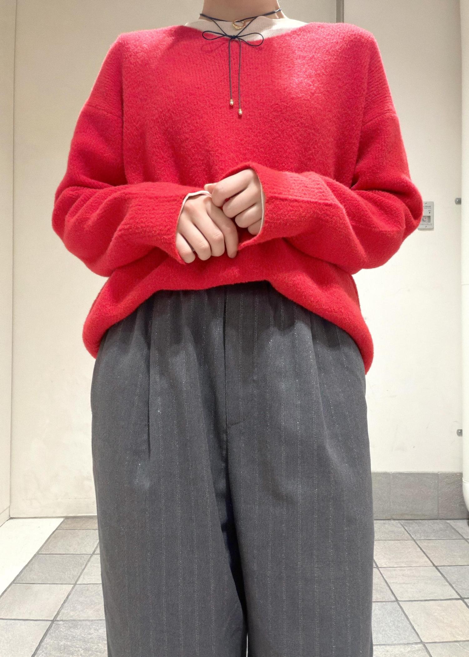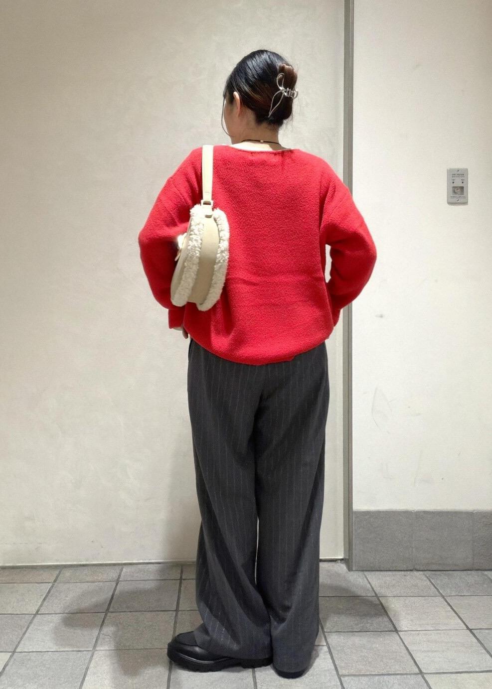 もちふわな着心地のニットトップスと、ゴム+ゆったりとしたワイドパンツで楽ちん×かわいいなコーディネートです!
