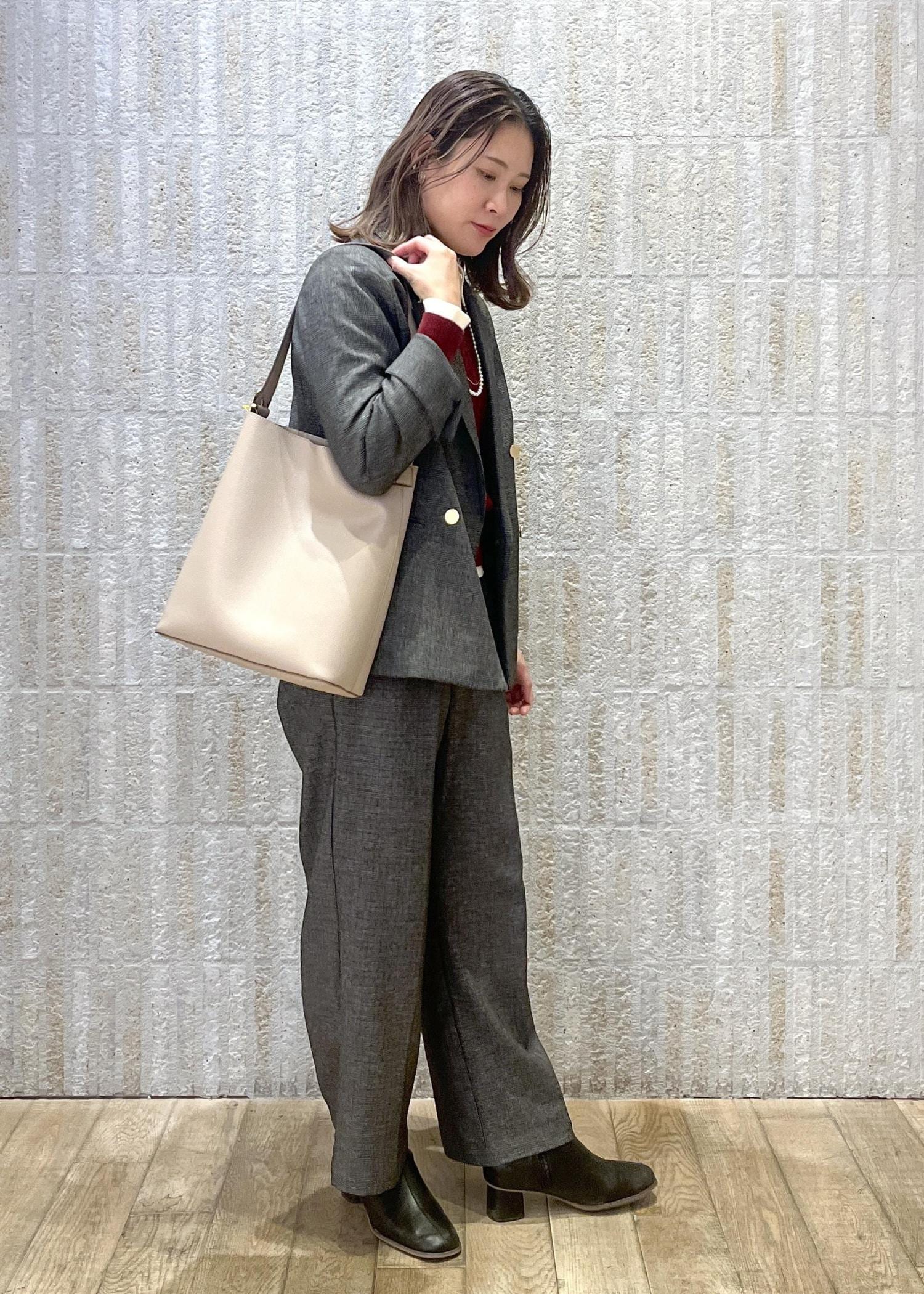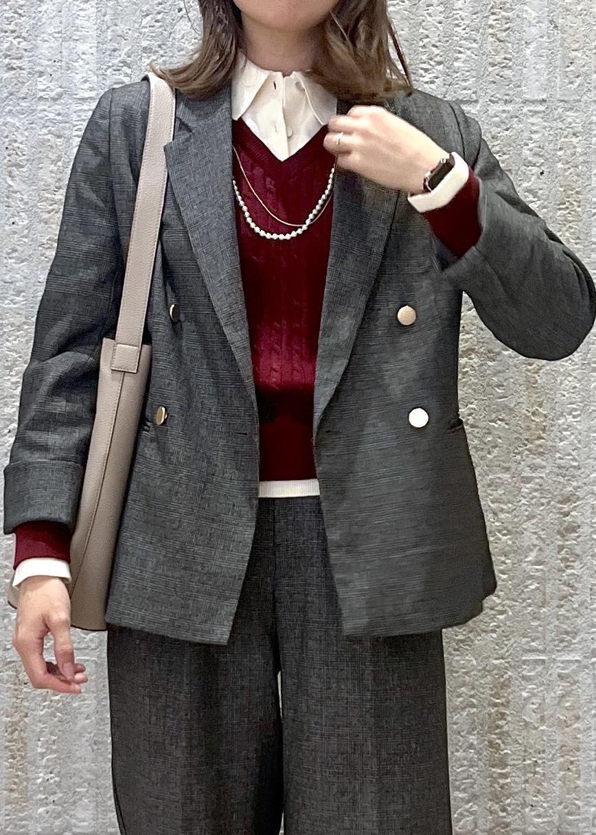 骨格ストレートの私は肩幅が気になるのでボタンは全てとめず、開けて着たほうが首周りもシャープに見えるのでオススメです。 -