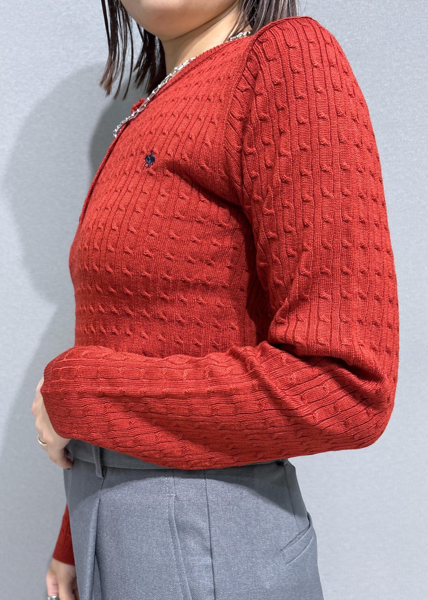 VIS【POLO BCS】VIS別注ヘンリーネックミニケーブルニットトップスレッド系 / F¥6,600レビュー大人気のPOLOコラボから