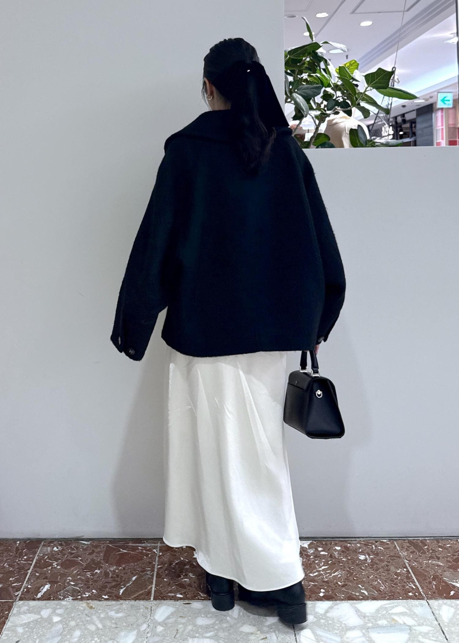 ゆったりしたシルエットで、中に厚手のニットを合わせてもゴワつきません。 -