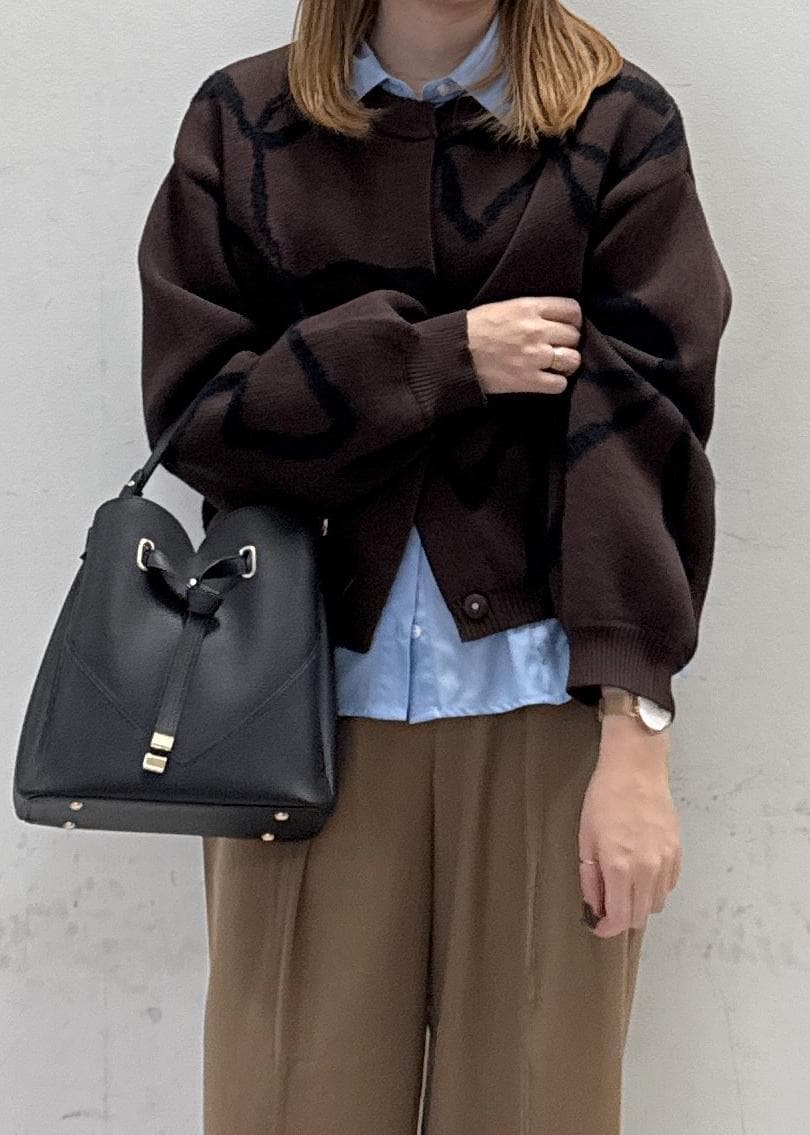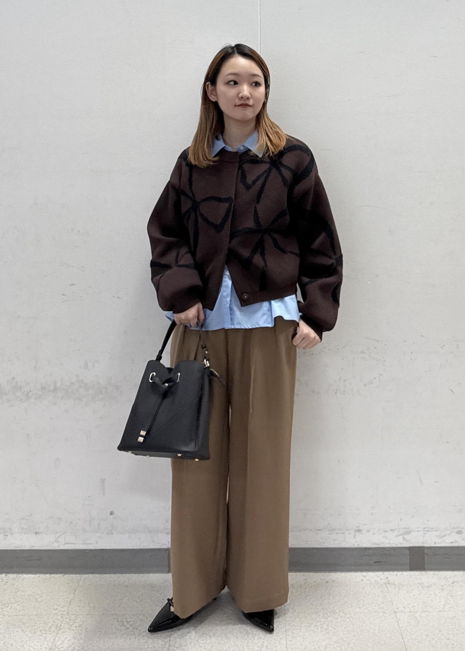 VISリボンモチーフジャガードカーディガン/イージーケアダークブラウン / F¥6,919レビューゆったりとしたシルエットです!