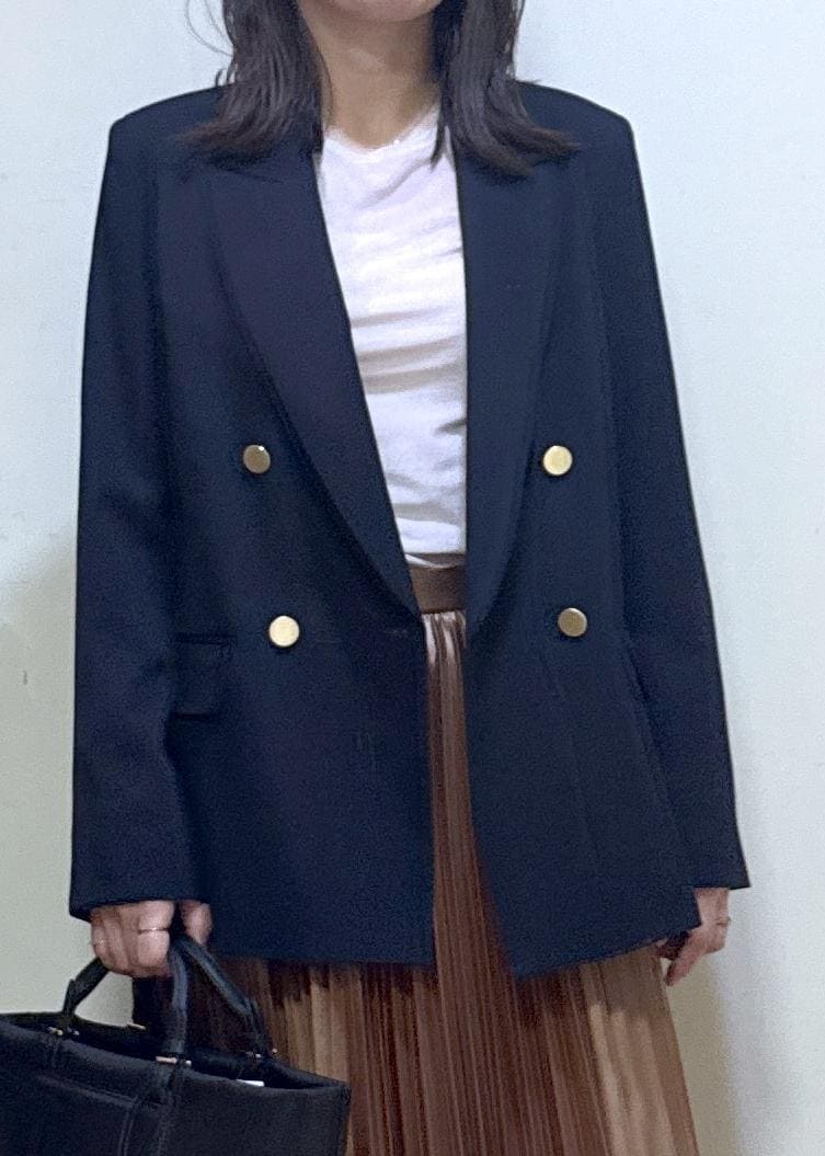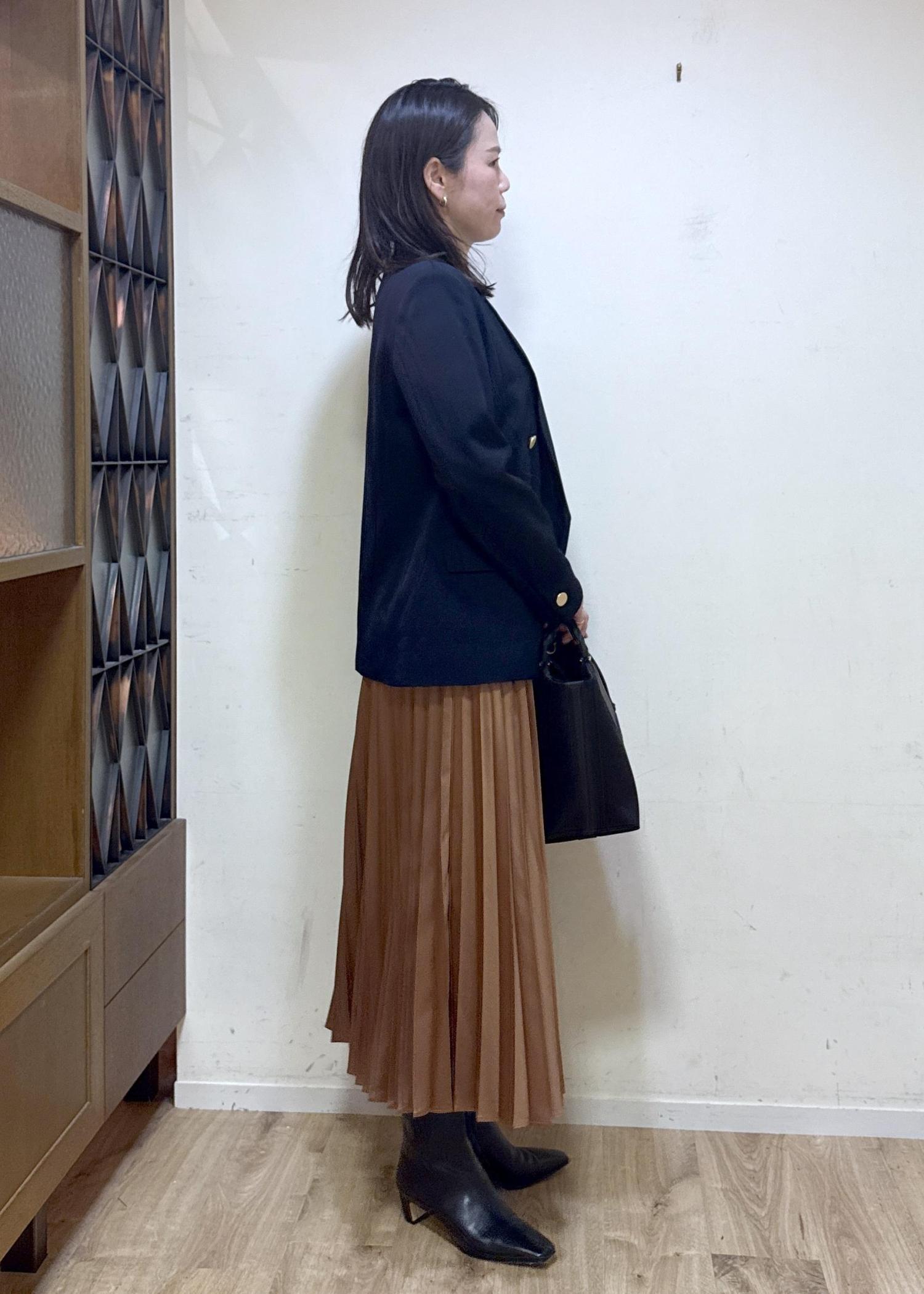 ブラウスや薄手のトップスを着ても窮屈感はないので、コートを着用する前の季節には大活躍するアイテムです! -