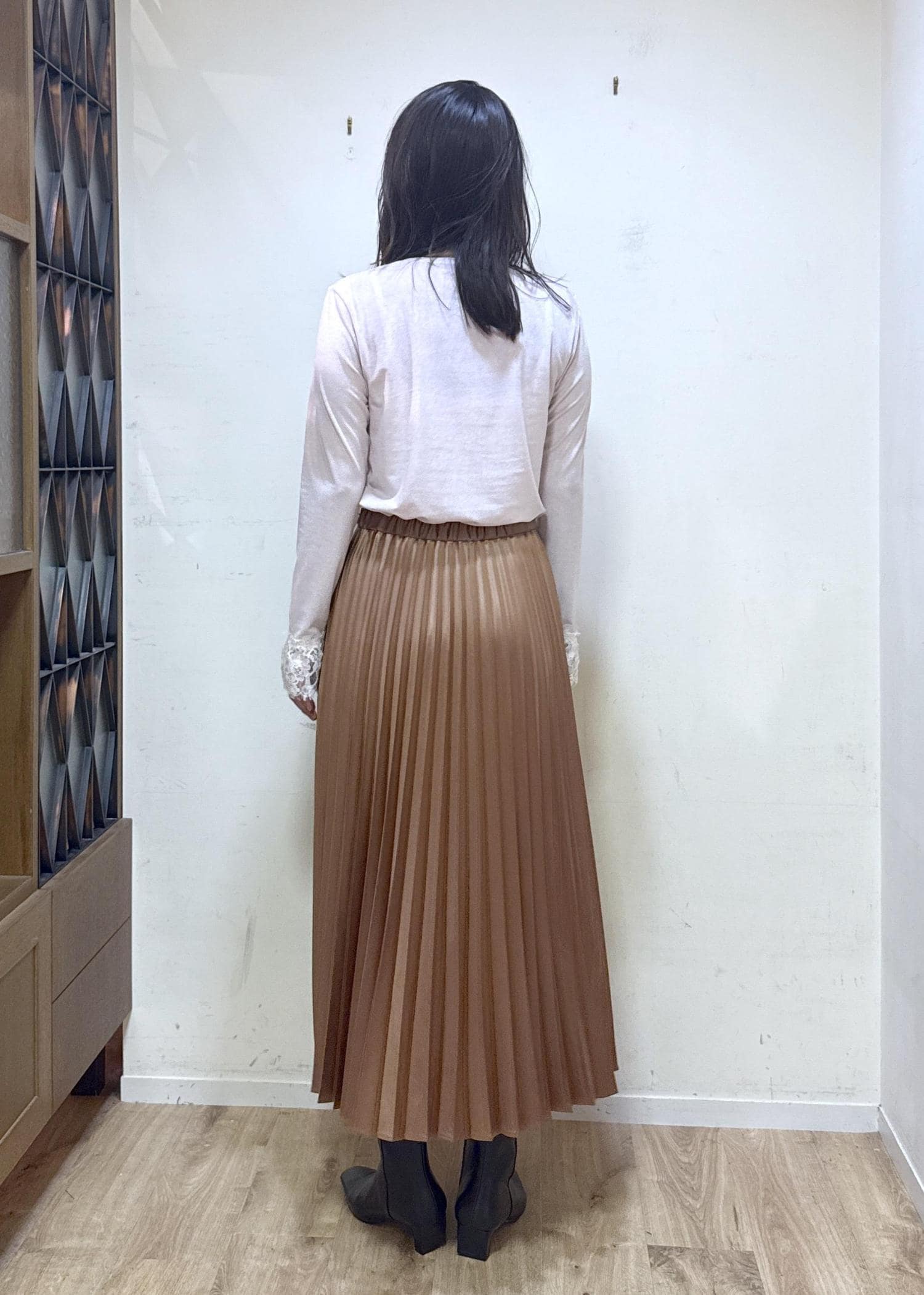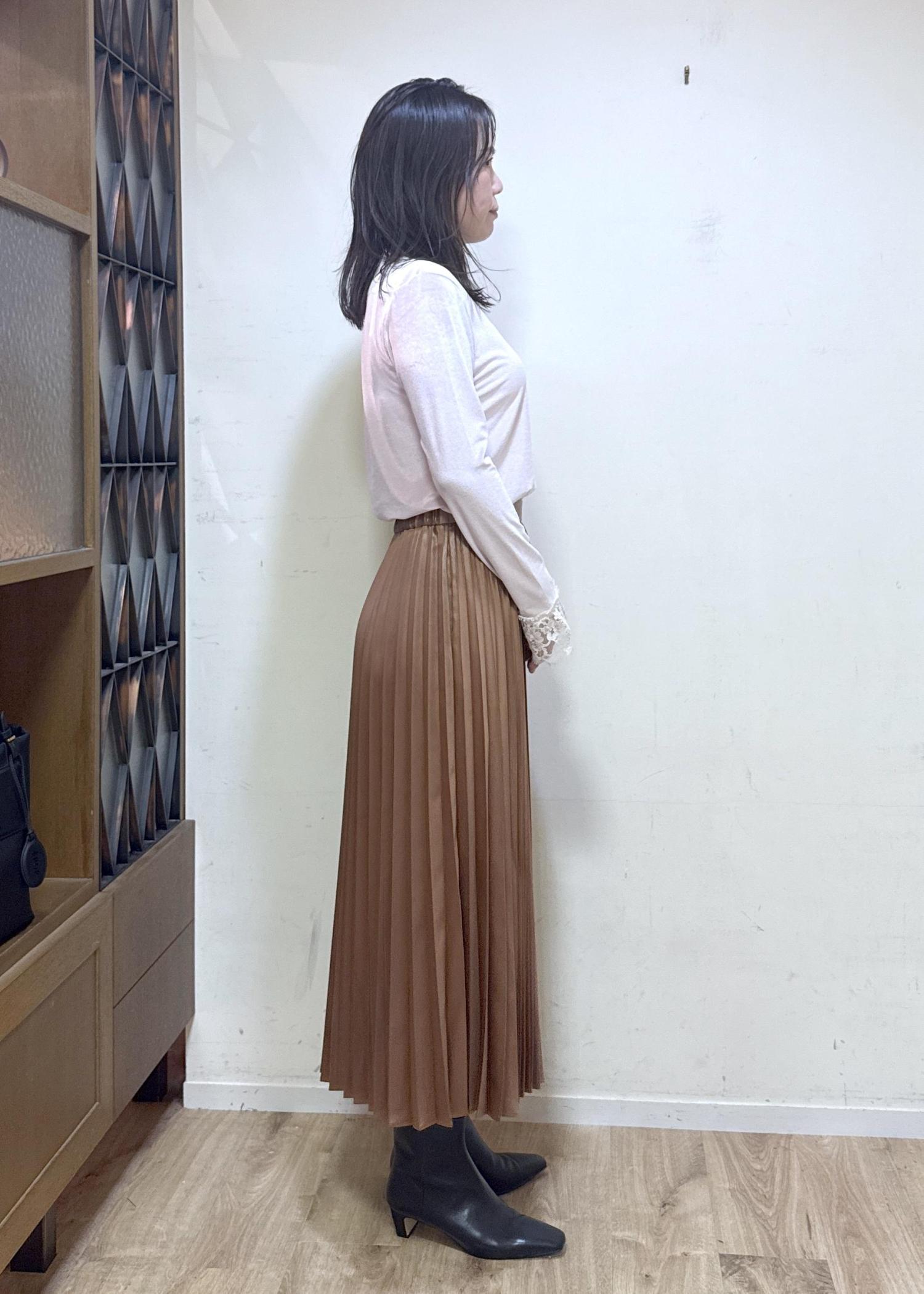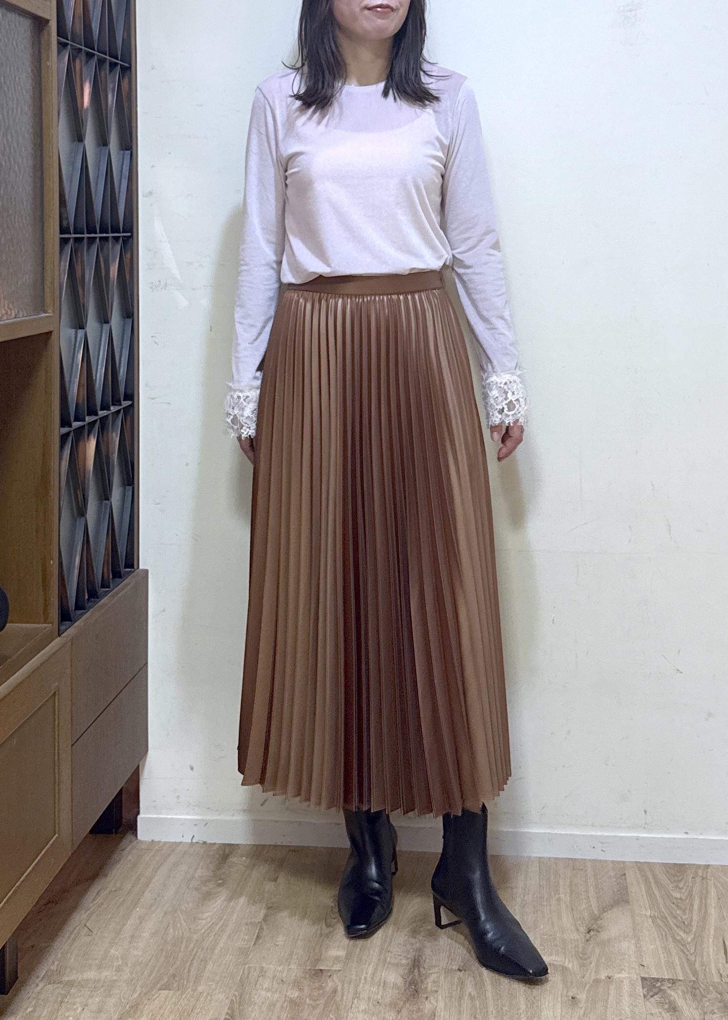 ROPÉシャイニープリーツスカート/イージーケアキャメル / F¥26,400レビュー163センチ Fサイズ着用