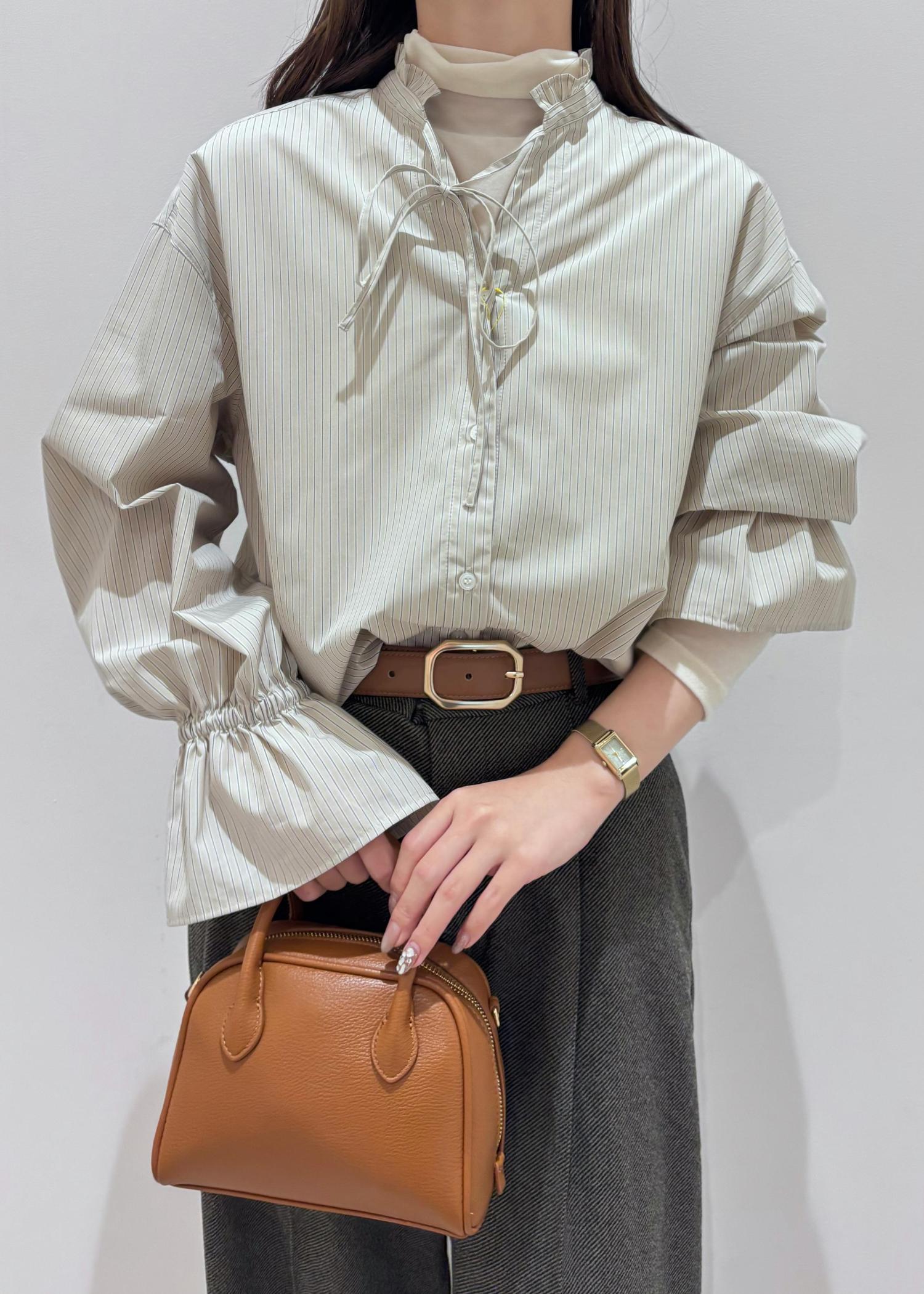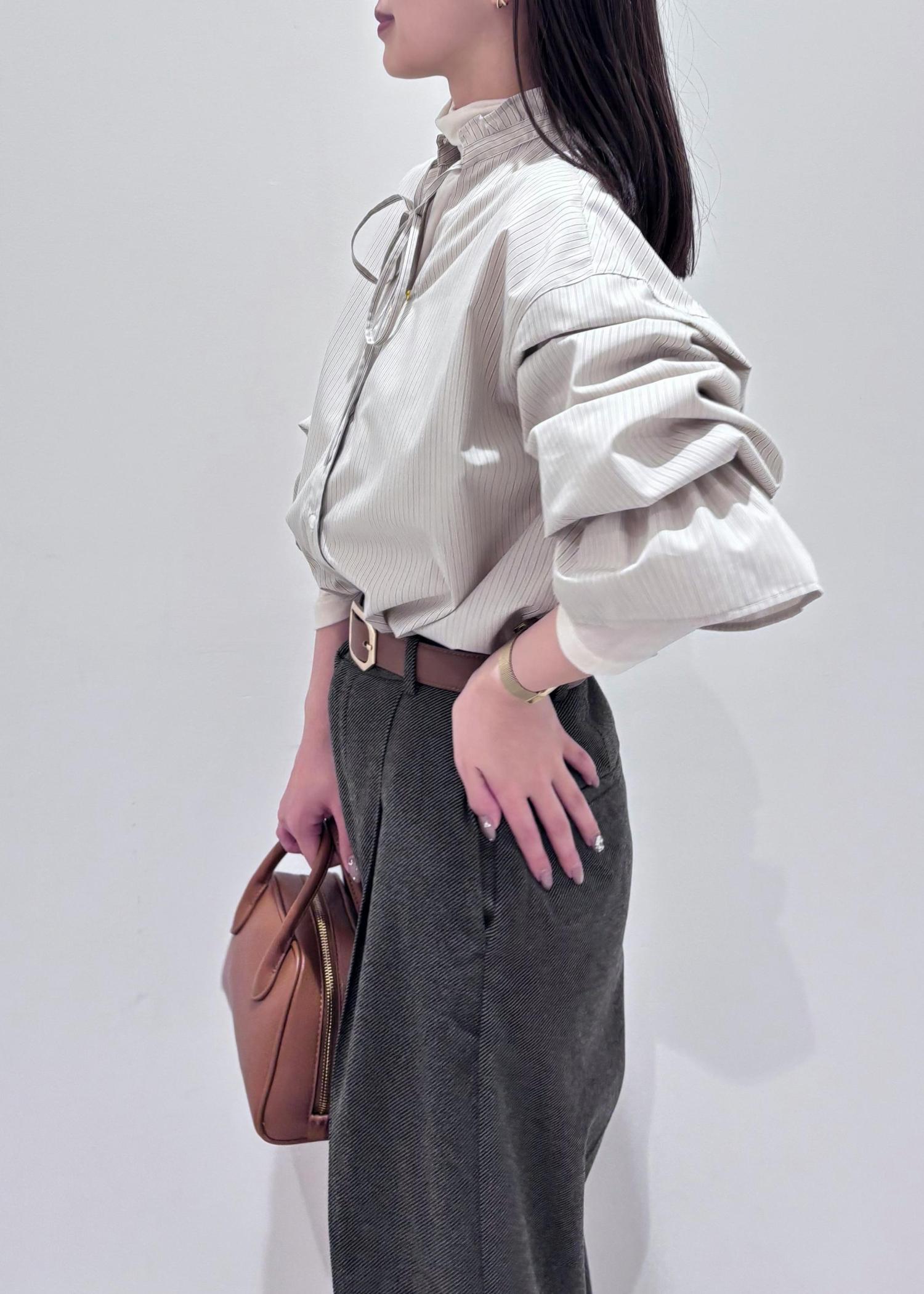 ベロアタートル×ストライプシャツで秋冬お出掛けコーデ♪