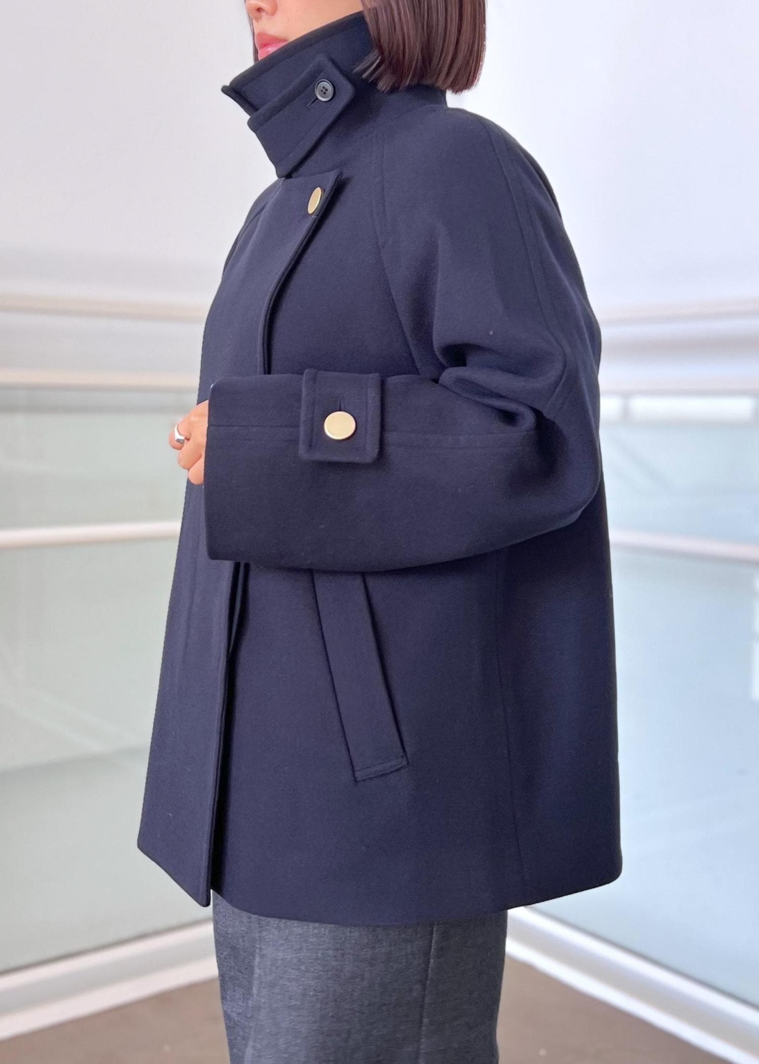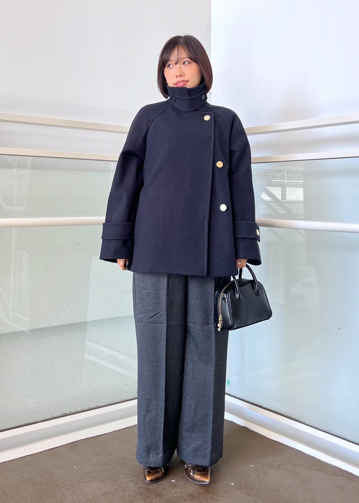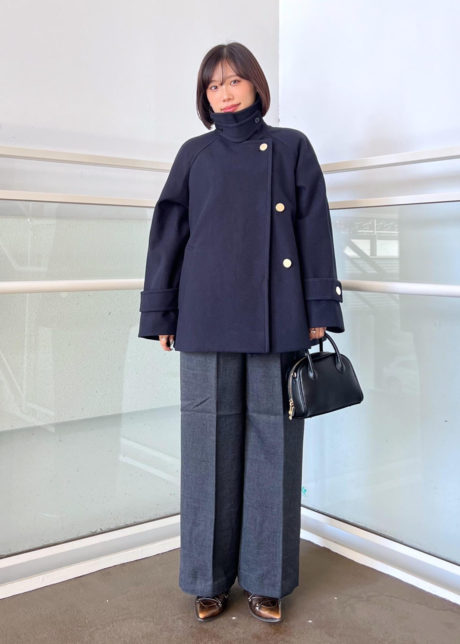 ROPÉ PICNICジャージーメルトンシリーズ 金ボタンミドル丈コート/リンクコーデネイビー / F¥7,692レビューシルエットが綺麗で、首元が立てられるように用途によって変えられます。マフラーいらずで1枚でさっと羽織れます。落ち着いたネイビーの色合いが大人を演出してくれるので多様なシーンに使えます。