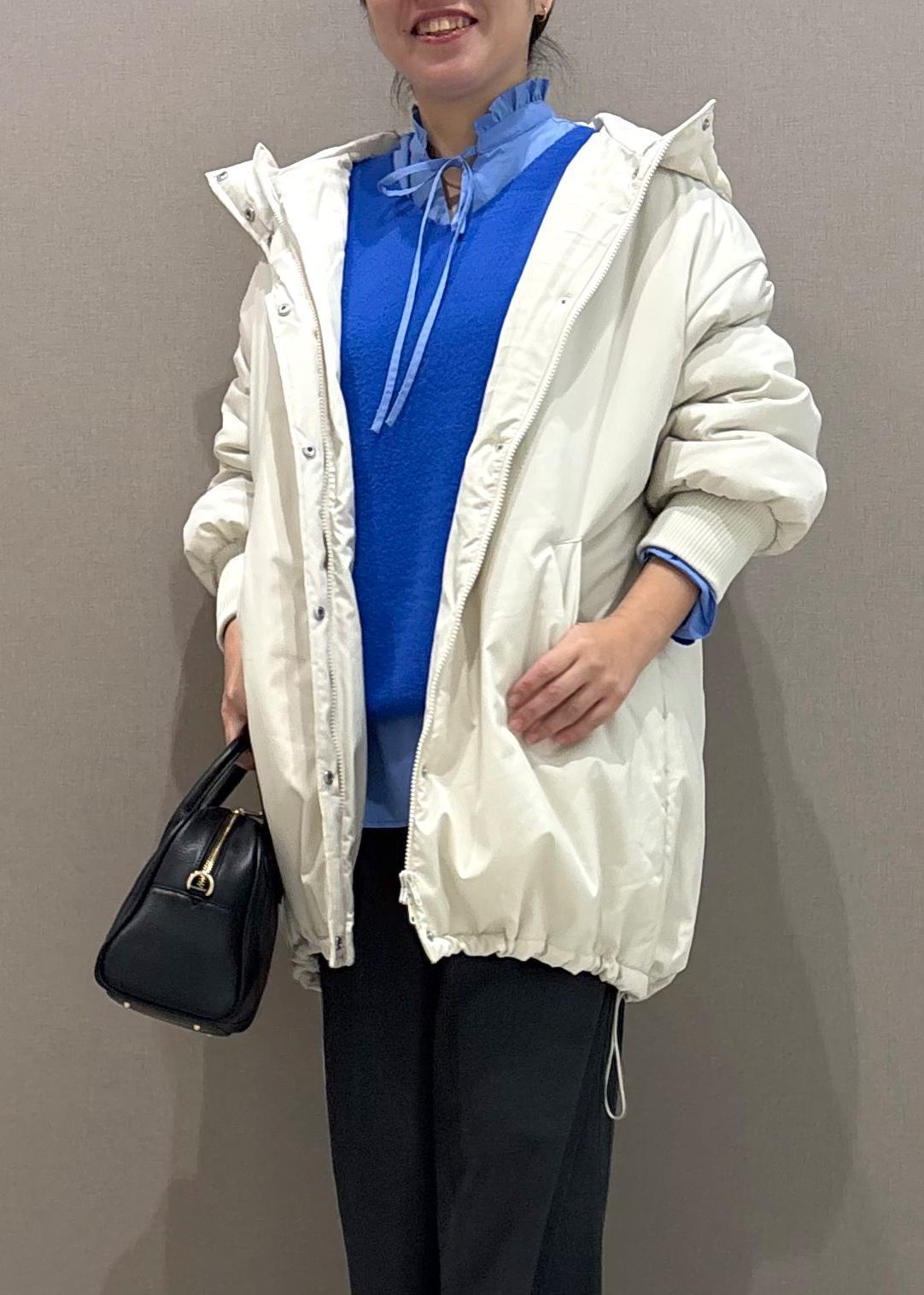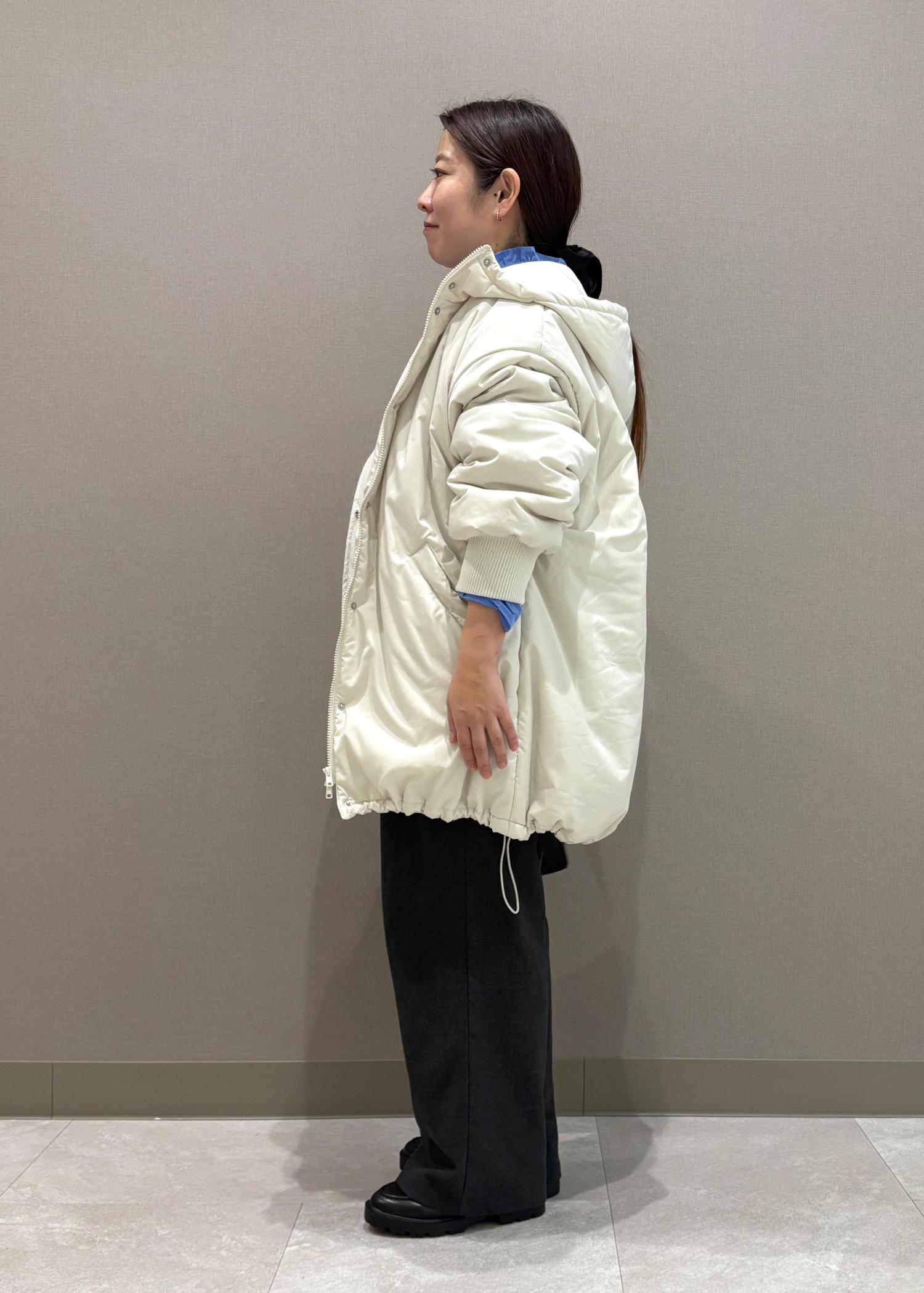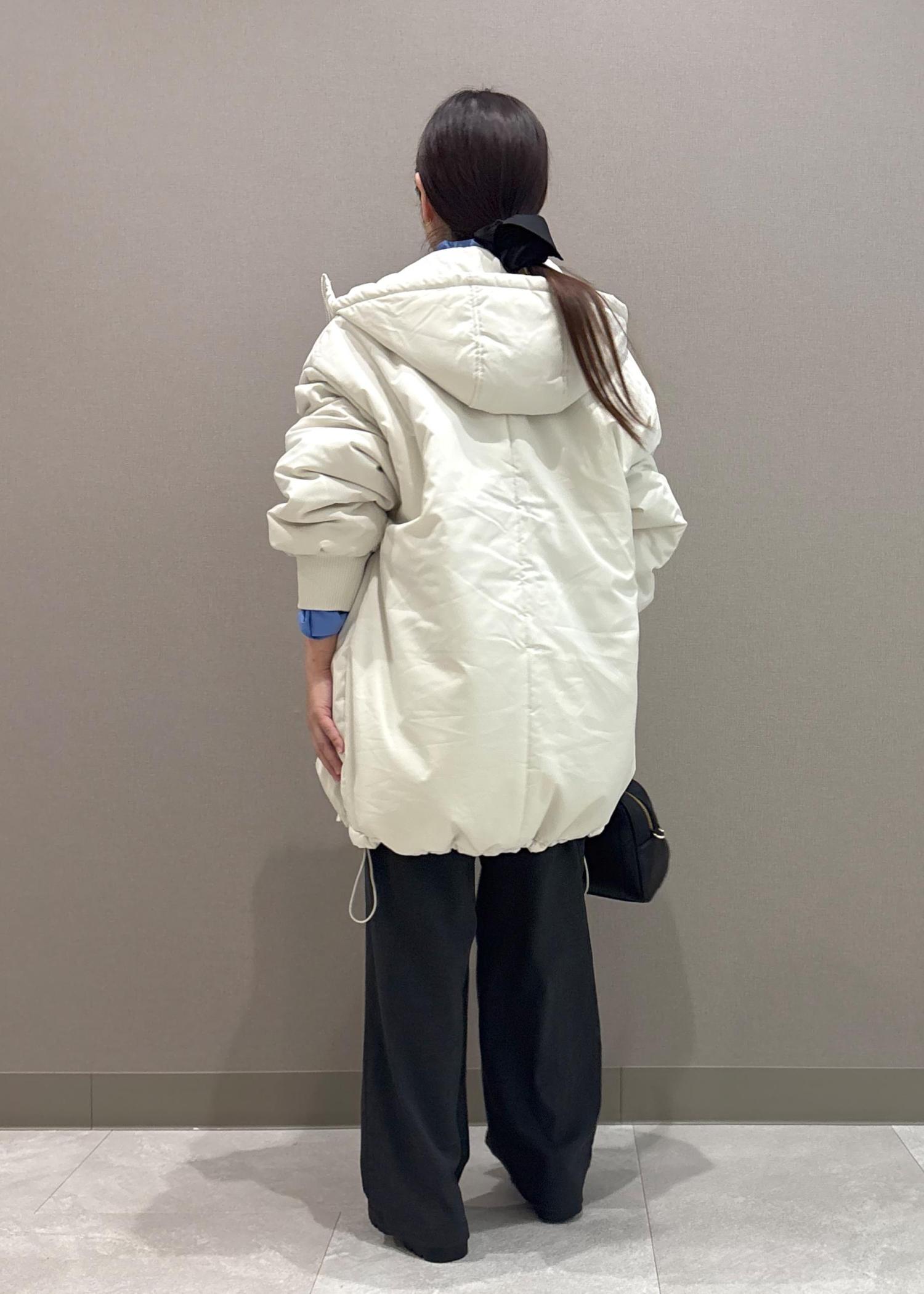 ボリュームのあるデザインですが、裾のアジャスターで絞ると少しスッキリ見えます。 -