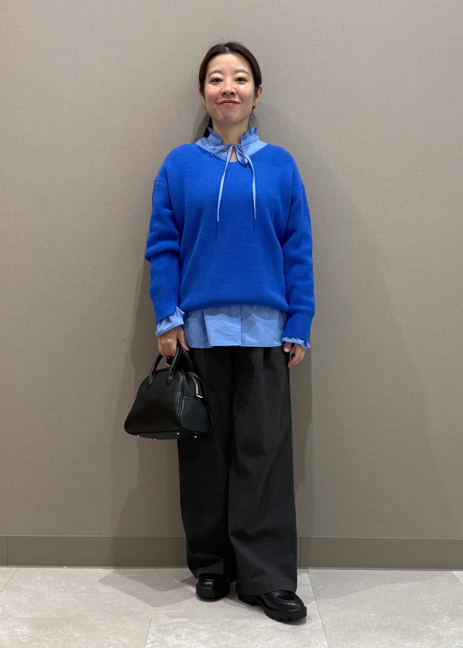 袖や襟がポイントになるので、レイヤードスタイルに使いやすいです。 -