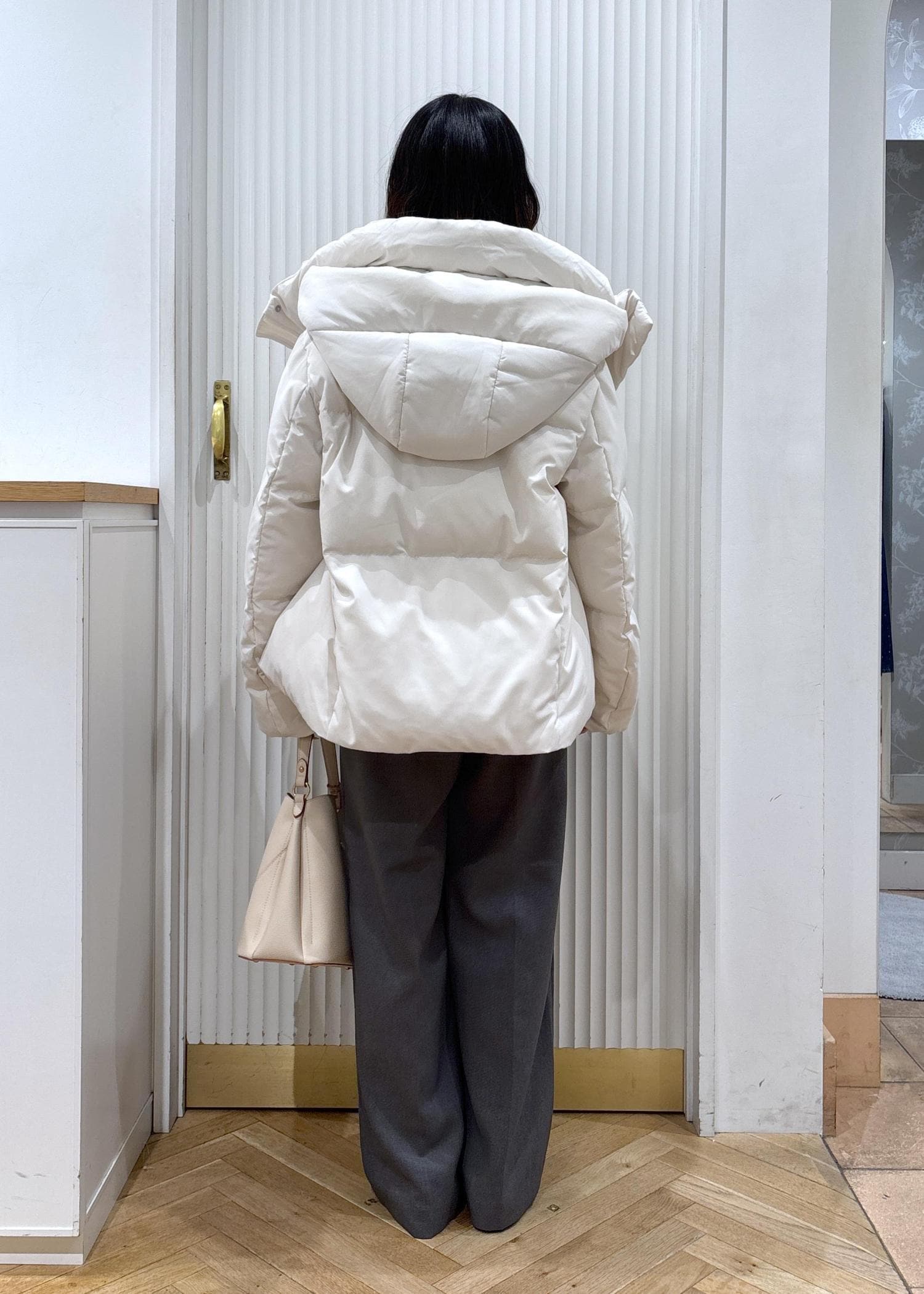 VIS【アウター総選挙3位】フード取り外し可能軽量ダウンブルゾン/2WAY・撥水加工オフホワイト / M¥18,480レビュー153センチでM着用です。かなりゆったりしていますが、着丈が長すぎないのでボトムはロングスカートと合わせてもバランスが悪くならないです。撥水加工やフードの取り外し、裾が絞れるとポイントが高いダウンです!