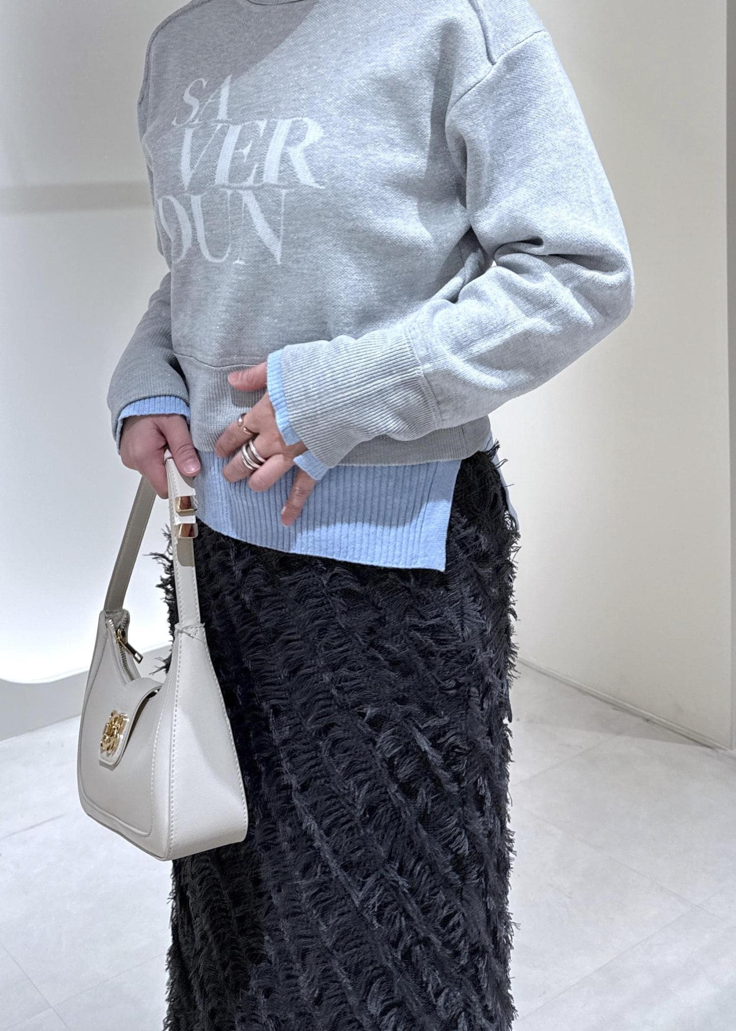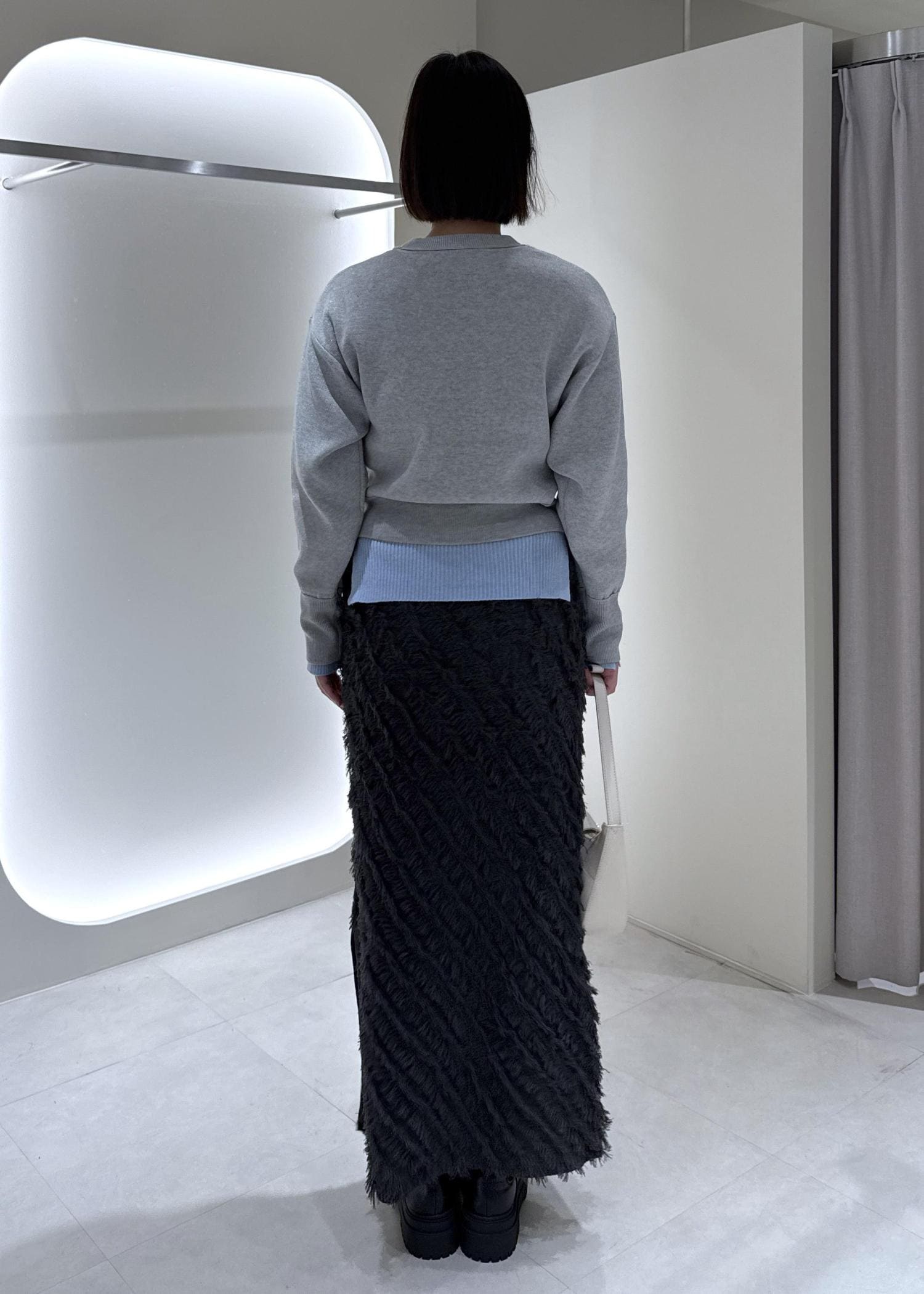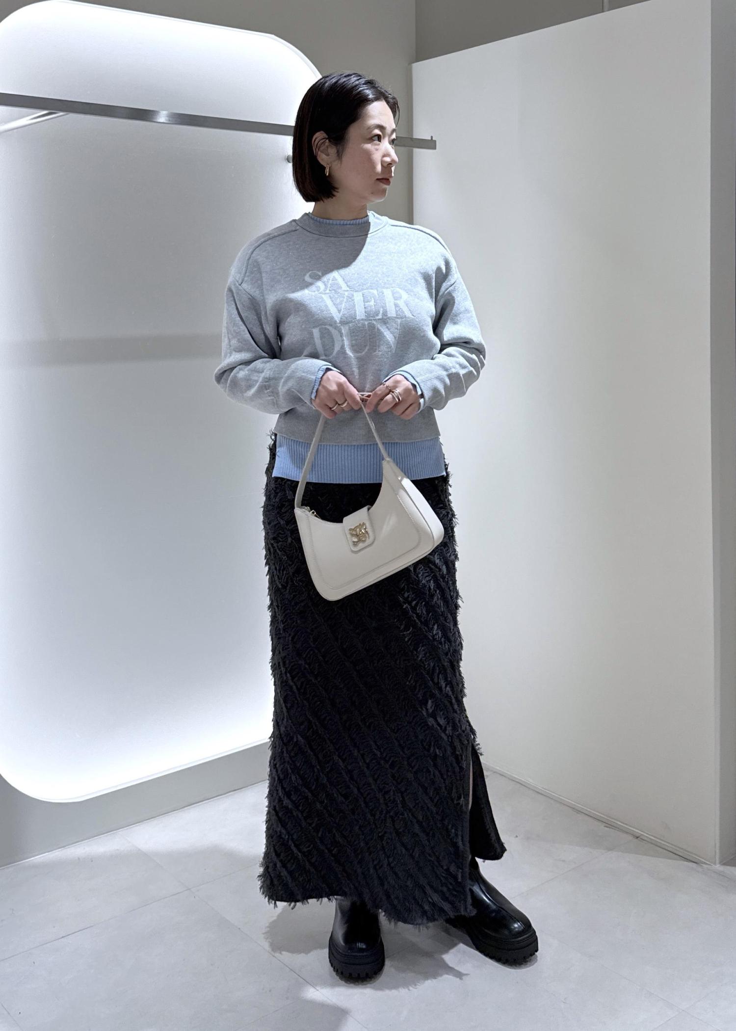VISフリンジニットナロースカートチャコール / F¥6,589レビューフィット感のある生地ですが立体感のある素材なのでヒップラインが響きにくいです!