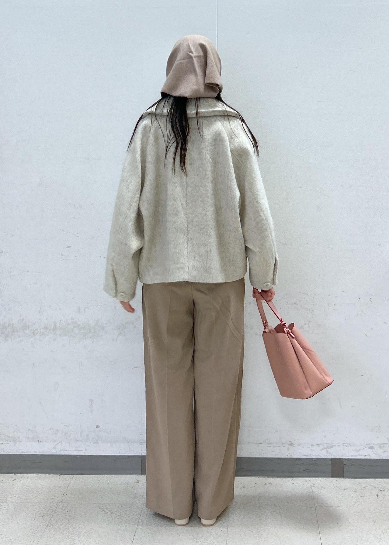 ゆったりした袖なので中に着込んでも着膨れしにくいアウターです♪