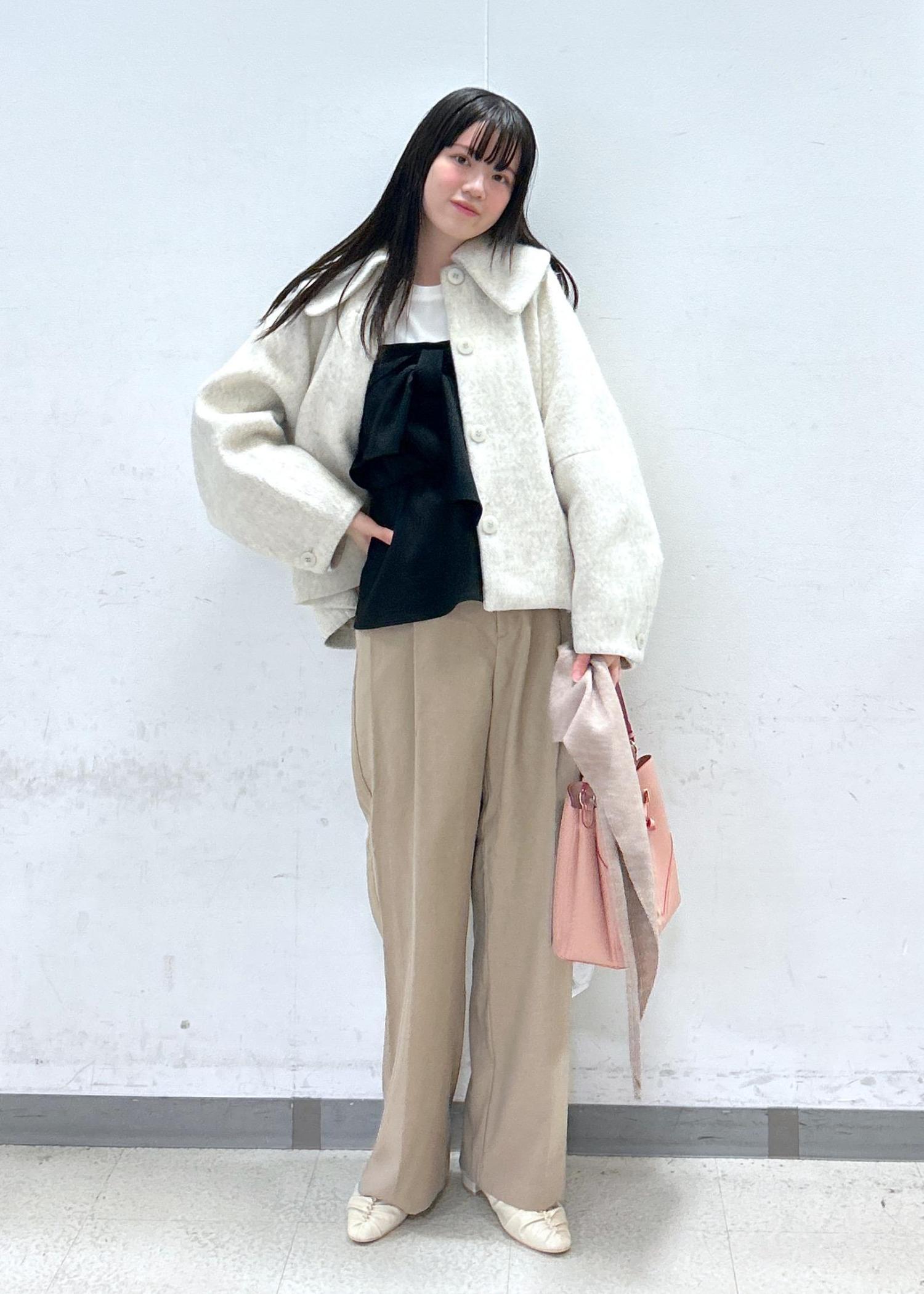 予約VIS【アウター総選挙1位】ビッグカラーモモンガシャギーショートコートオフホワイト / M¥10,989レビュー襟が大きめなのでその対比で顔が小さく見え、