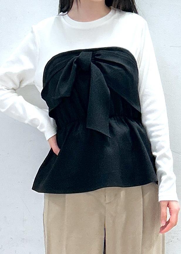 VIS美easyウーリッシュリボンビスチェドッキングカットソープルオーバー/セットアップ対応・イージーケアブラック / F¥5,929レビュービスチェがドッキングされているので1枚なのにレイヤード風のデザインが楽しめます。