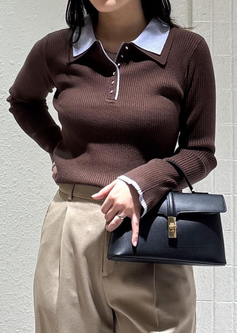 シンプルなデザインで着回しやすく、またバイカラーの襟でちょっとしたポイントをプラスできる万能アイテムです! -