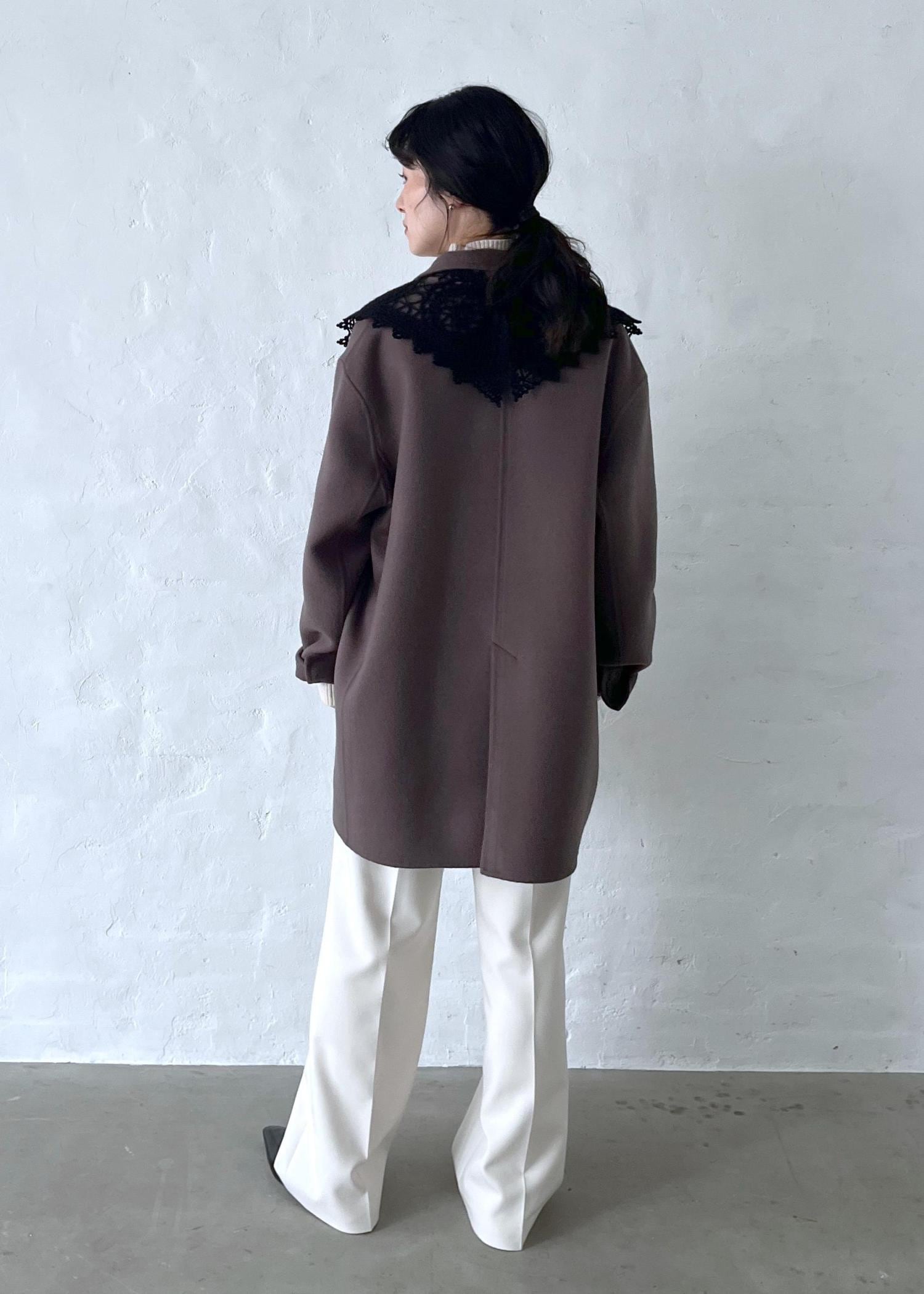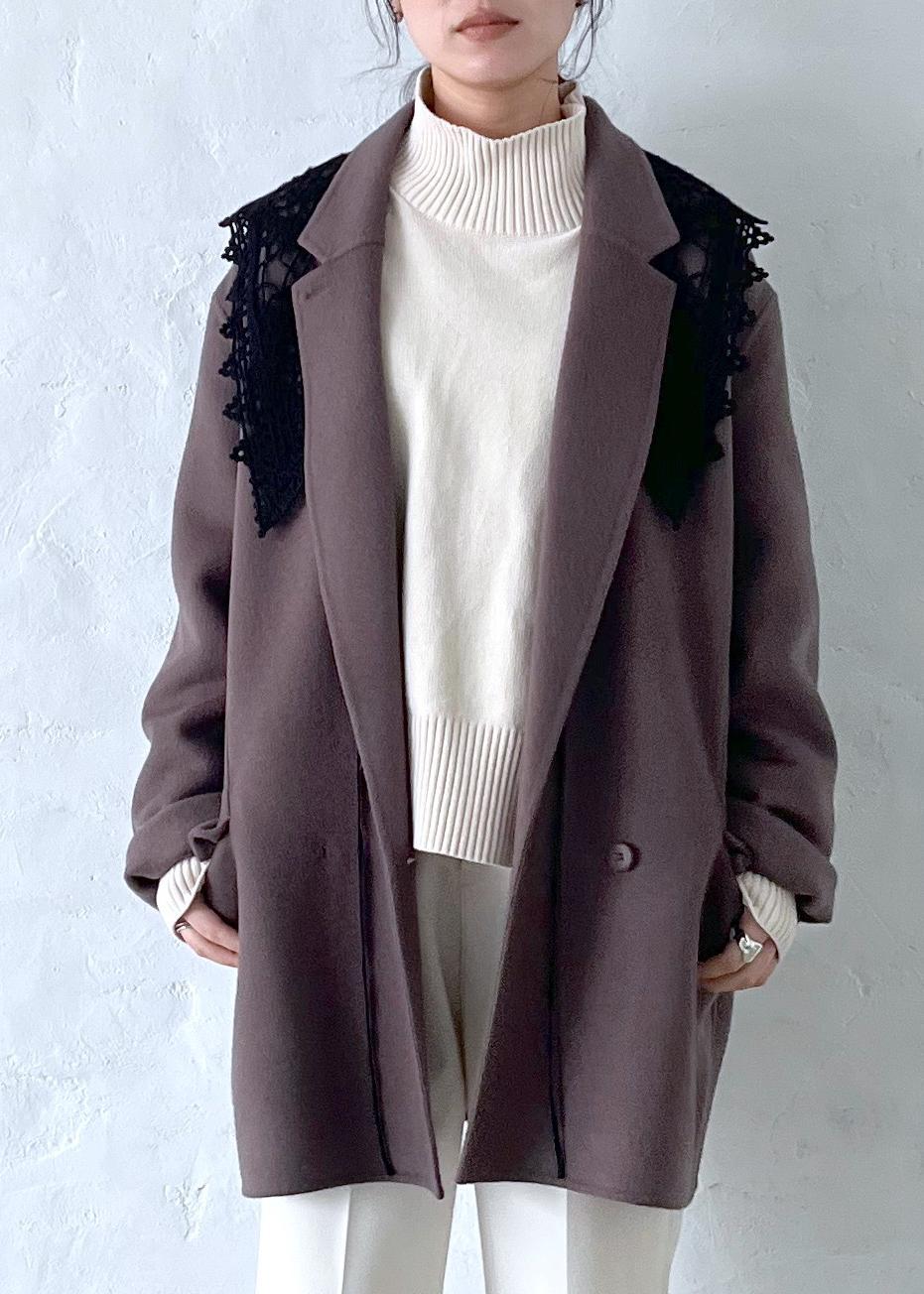 さりげない襟型のレース。肩にかけたり、腰に巻いたり、バックにつけたり用途はさまざまです。