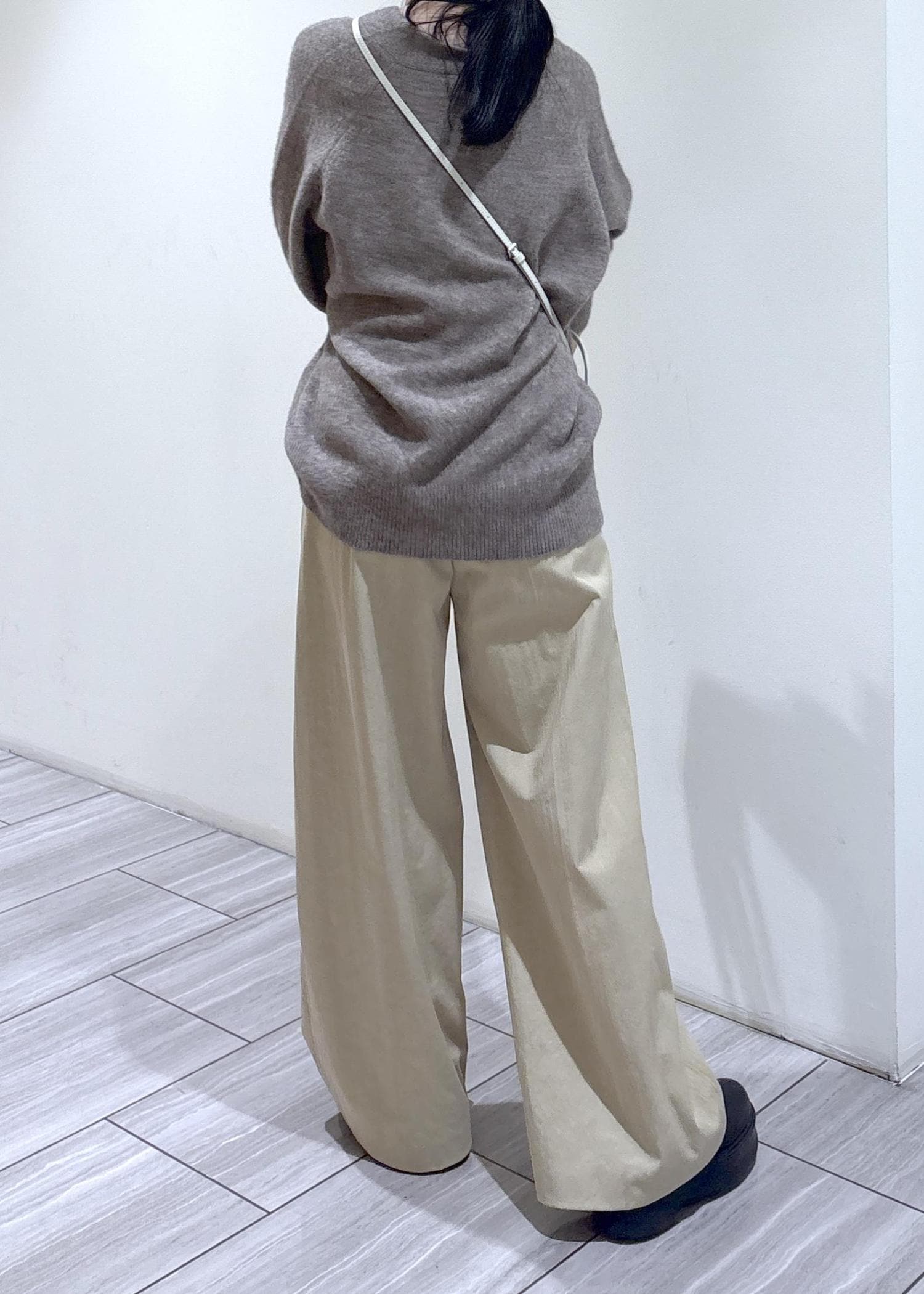 ややハリ感があり、キレイな形のワイドシルエット◎