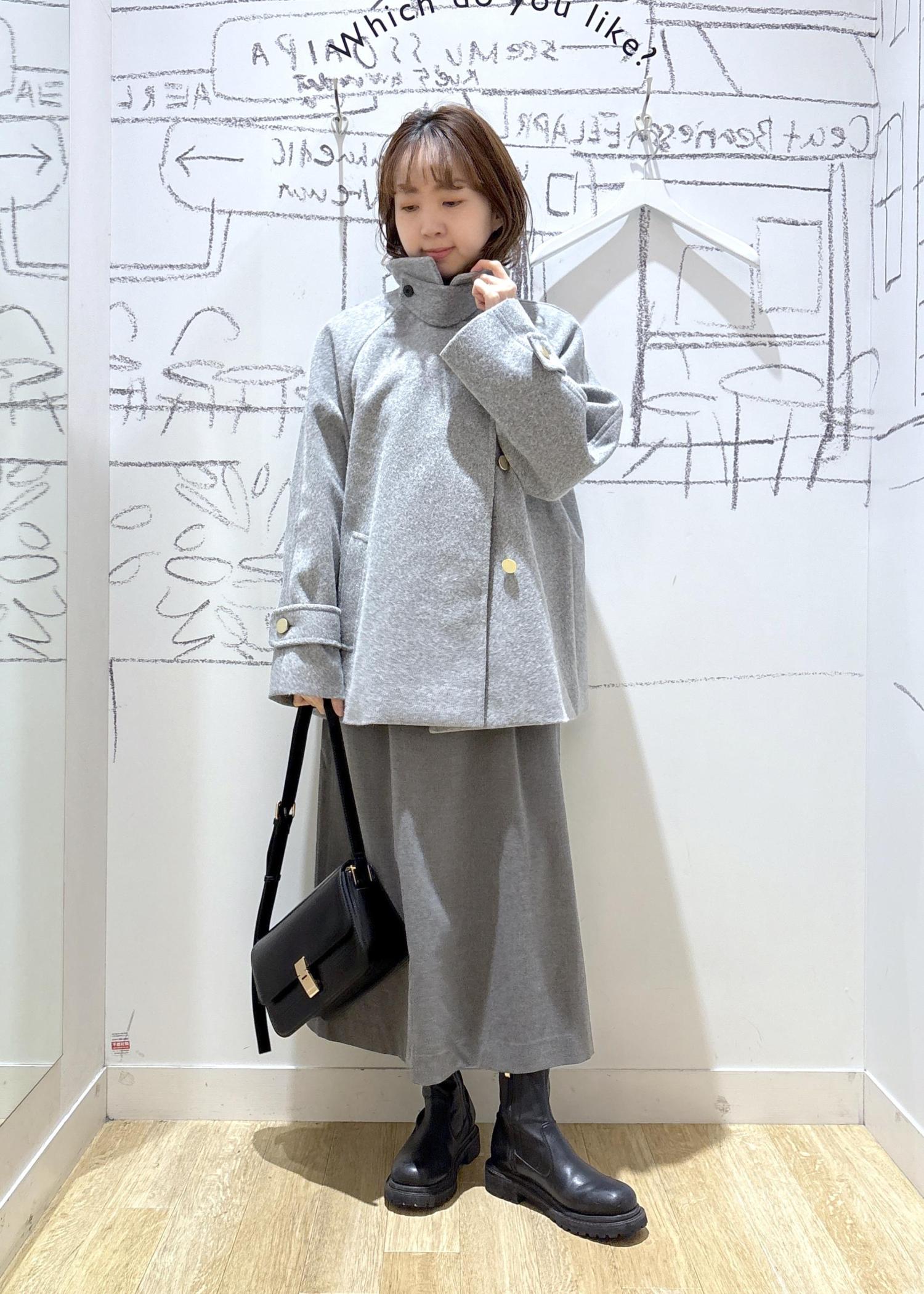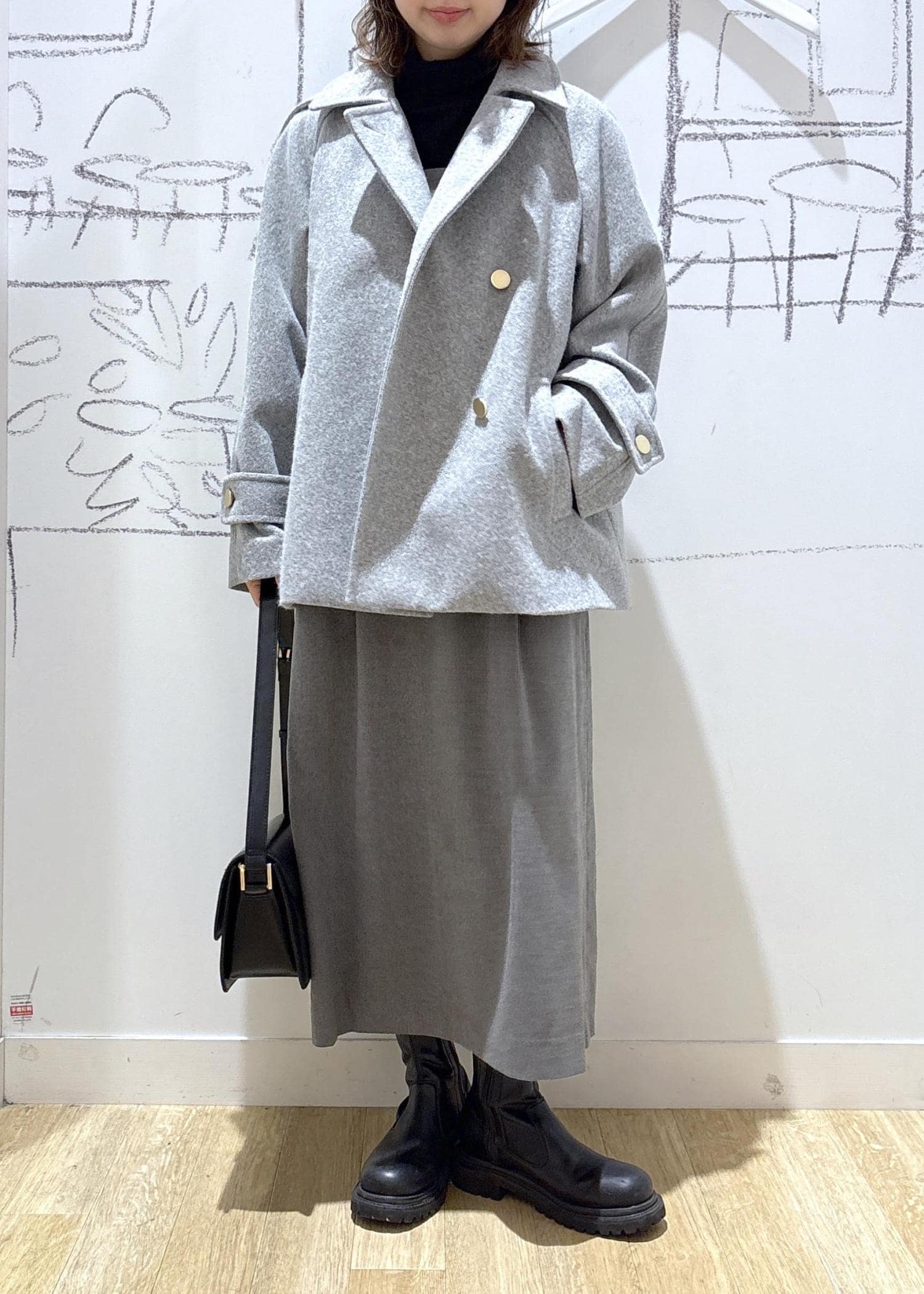 ROPÉ PICNICジャージーメルトンシリーズ 金ボタンミドル丈コート/リンクコーデライトグレー / F¥10,989レビューゆったりとしたシルエットで中に厚手のニットもしっかり重ね着できます。