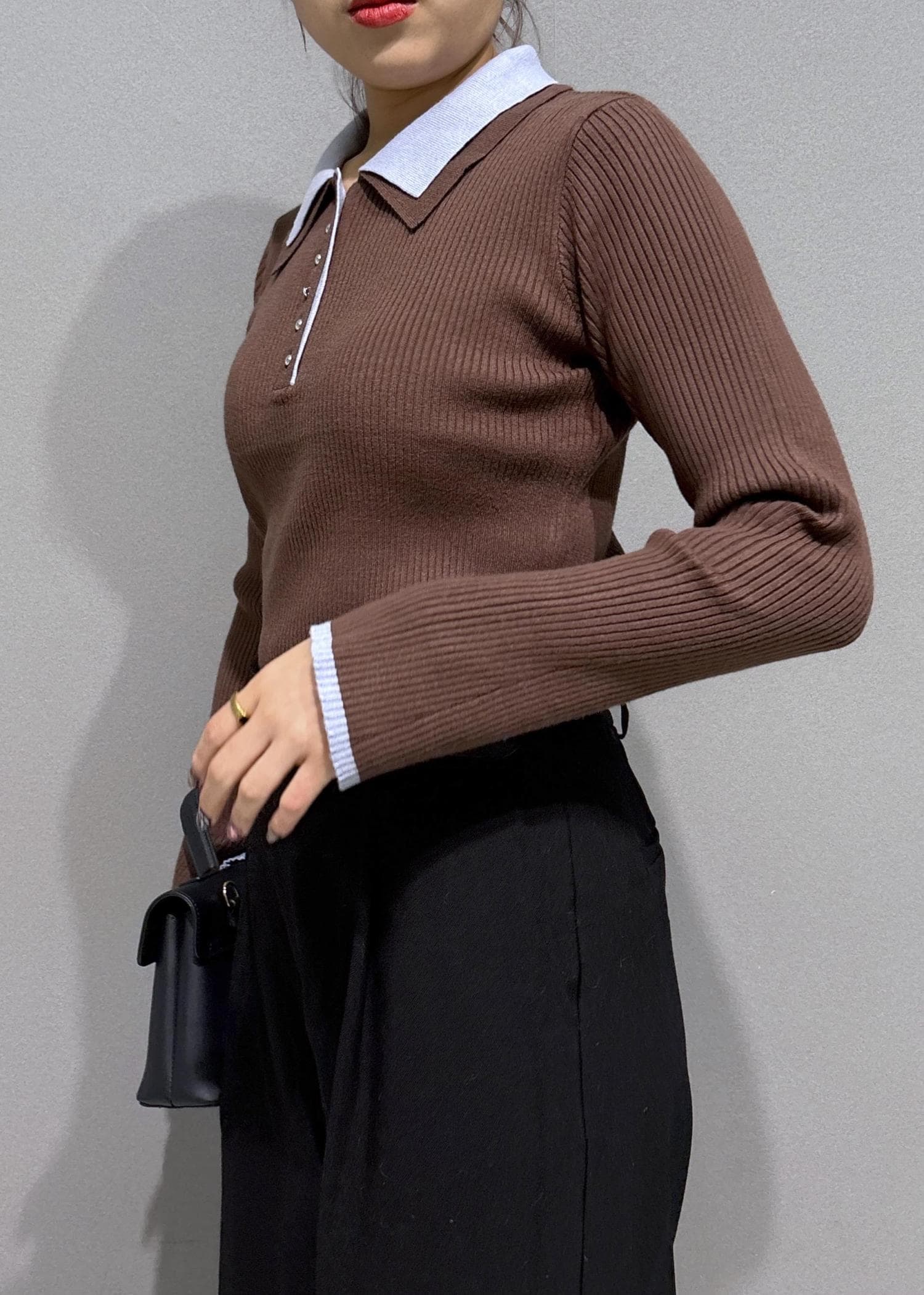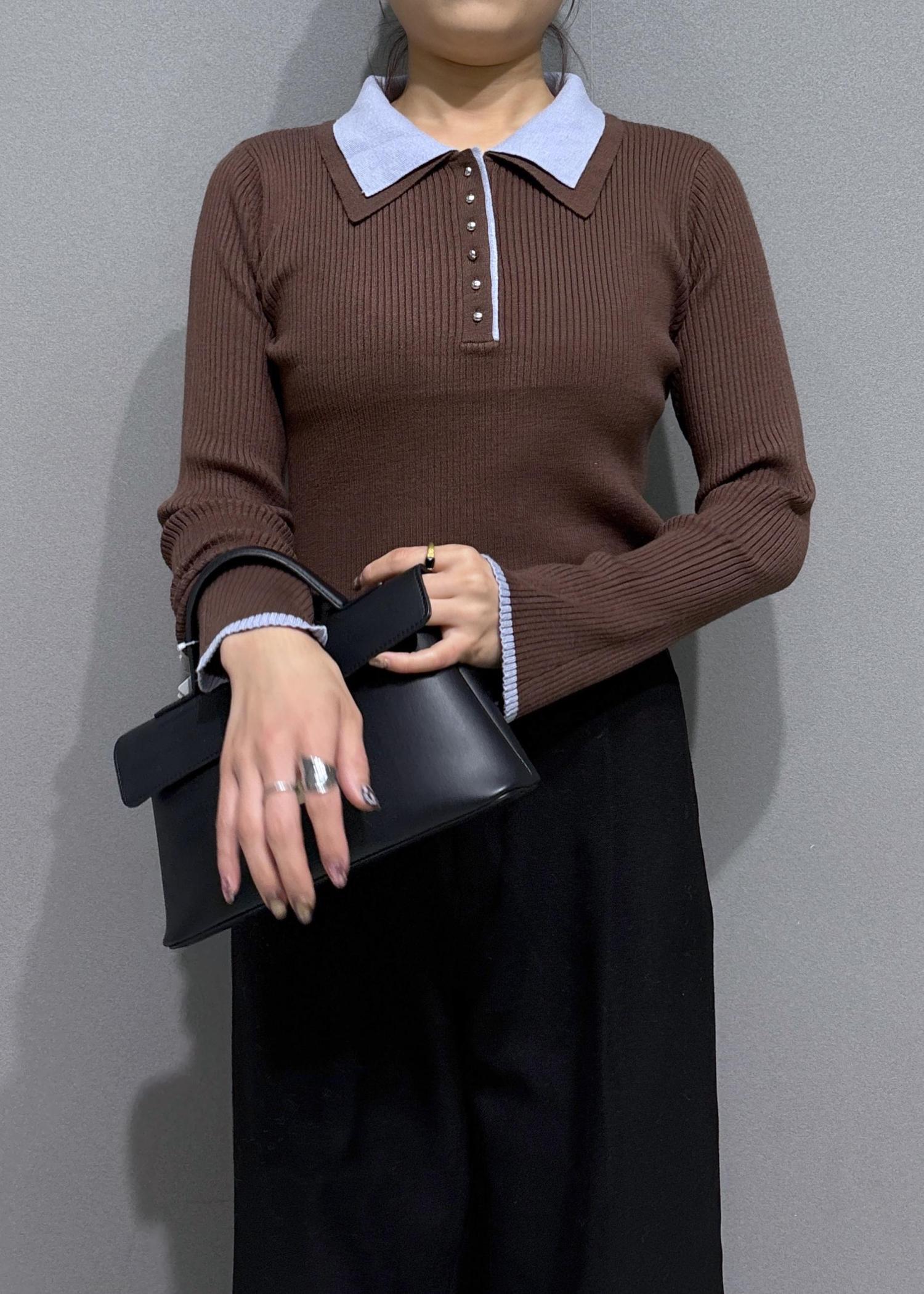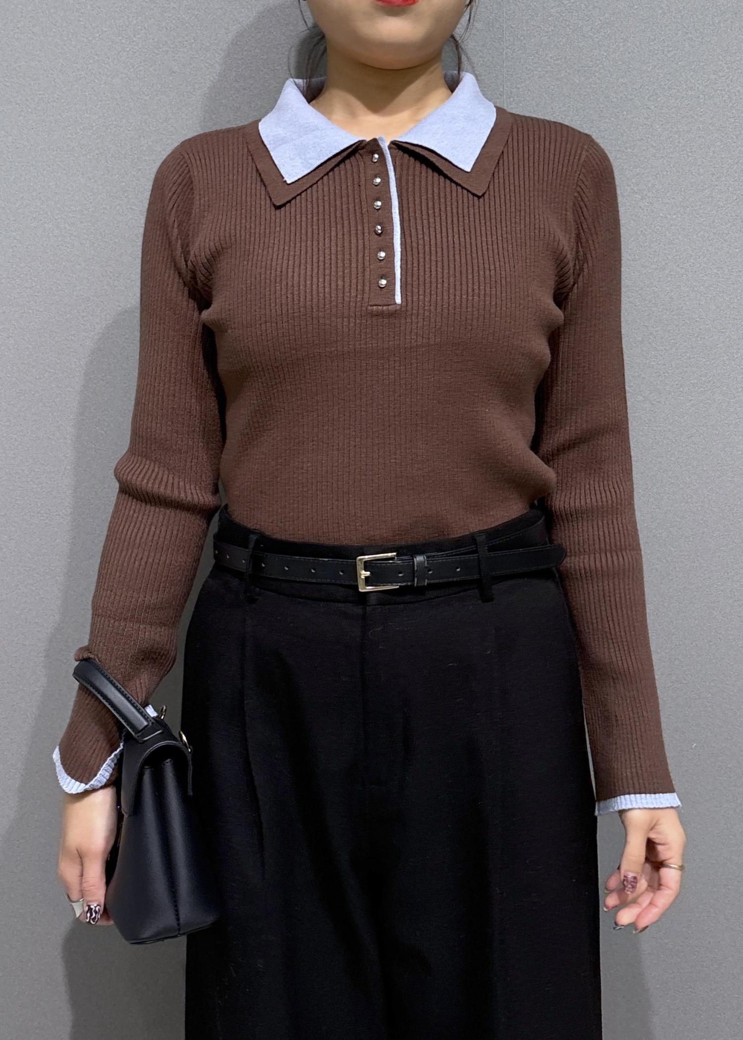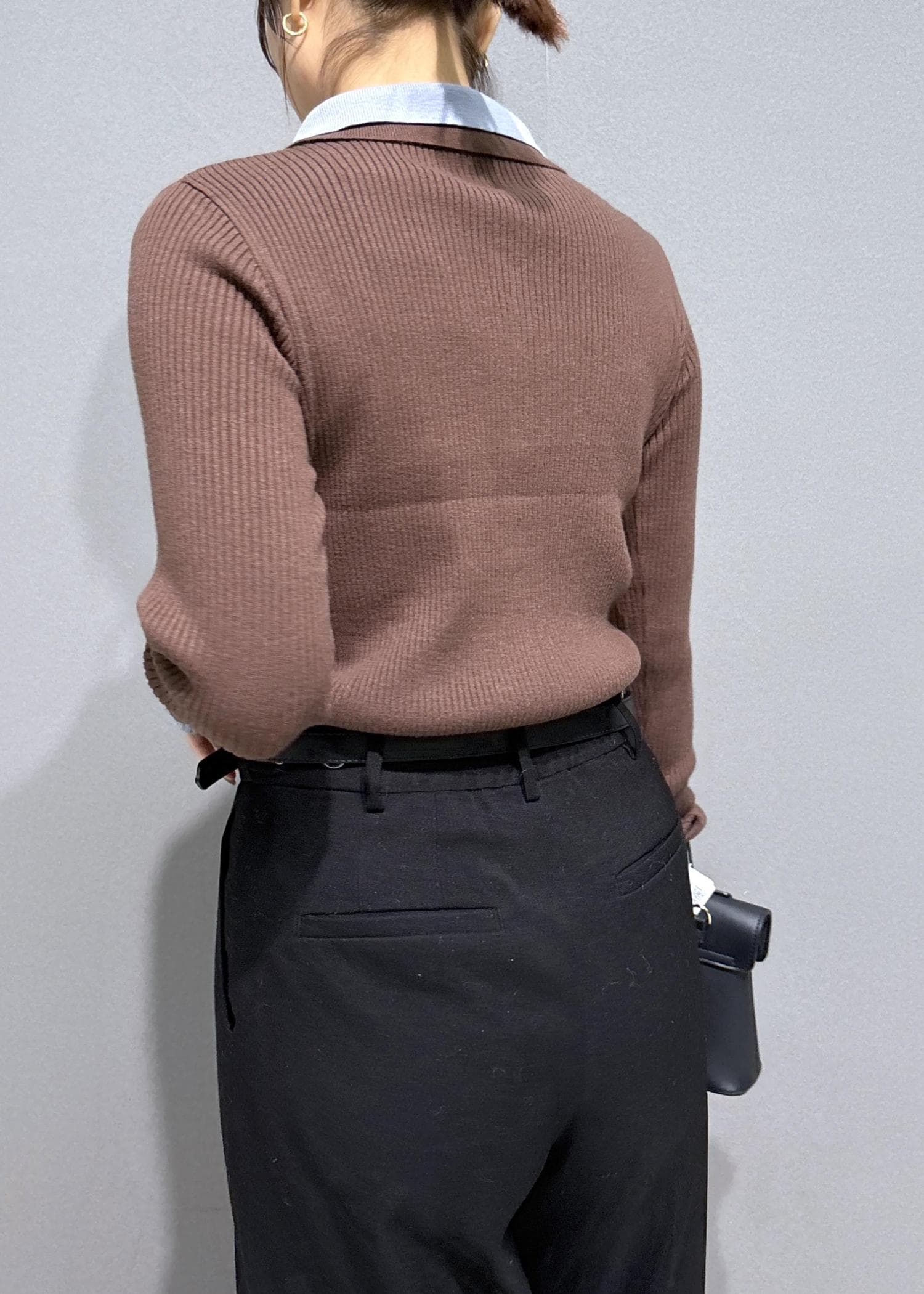 予約VISダブルカラーポロニットトップスブラウン / F¥5,929レビュー柔らかく伸縮性のあるニットで