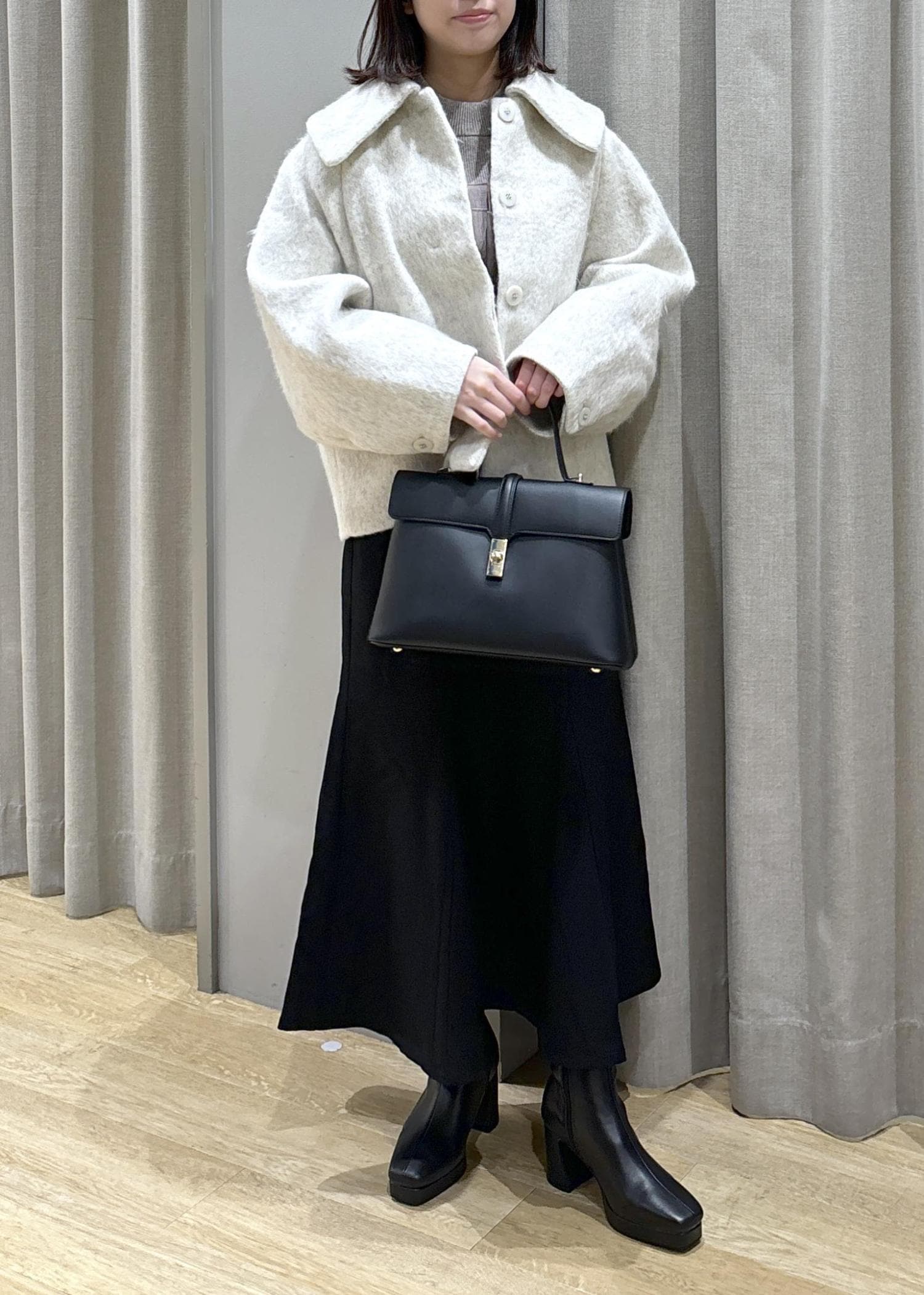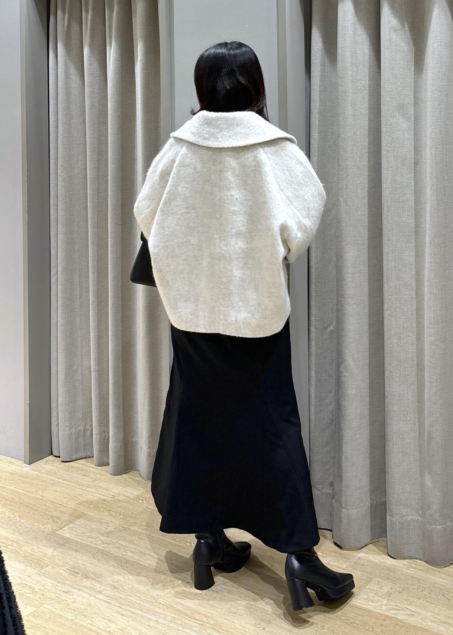予約VIS【アウター総選挙1位】ビッグカラーモモンガシャギーショートコートオフホワイト / S¥10,989レビュー身長158cm、Sサイズ着用。