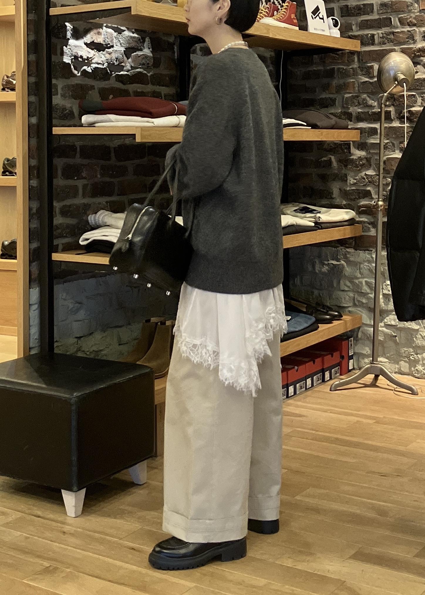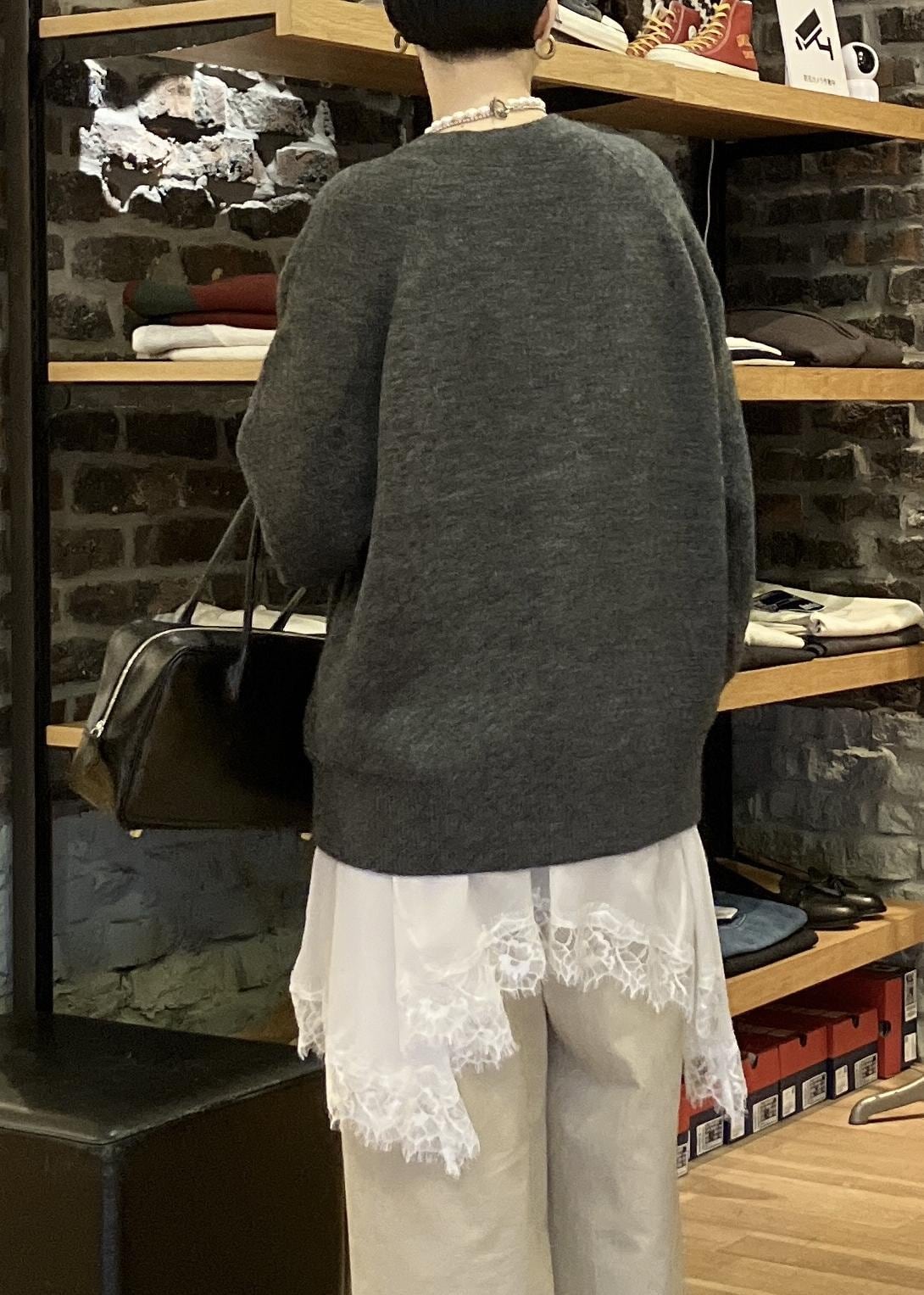 スウェットから、ゆるめのニットから、アウターからレースが見えるだけでオシャレな雰囲気に!