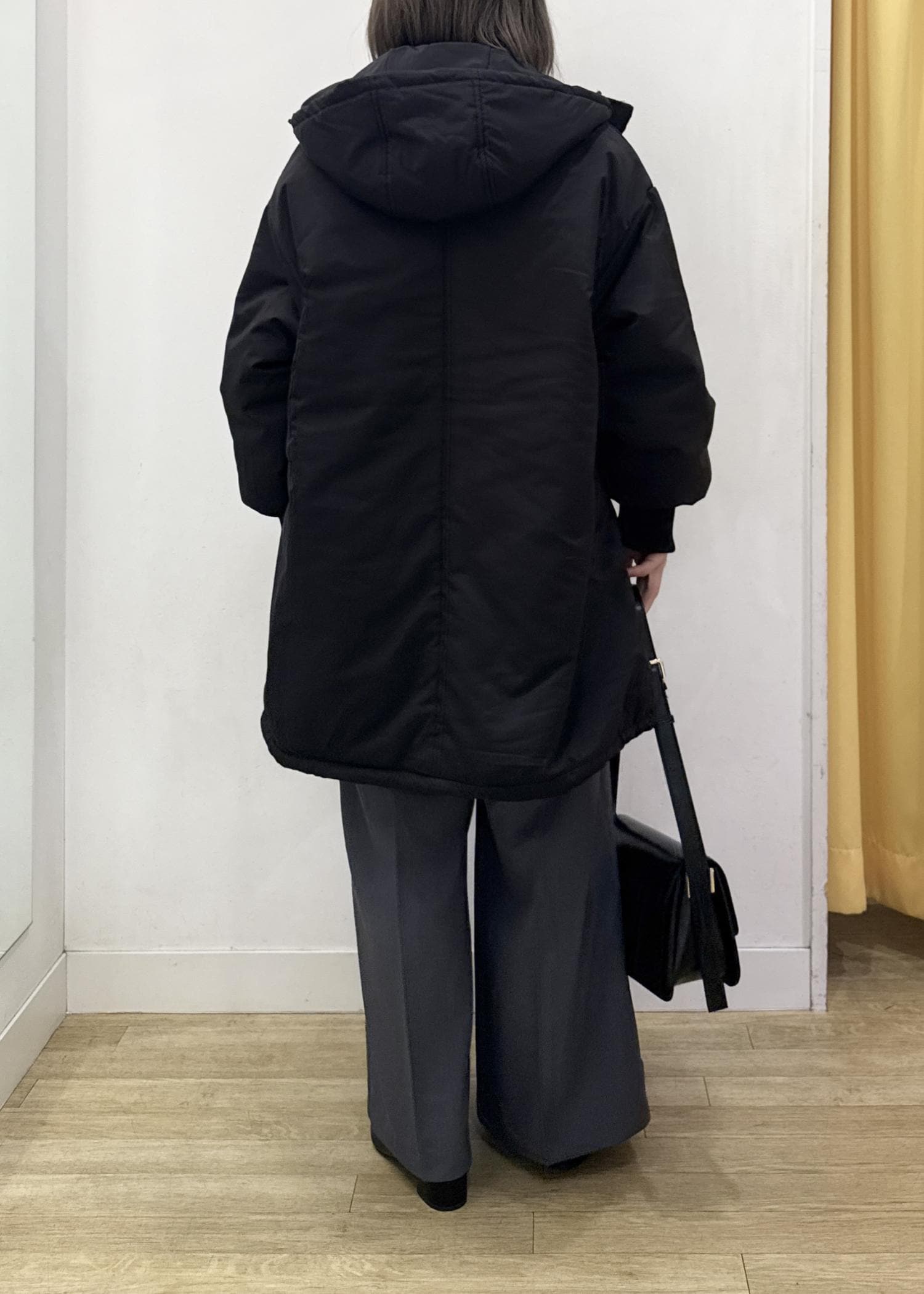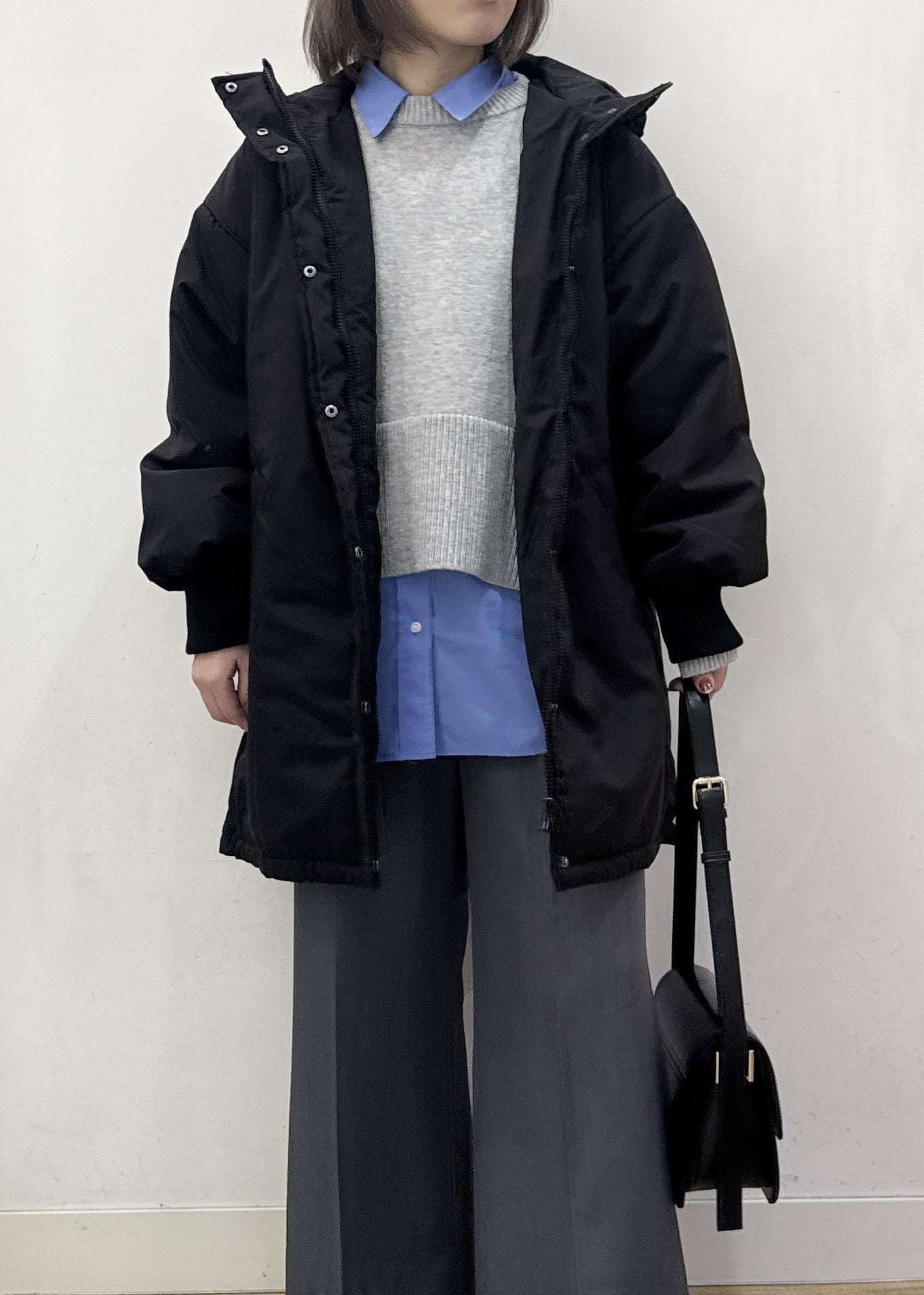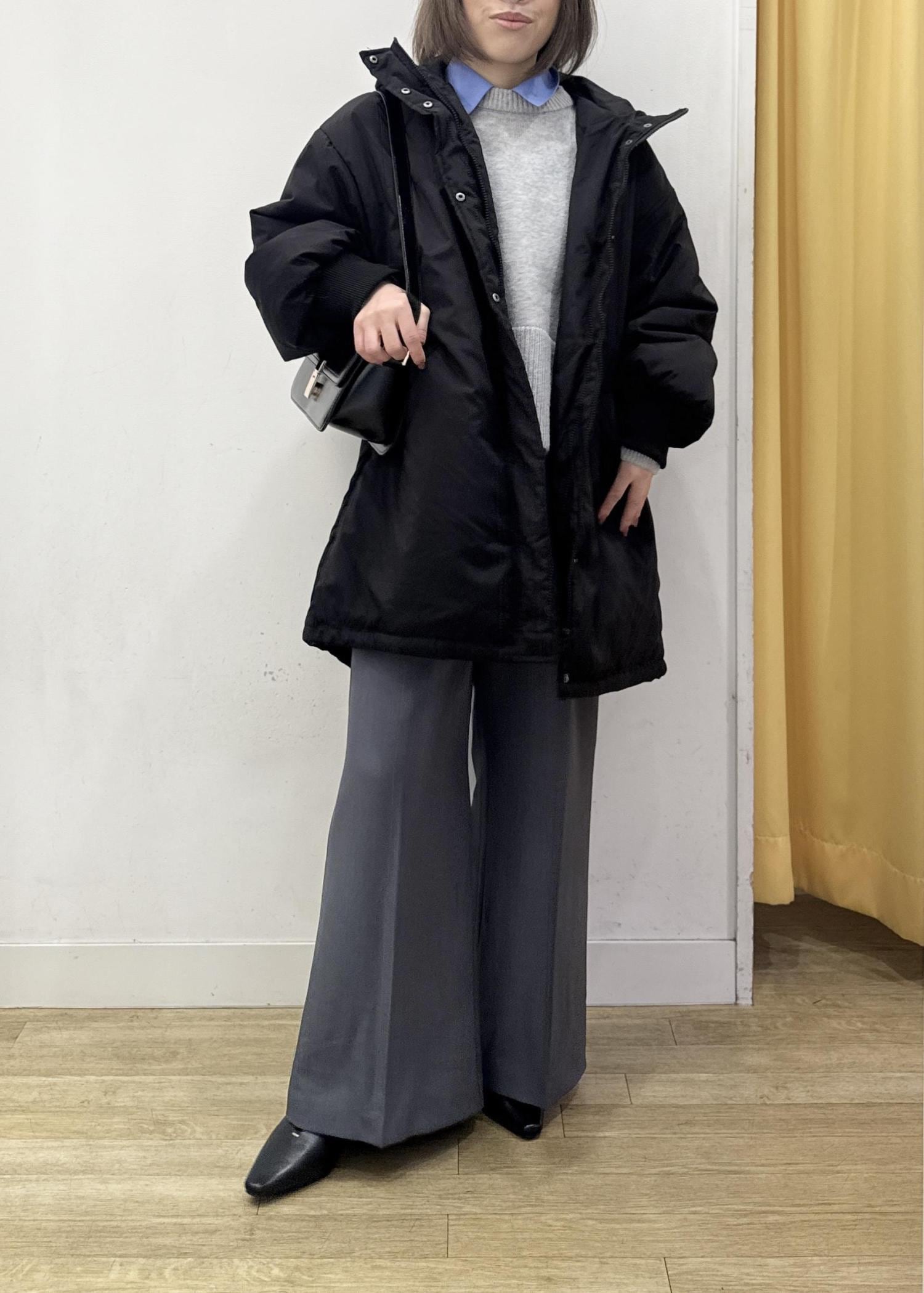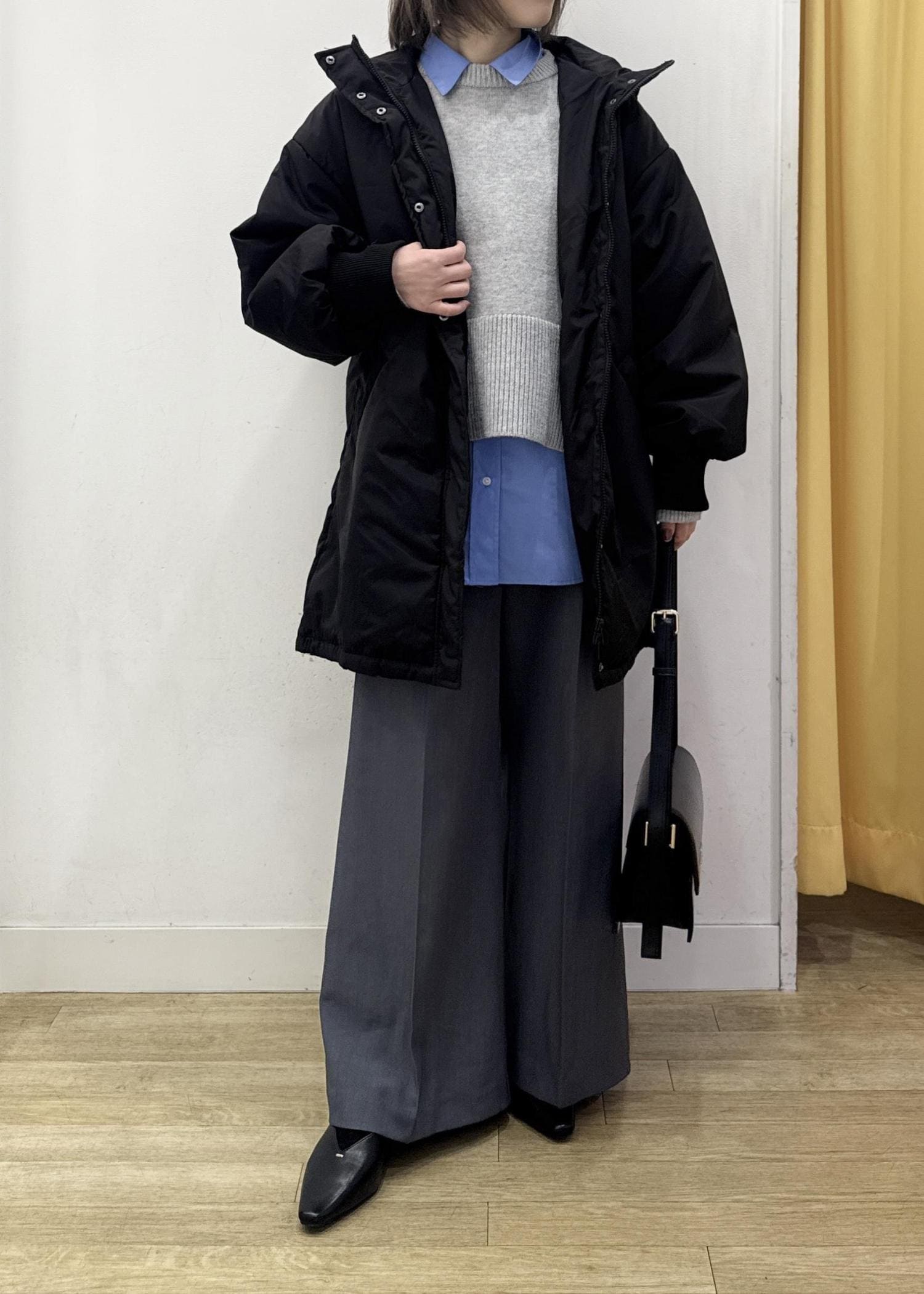 ゆったりとしたサイズ感で、厚手のニット合わせでも窮屈感なく着られました。