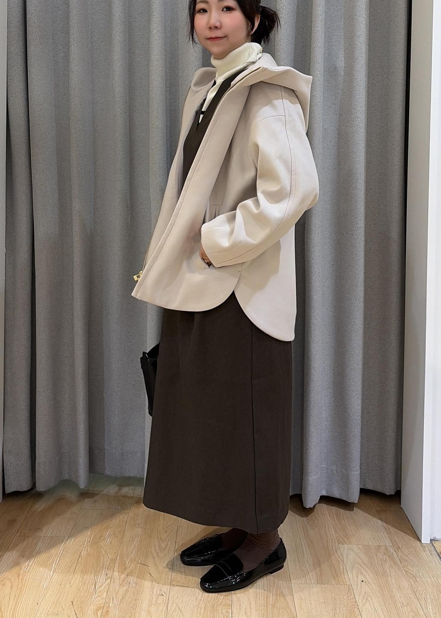 フードはおおきなのでスタンドにすることで小顔効果も期待できます♩
