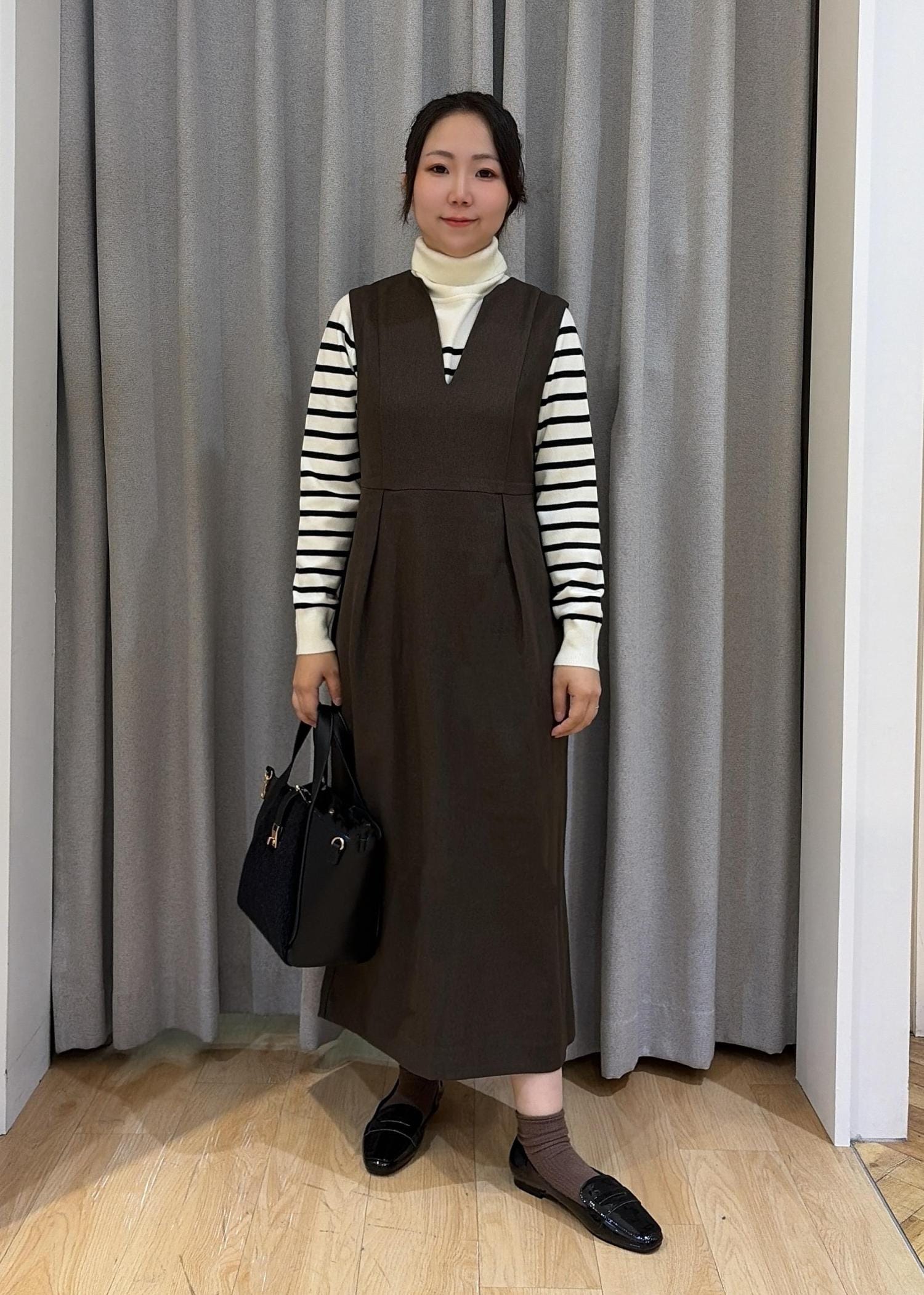 体型カバーやスタイルアップも叶えてくれる優秀ワンピースです。