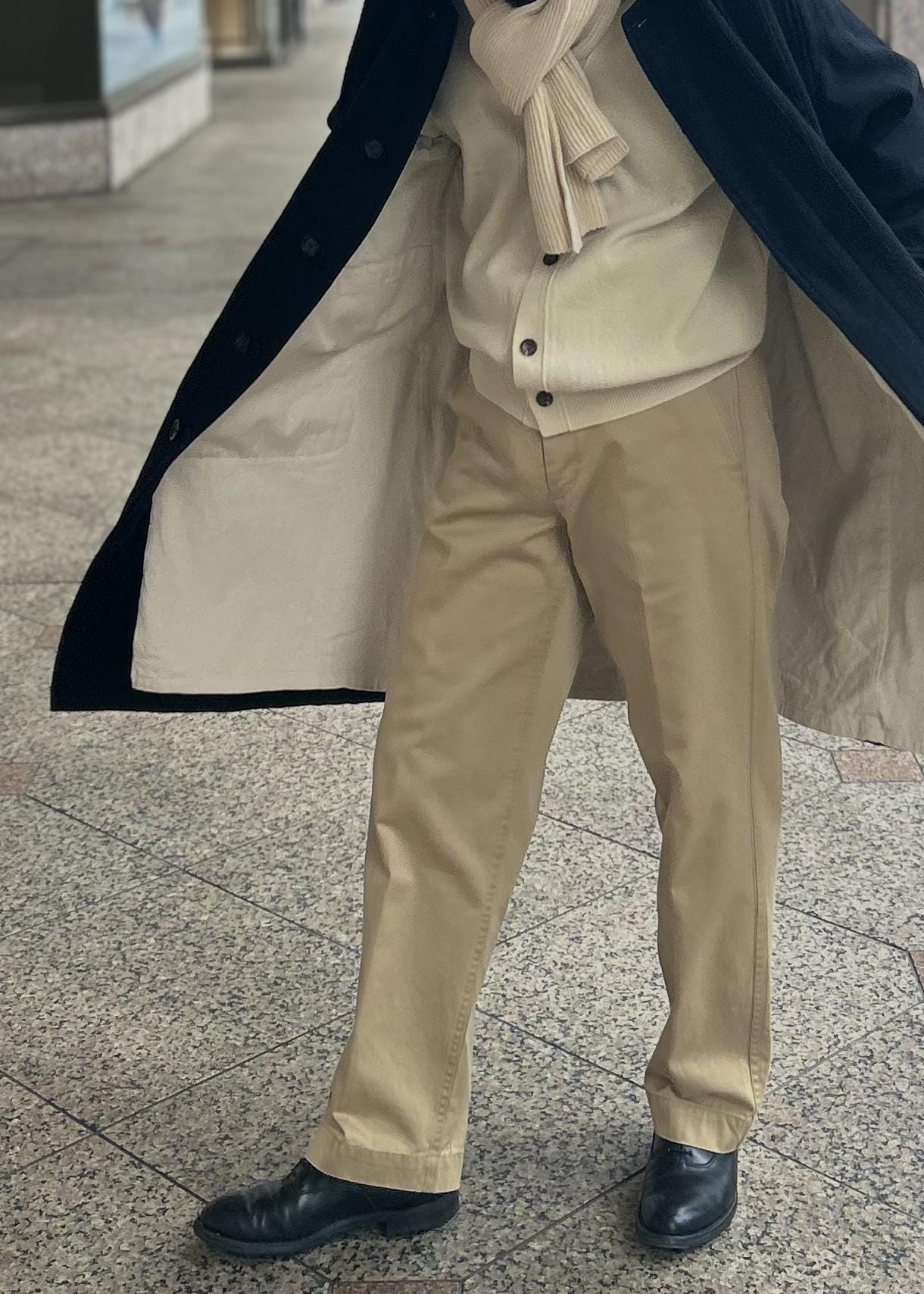 定番カラーのチノパンは持っておくべきアイテムのひとつですよね。