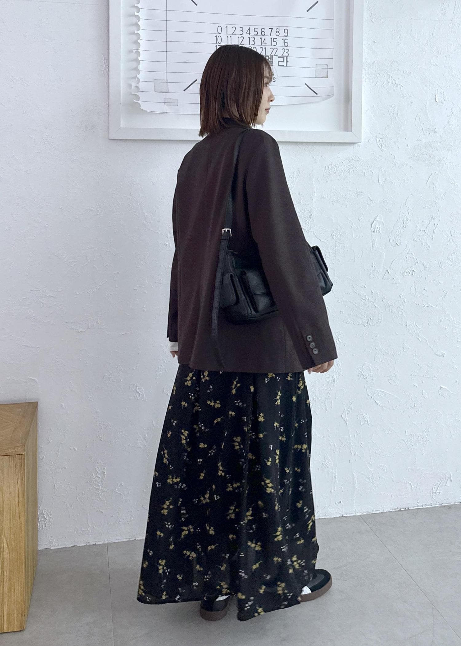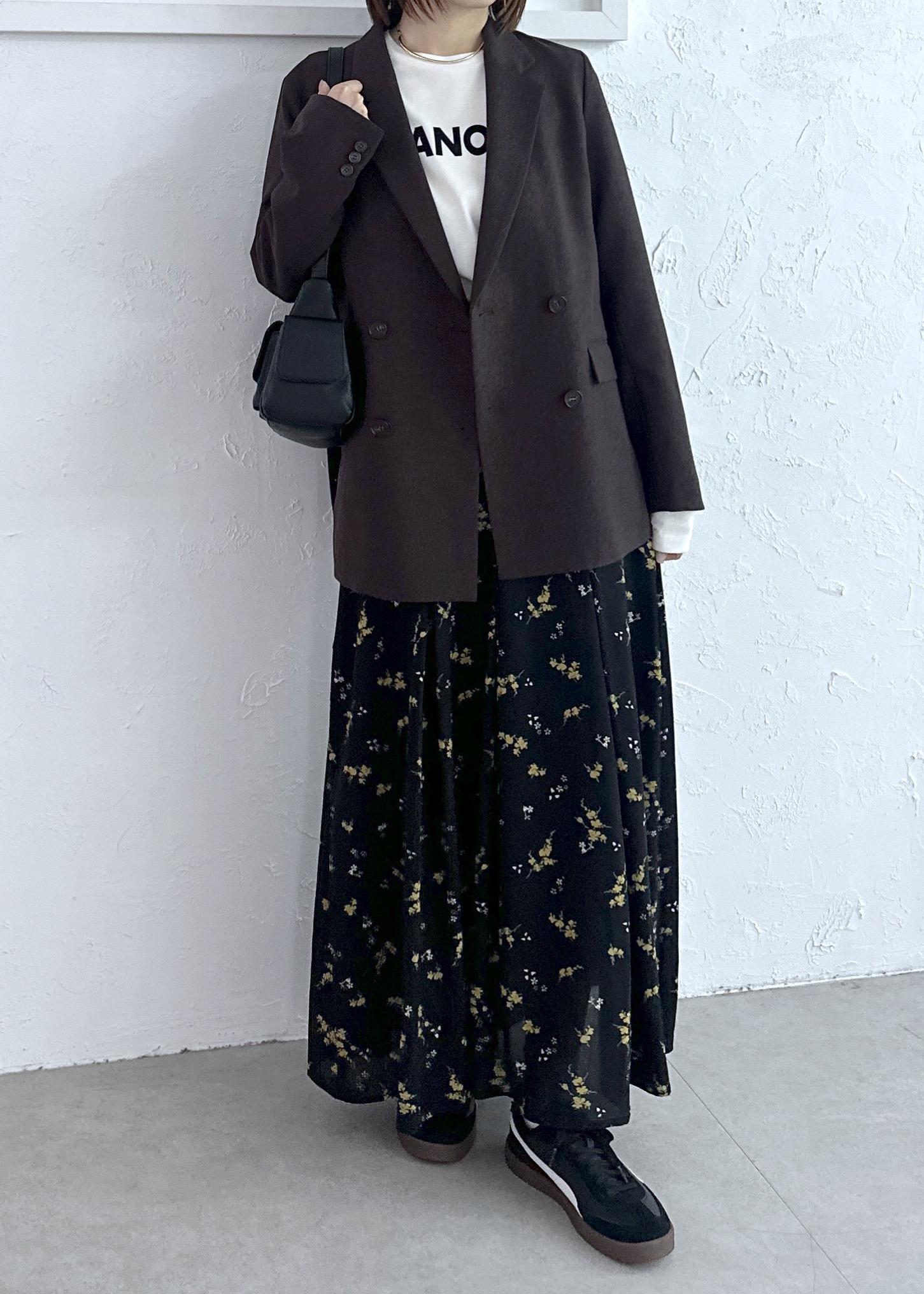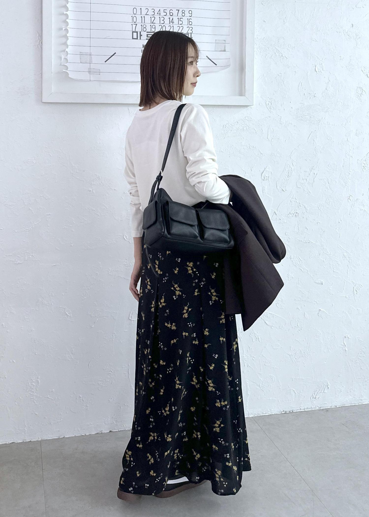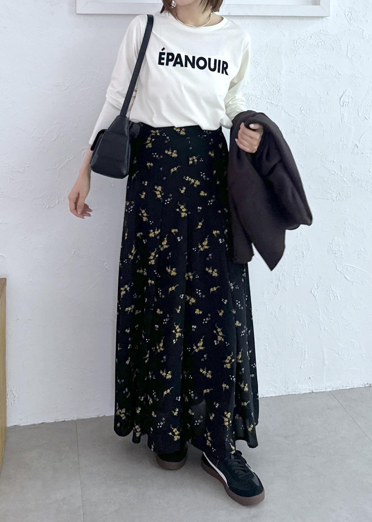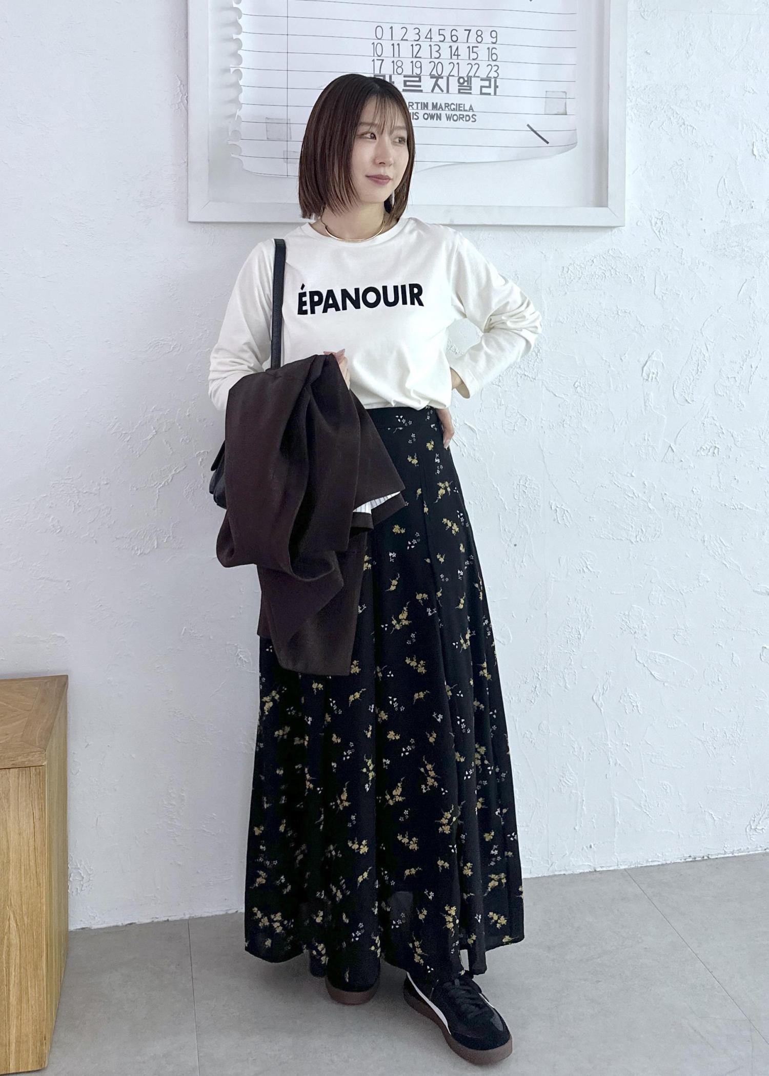VIS【WEB限定】アソート柄セミフレアロングスカートブラック系 / F¥2,636レビュー162cmで丈は足首あたりの長さです。