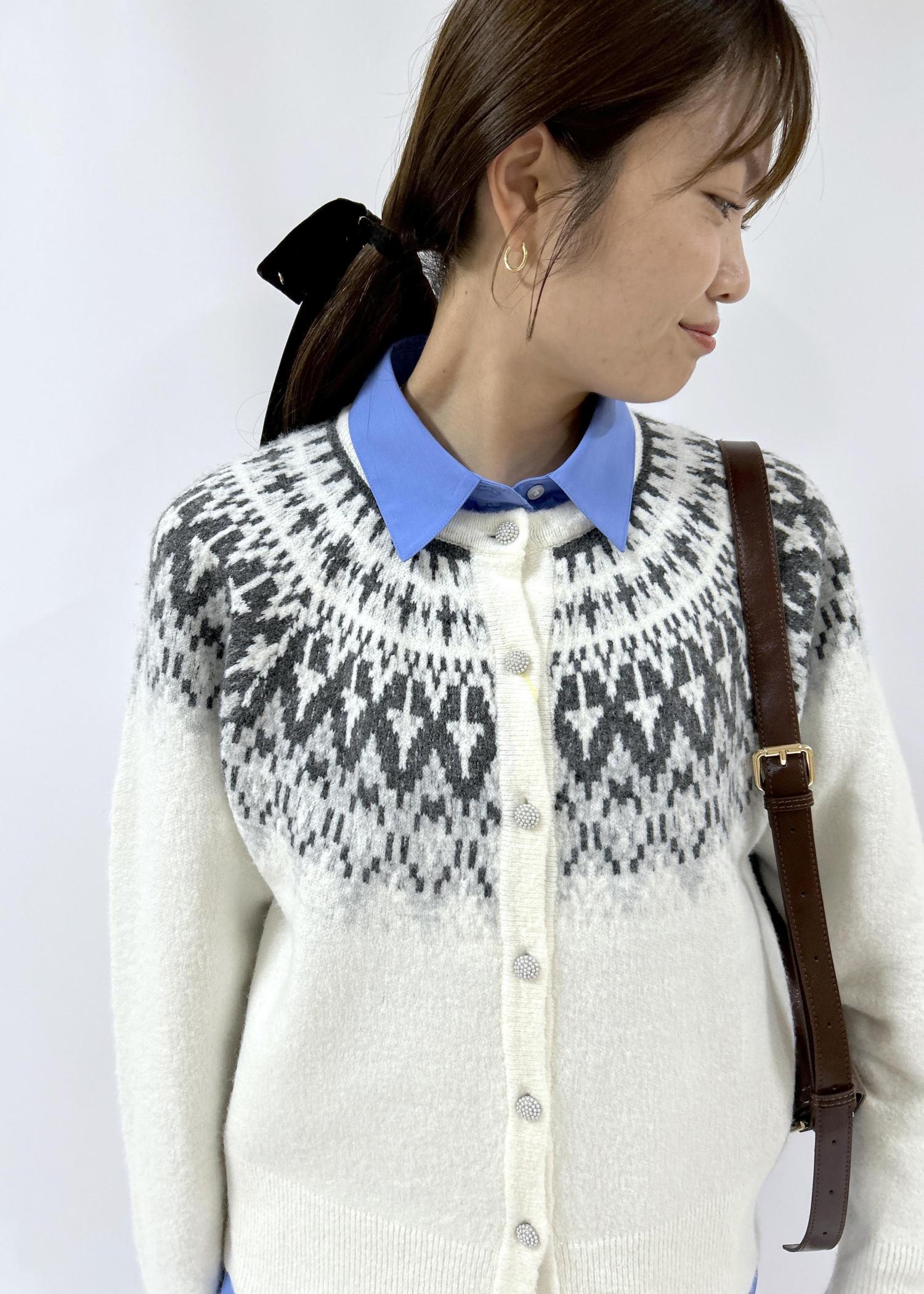 ベーシックカラーですが、ノルディックガラが着映えするニットカーディガンです! -