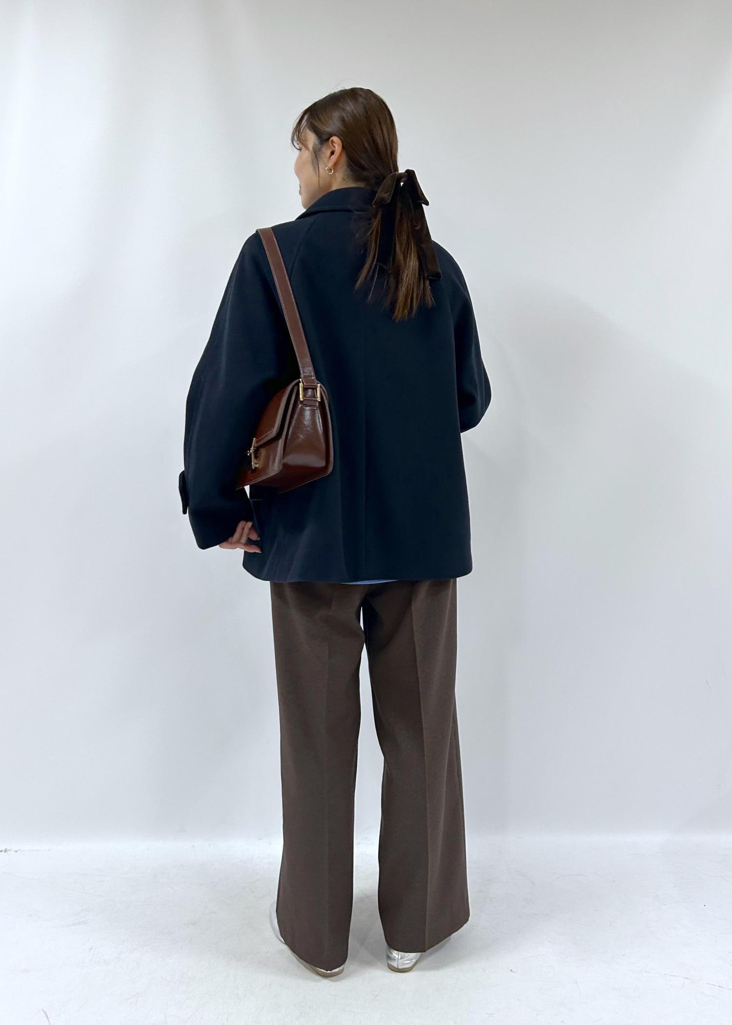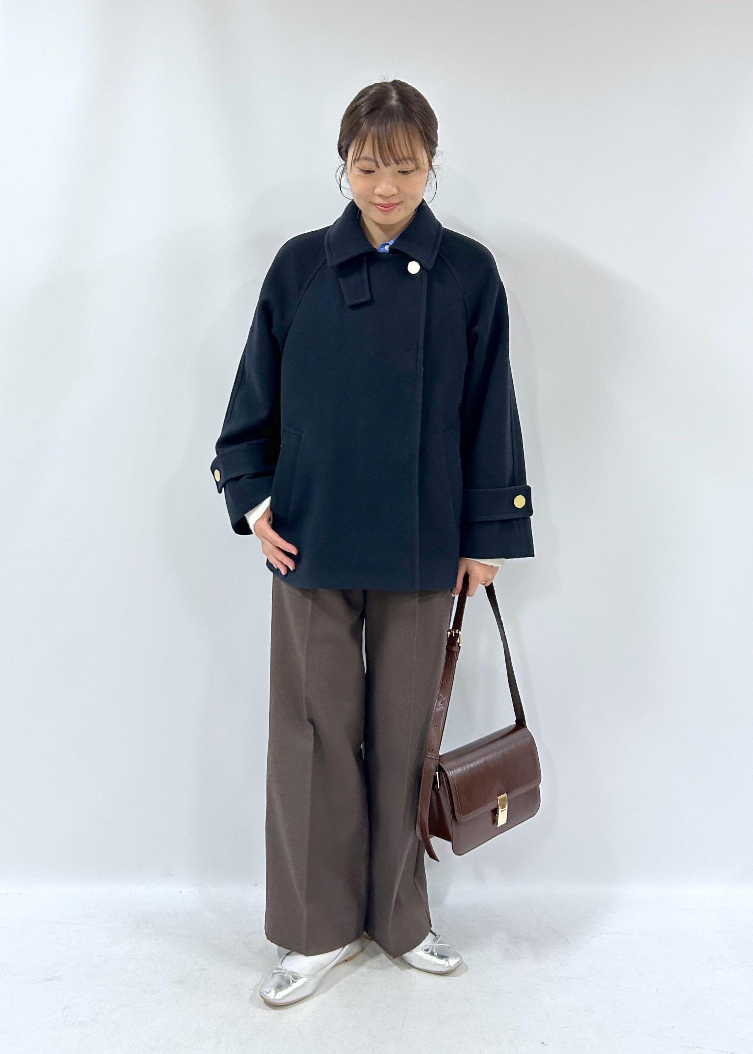 軽くて羽織りやすく、肩や腕まわりもゆったり感があるので、厚手のニットの上でもお召しいただけるサイズ感です。 -