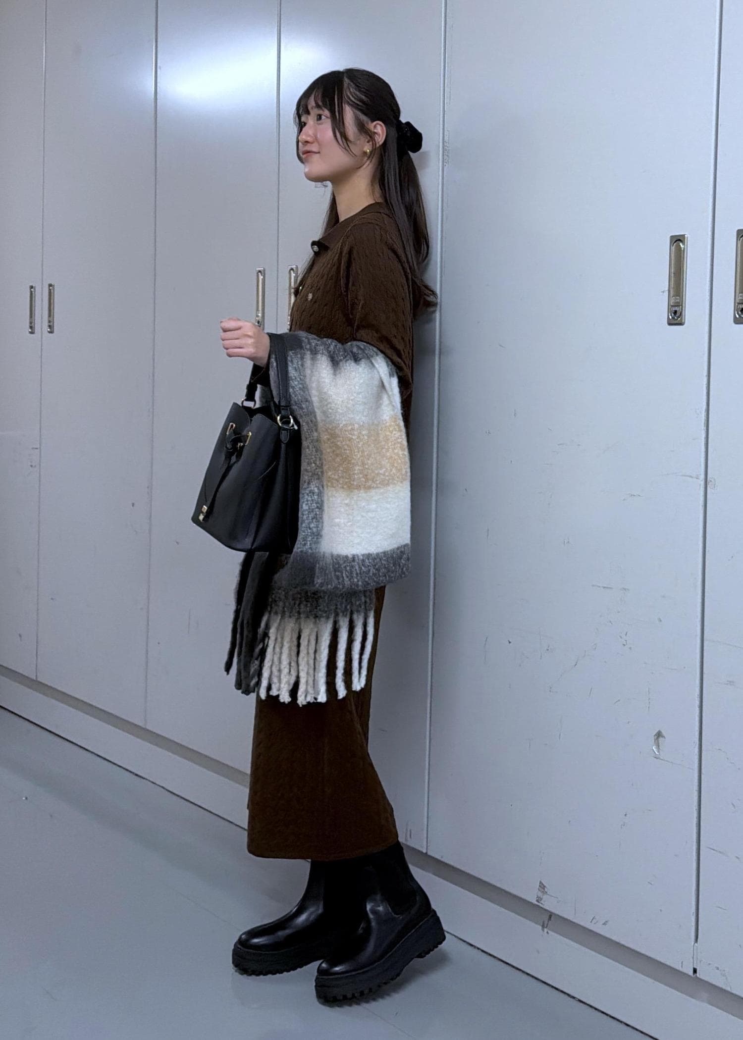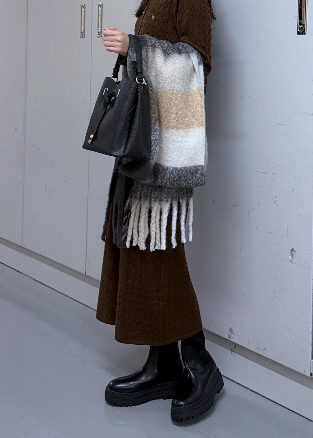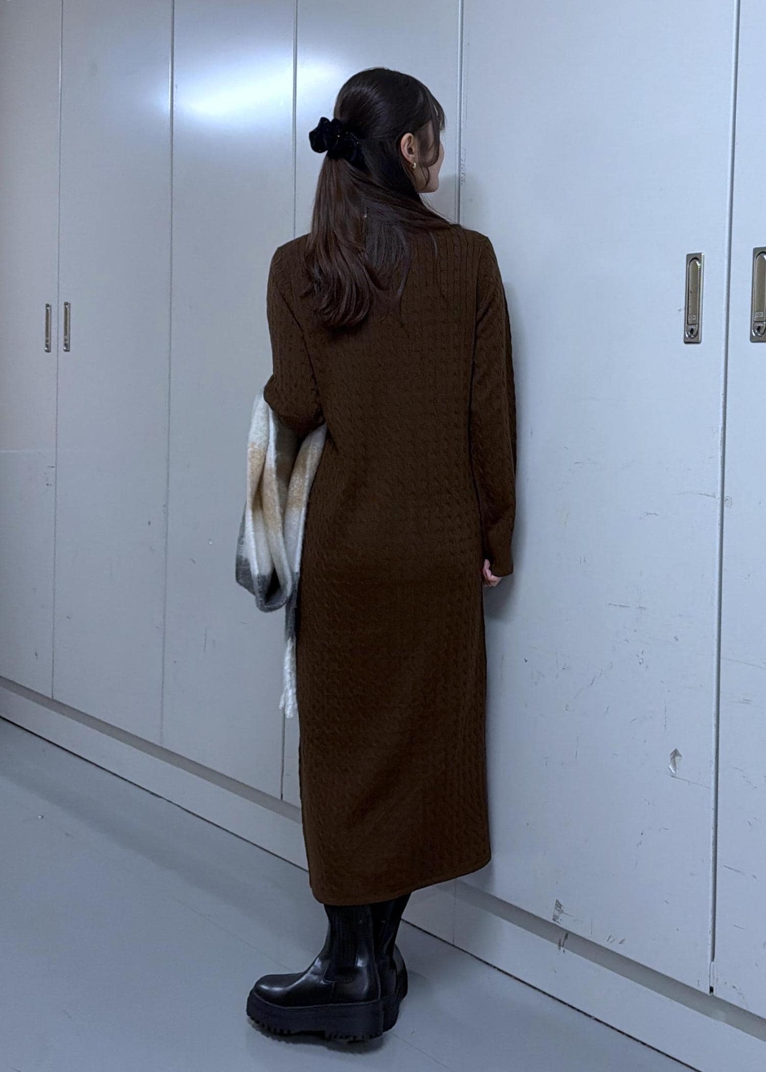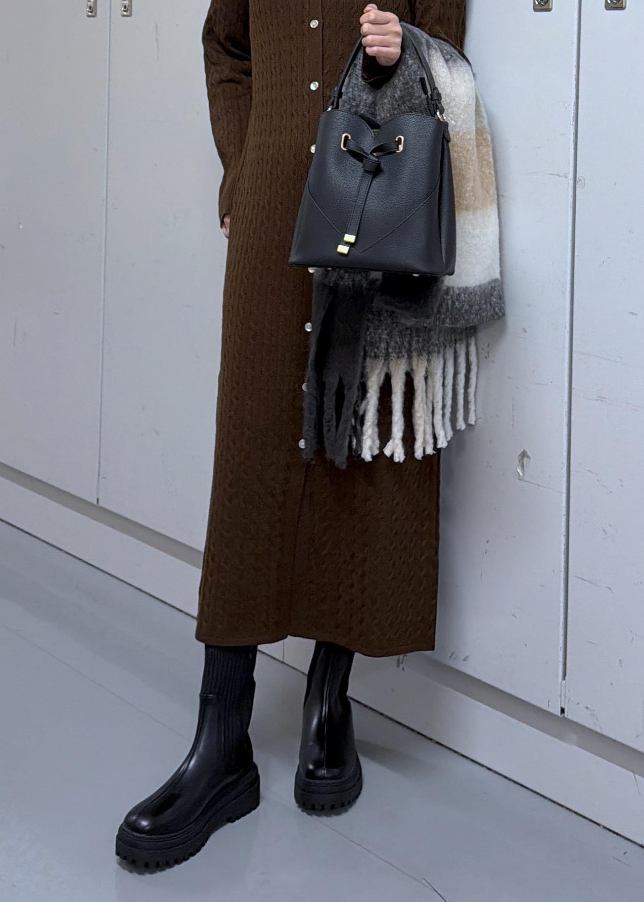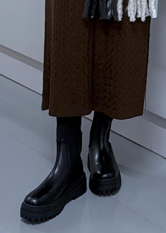 ブーツを合わせると丈も気にせず着ることができます!