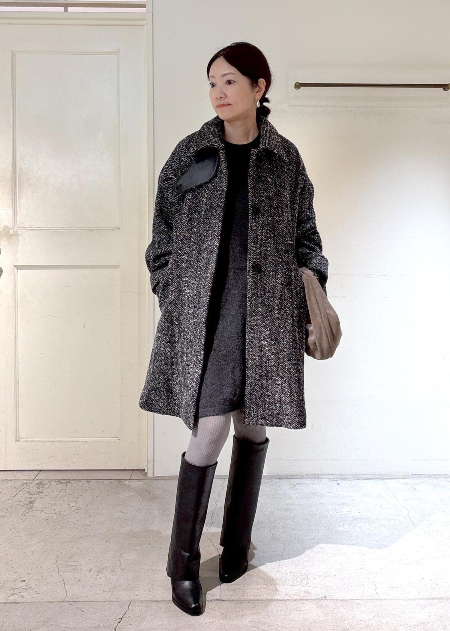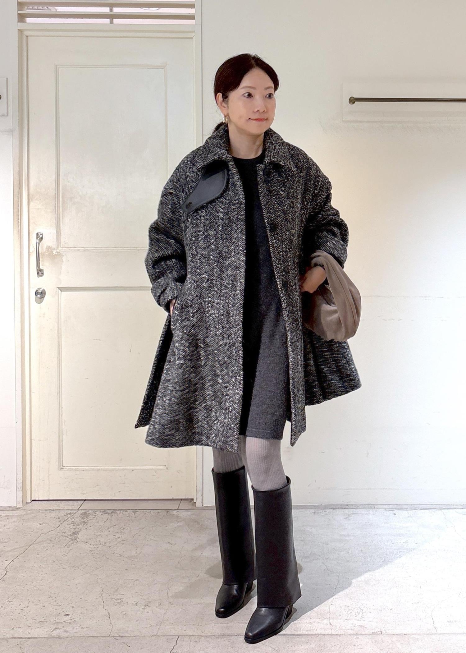 SALON adam et ropéカシミヤニットミニワンピースチャコール / F¥39,600レビュー身体のラインに程よくフィット。163cmで膝上の着丈感です。