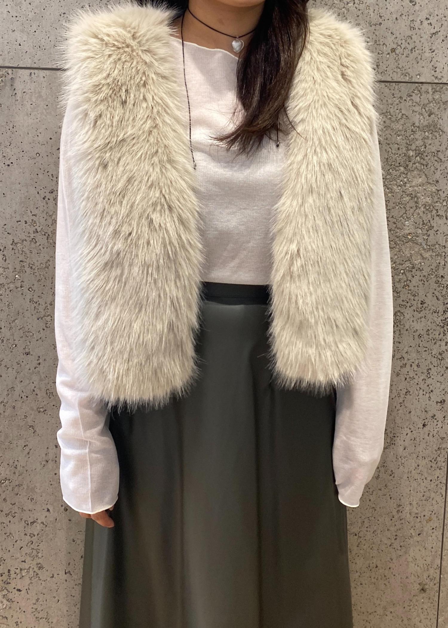 ROPÉ PICNICファーベストベージュ / F¥5,597レビュー丈は腰あたりと短めですので、低身長さんでも重たく見えにくいです。腕周りもゆとりがあるので厚手のニットやフーディーとレイヤードしても、もたつきにくいです。