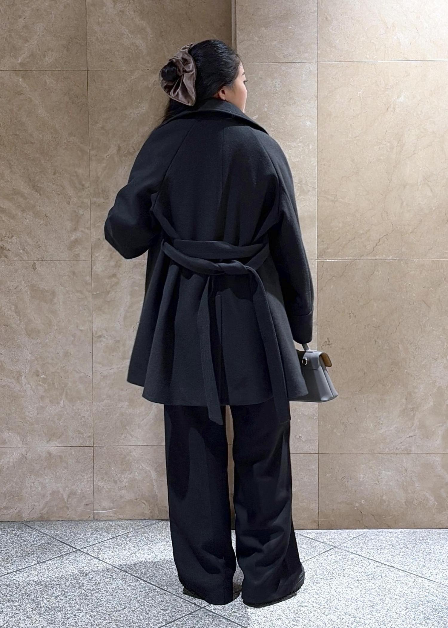 VIS【アウター総選挙2位】フレアーチェスターコートブラック / F¥14,080レビュー前を閉めても可愛いのですが、コートのヒラっと感がとても良くて、たくさん動いてしまって紐がブレちゃったりしました、、、失礼しました。。。