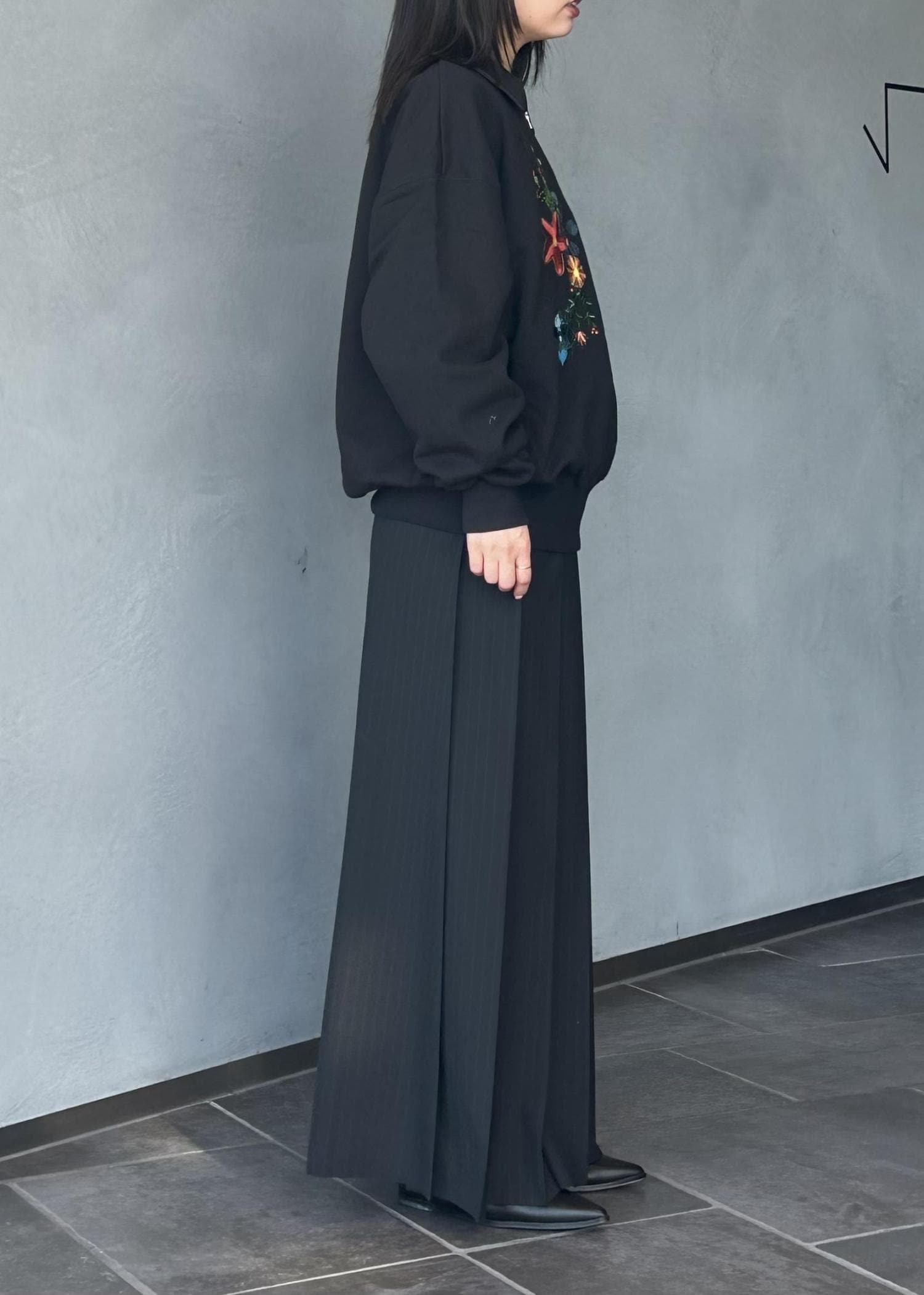 EMOELLE【EMOELLE】フロントプリーツスカートブラック系 / 36¥29,700レビュー丈は156cmで足の甲に少しかかるくらいの長さです。シワは気になりにくく、お手入れしやすいです。深めのスリットがポイントで、ロングブーツやソックスをのぞかせたコーディネートにおすすめです。